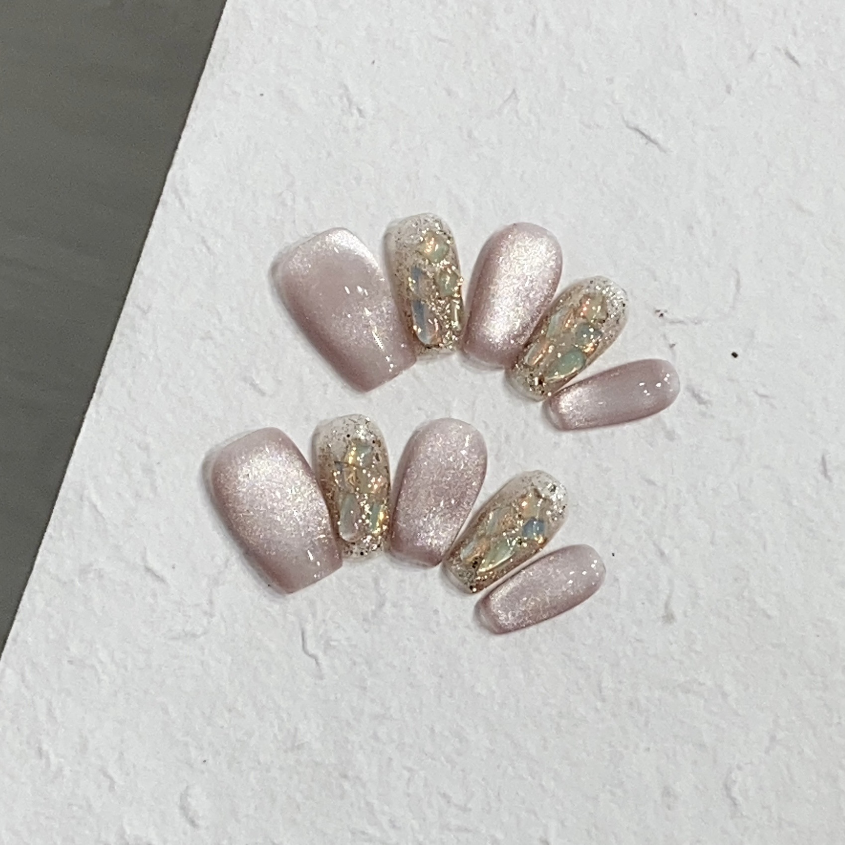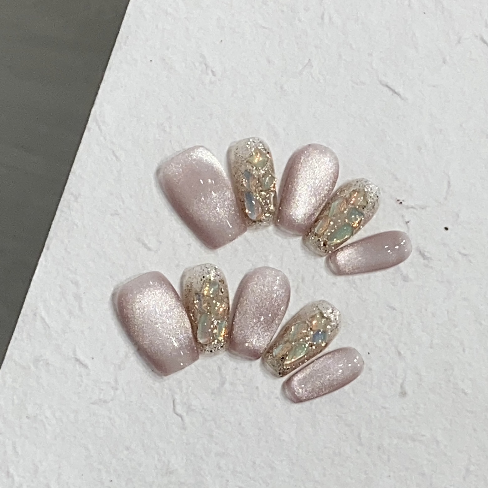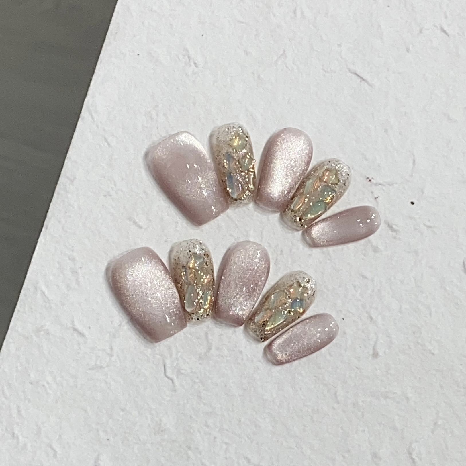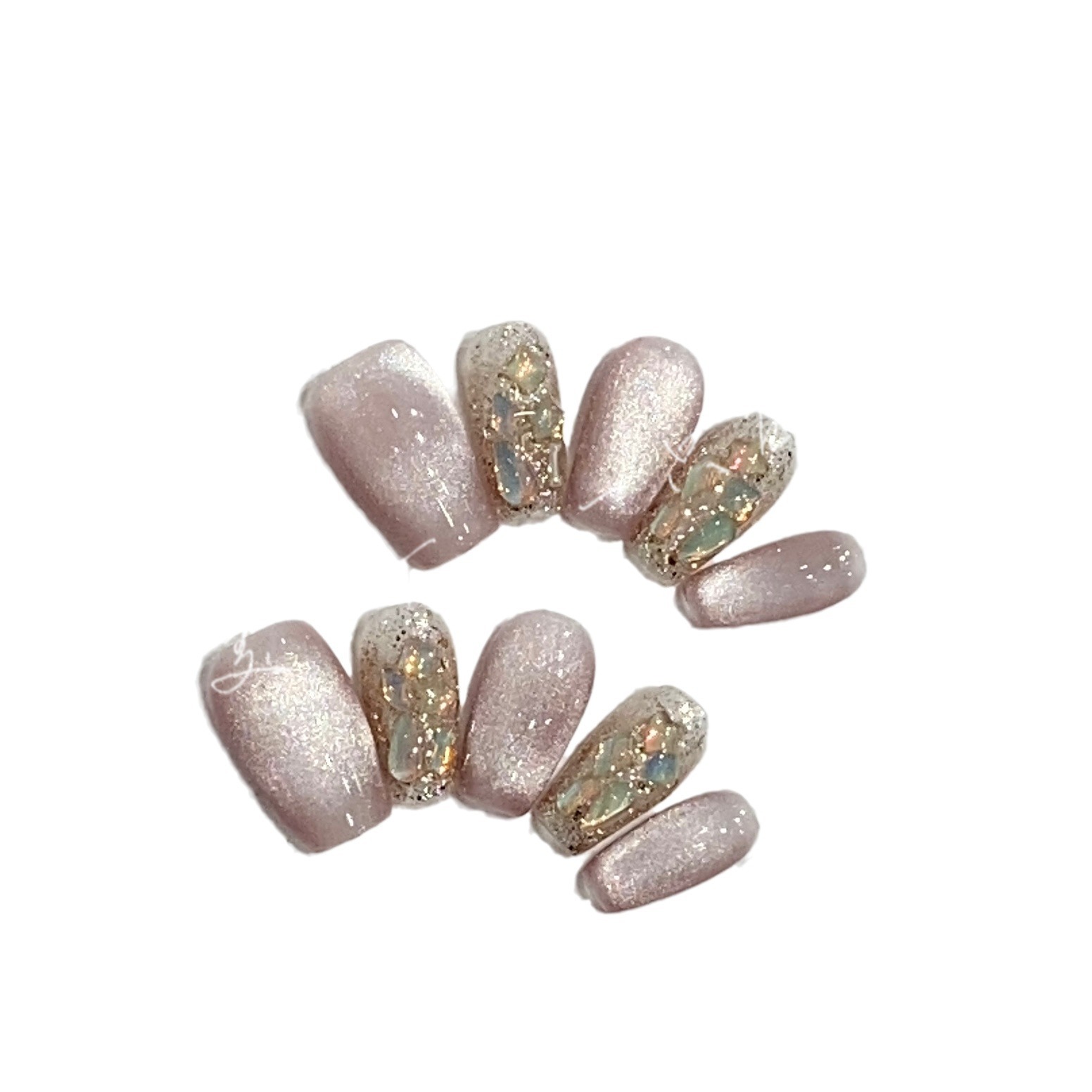 一只顾美甲厂【原创实拍】玻璃珠轻透粉猫眼美拉德异形钻热气球