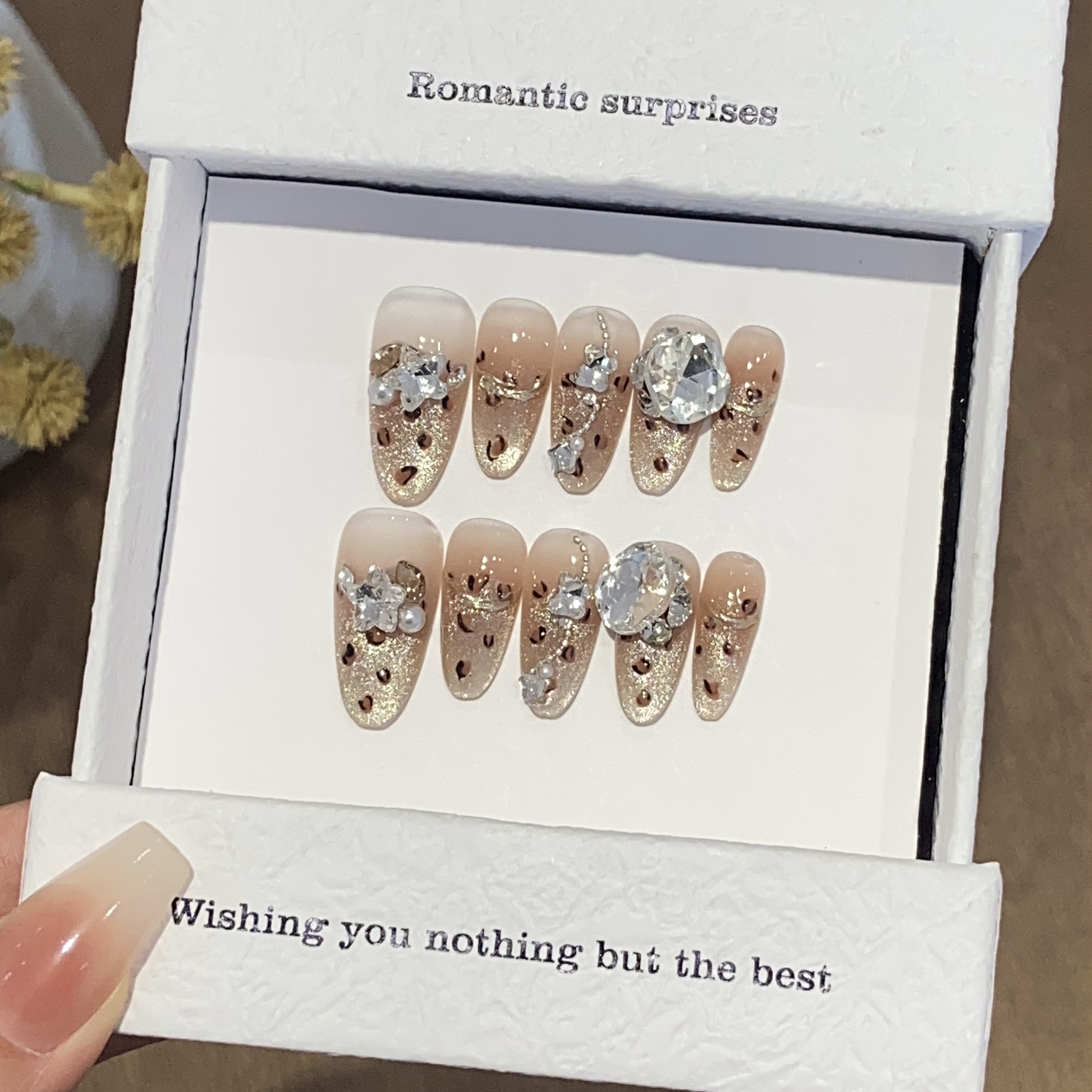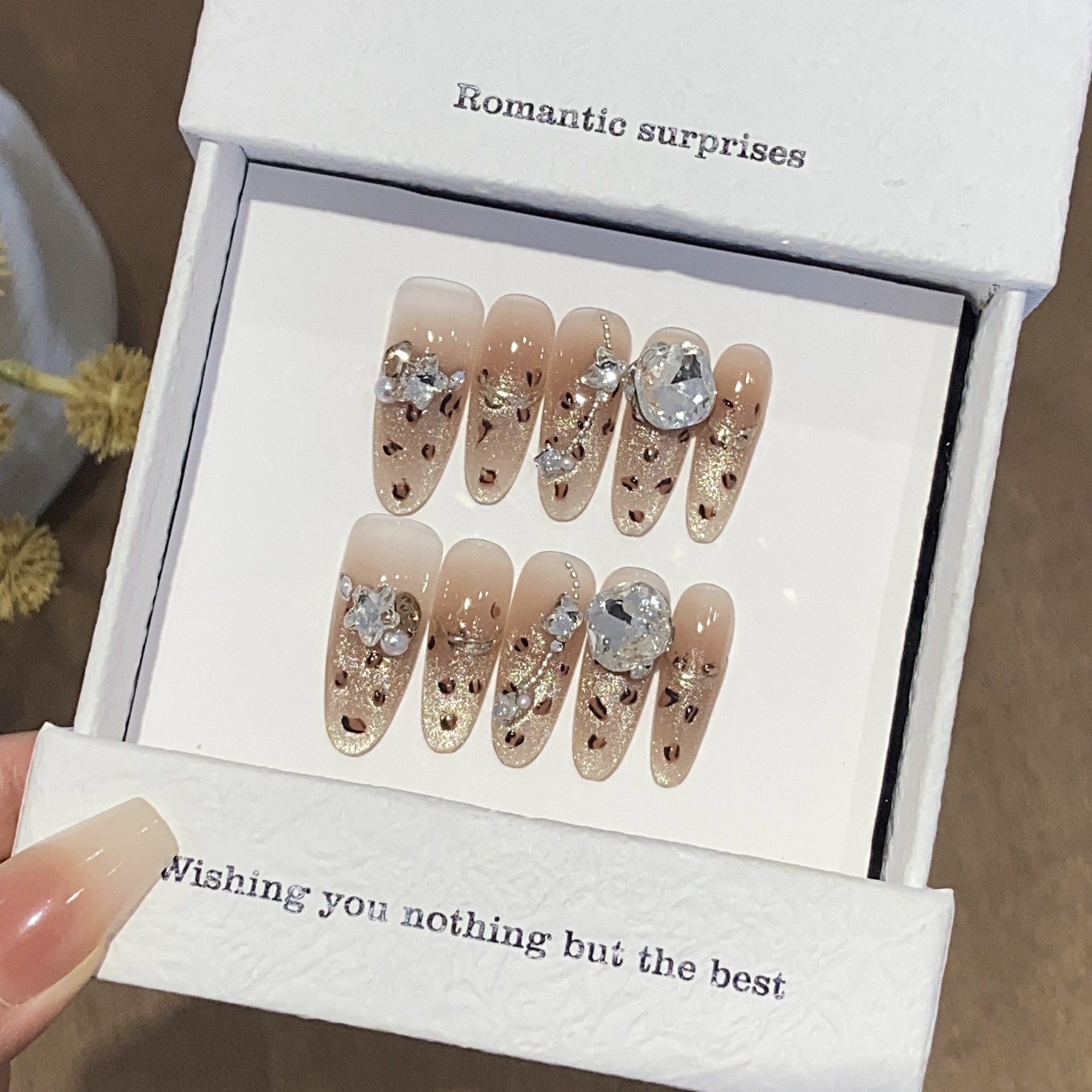 一只顾美甲 秋冬美拉德爆闪珍珠猫眼渐变秋冬豹纹可拆卸指甲贴片