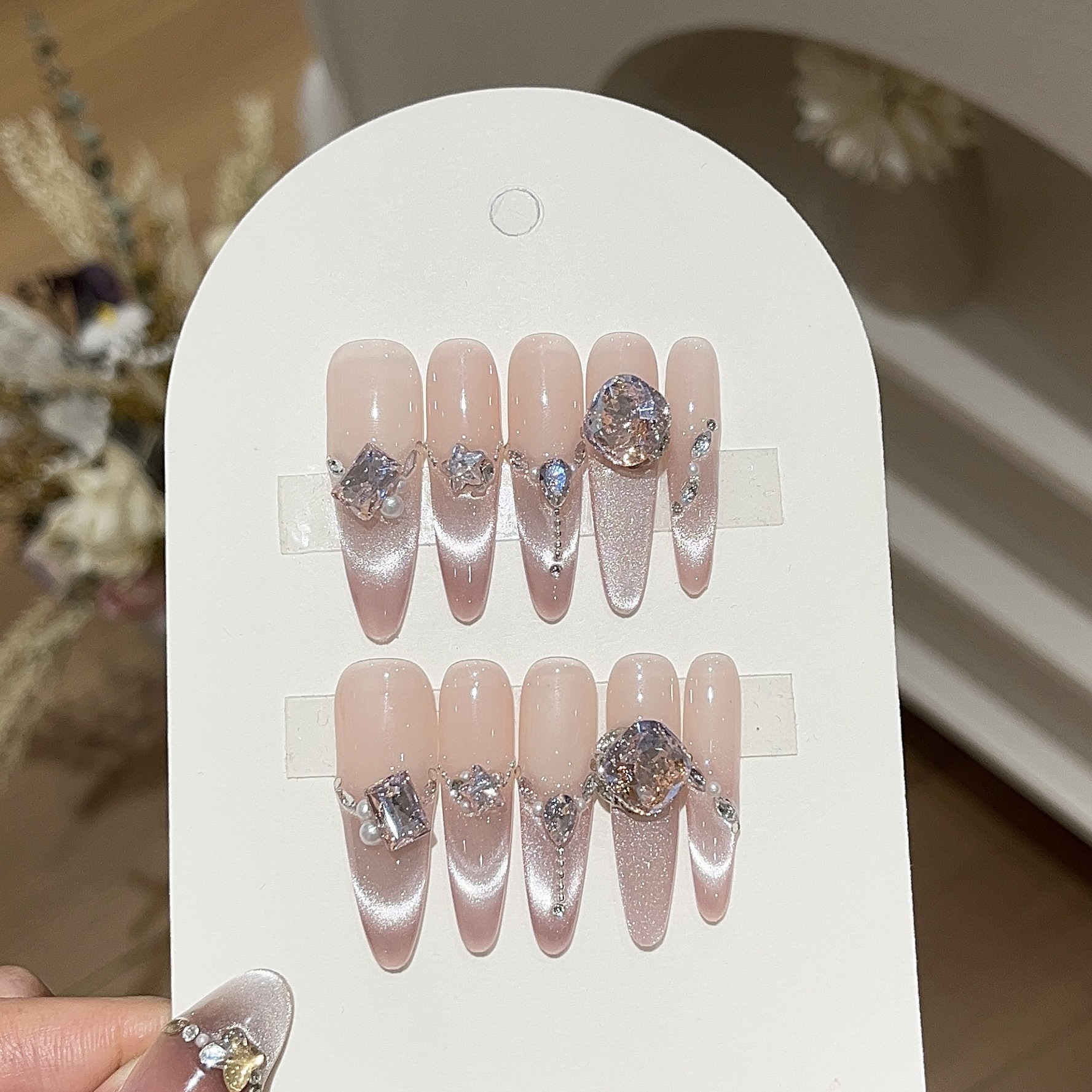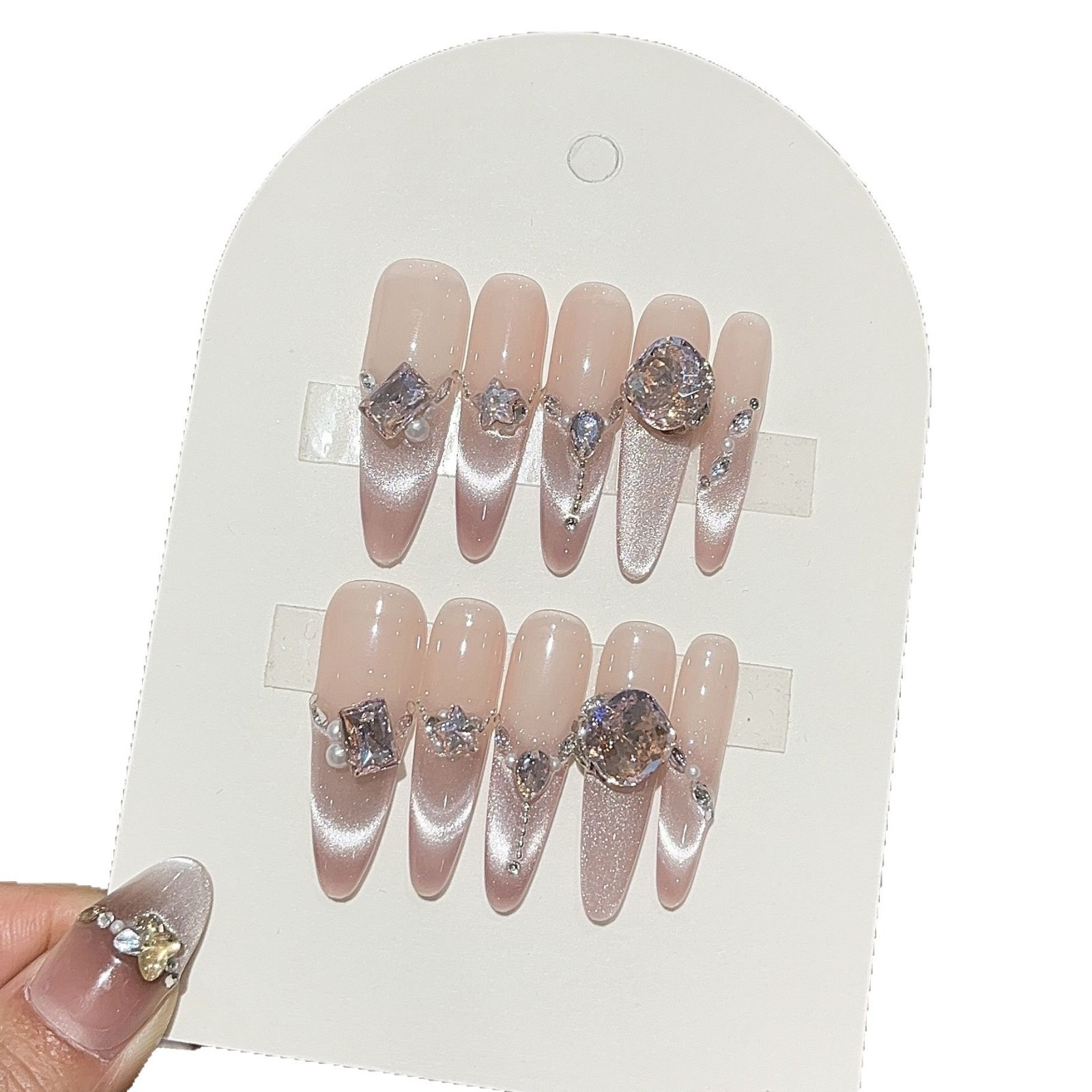 纯手工穿戴甲宝石贴钻轻奢风爆闪光疗甲可拆卸重复使用美甲片批发