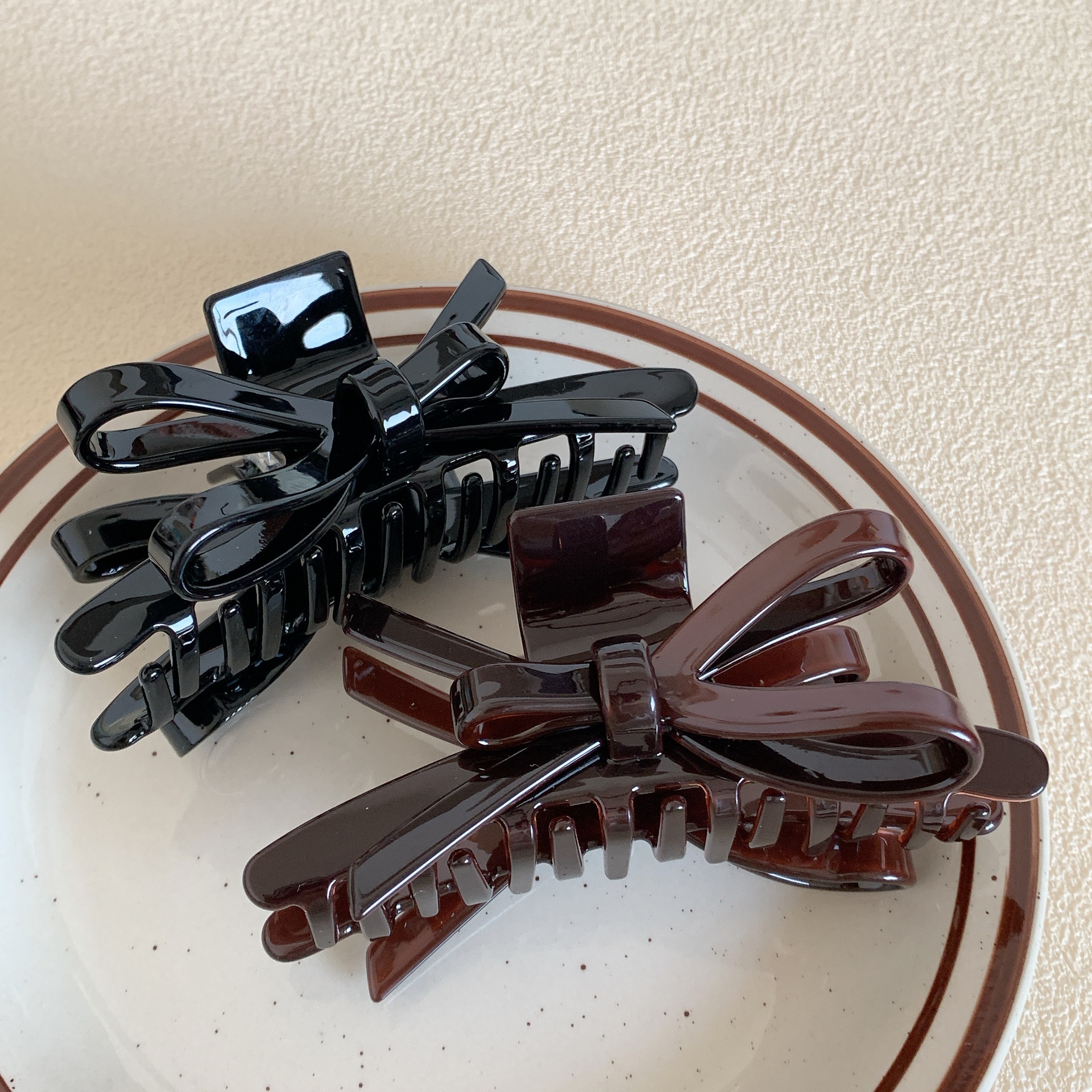 韩国ins蝴蝶结设计抓夹 France黑棕美拉德重工高级感大号鲨鱼夹子