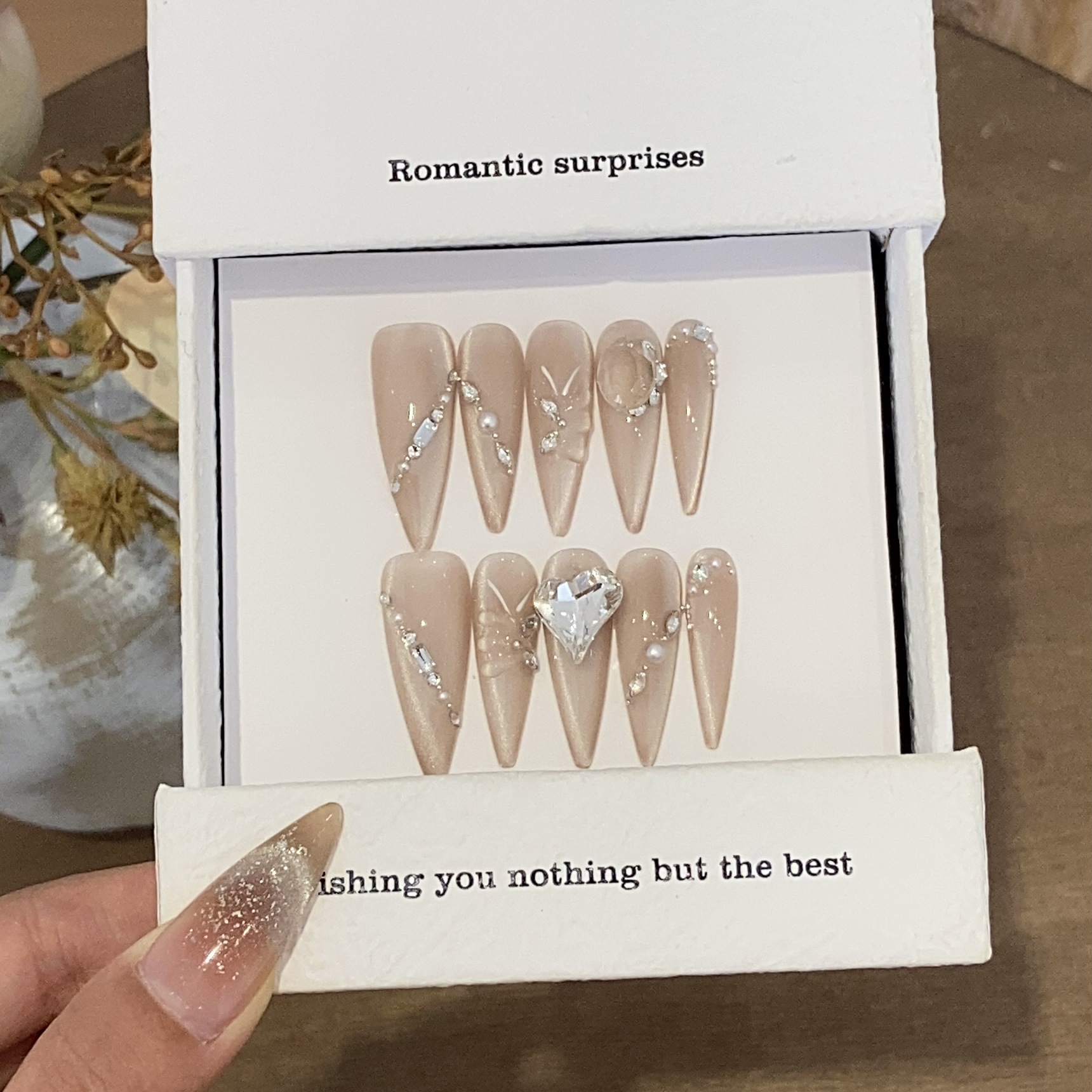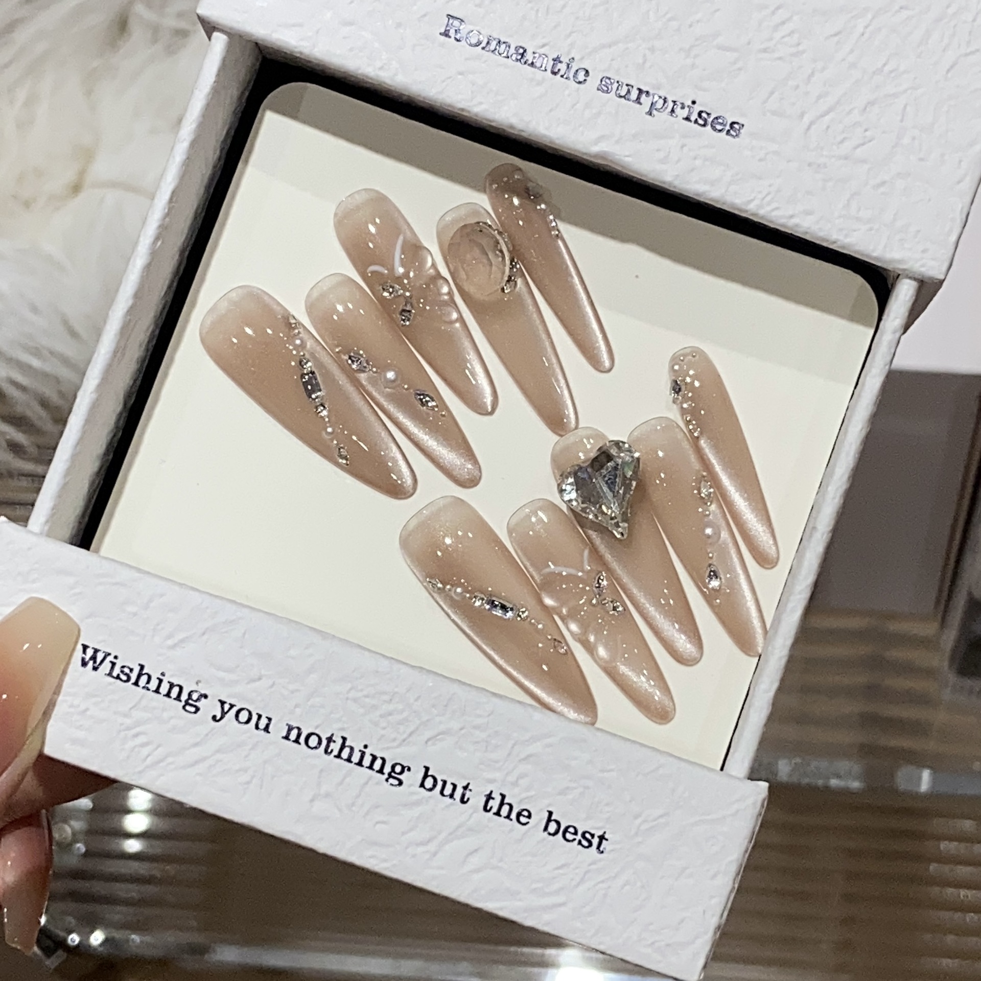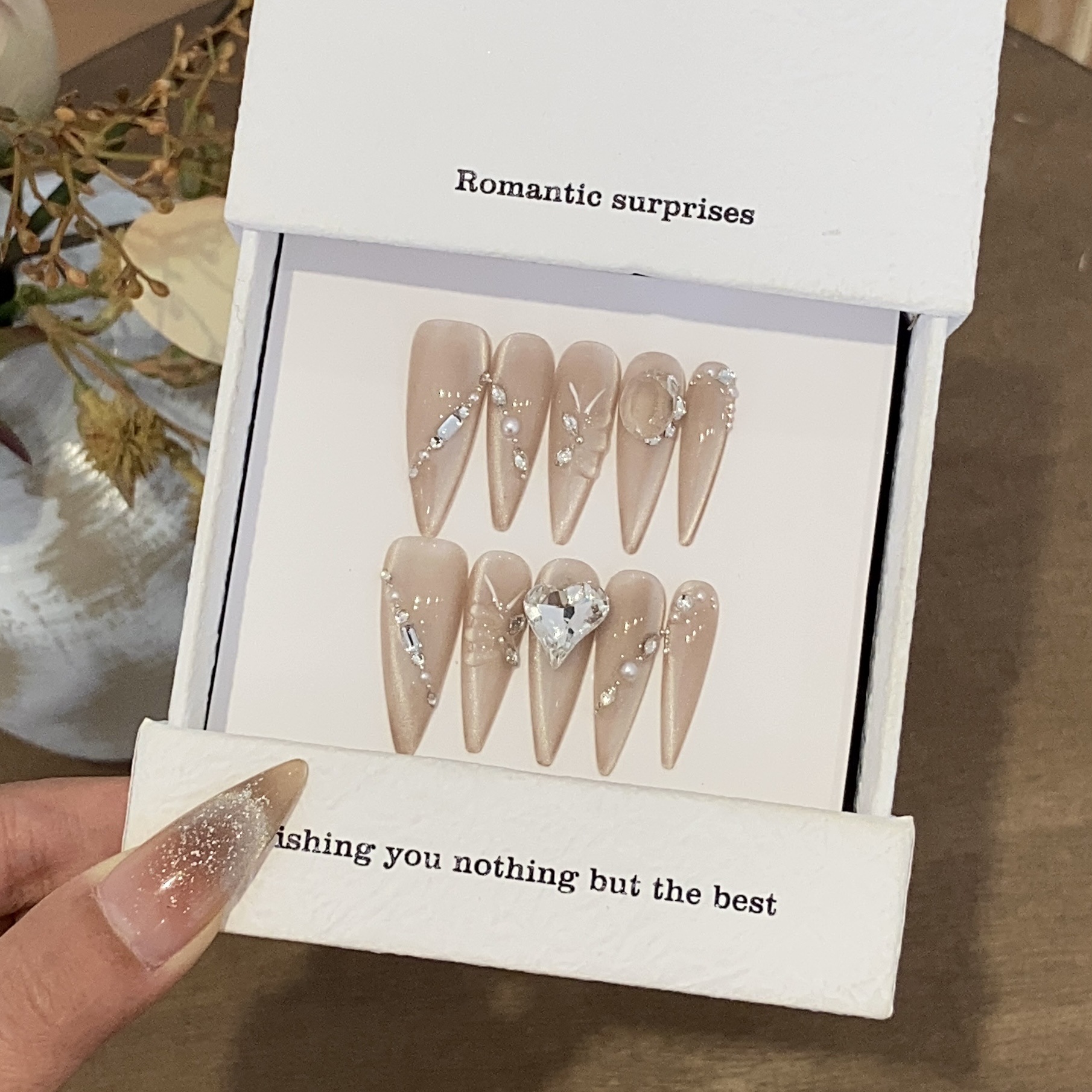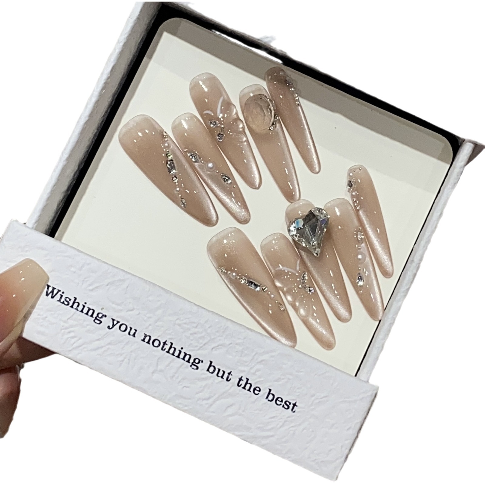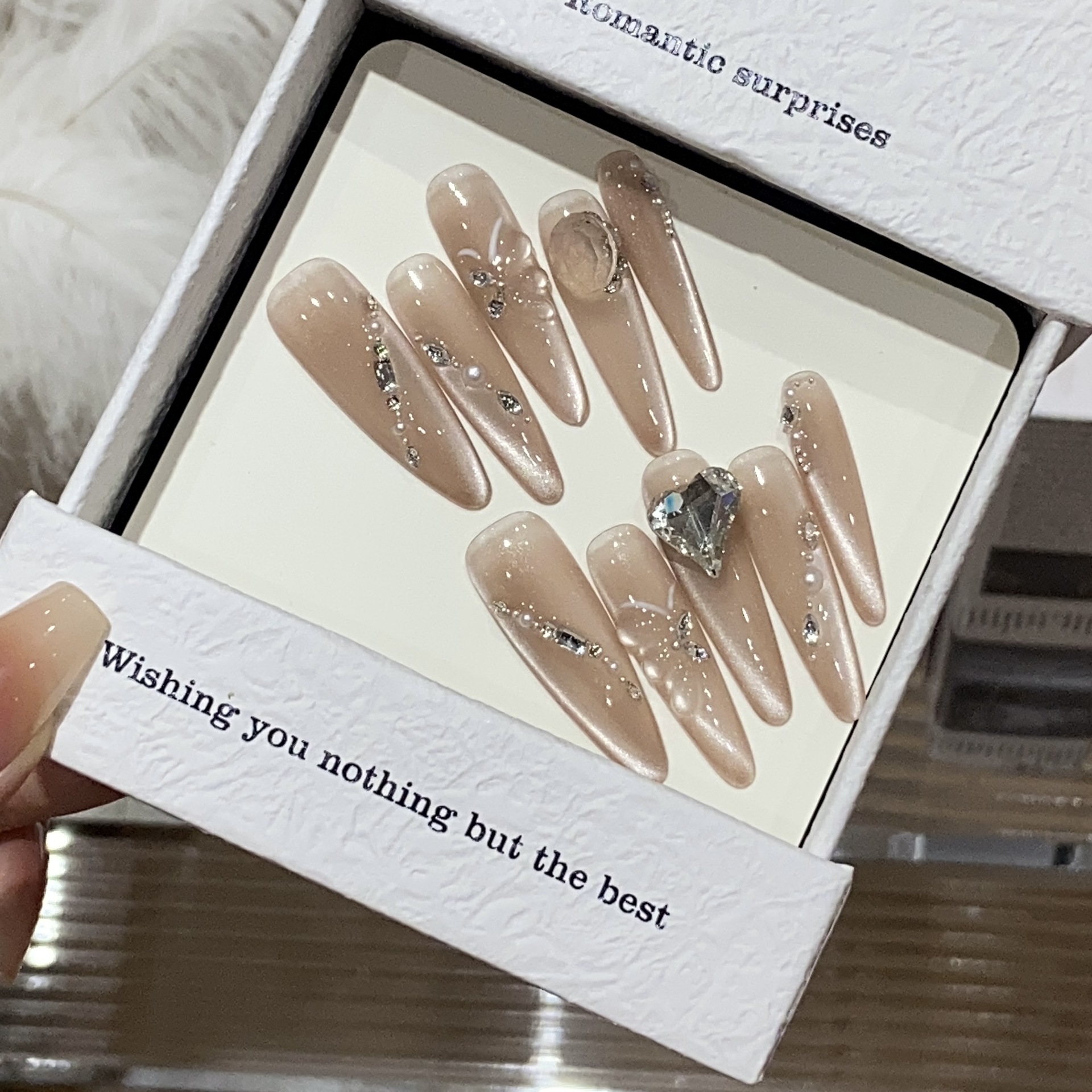 一只顾美甲 斜边珍珠碎钻立体蝴蝶异型歪心钻西域蝴蝶贴片穿戴甲
