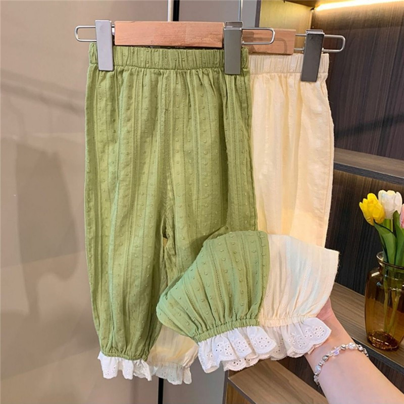 女童夏装休闲裤宝宝洋气儿童个性潮牌韩版文艺森系蕾丝花边防蚊裤