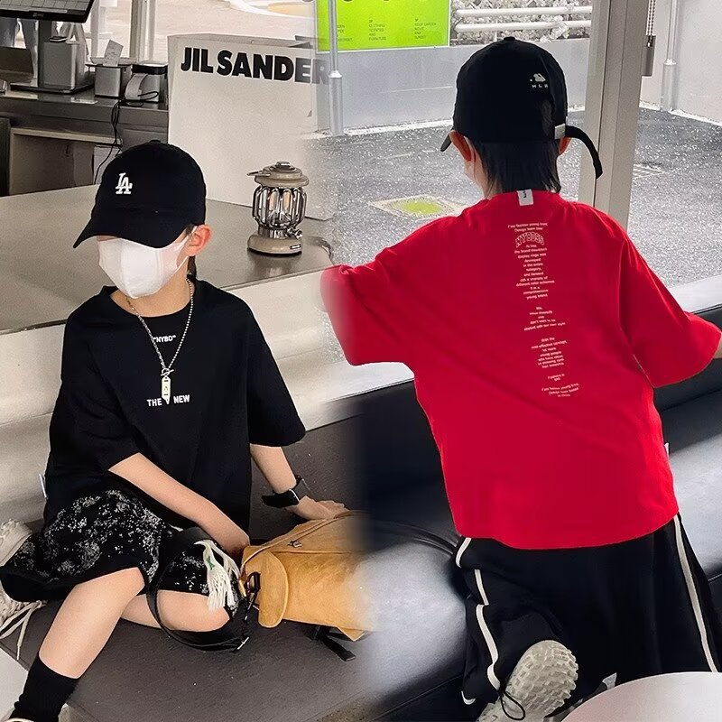 夏季童装潮流宽松ins半袖上衣男孩创意字母休闲短袖T恤儿童潮