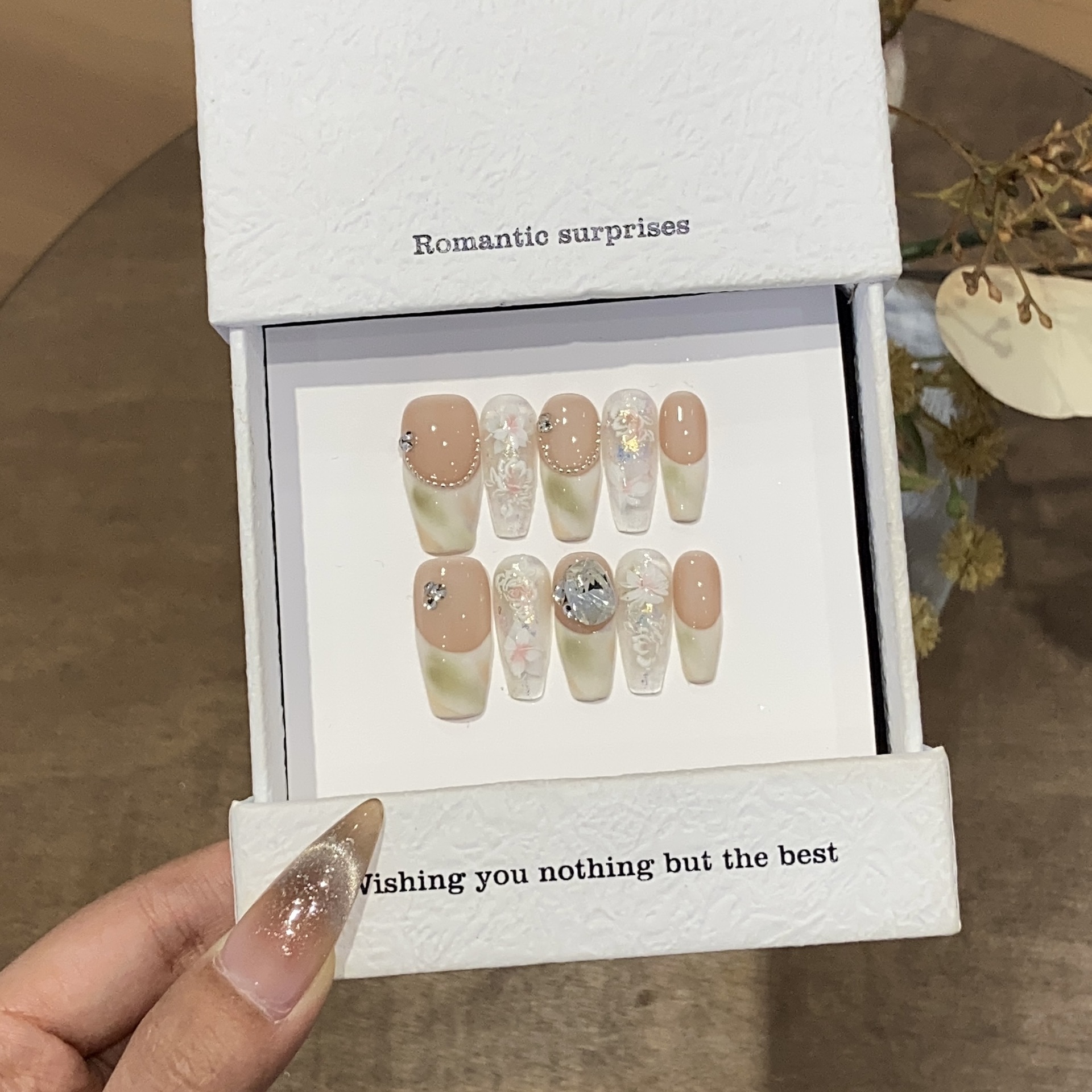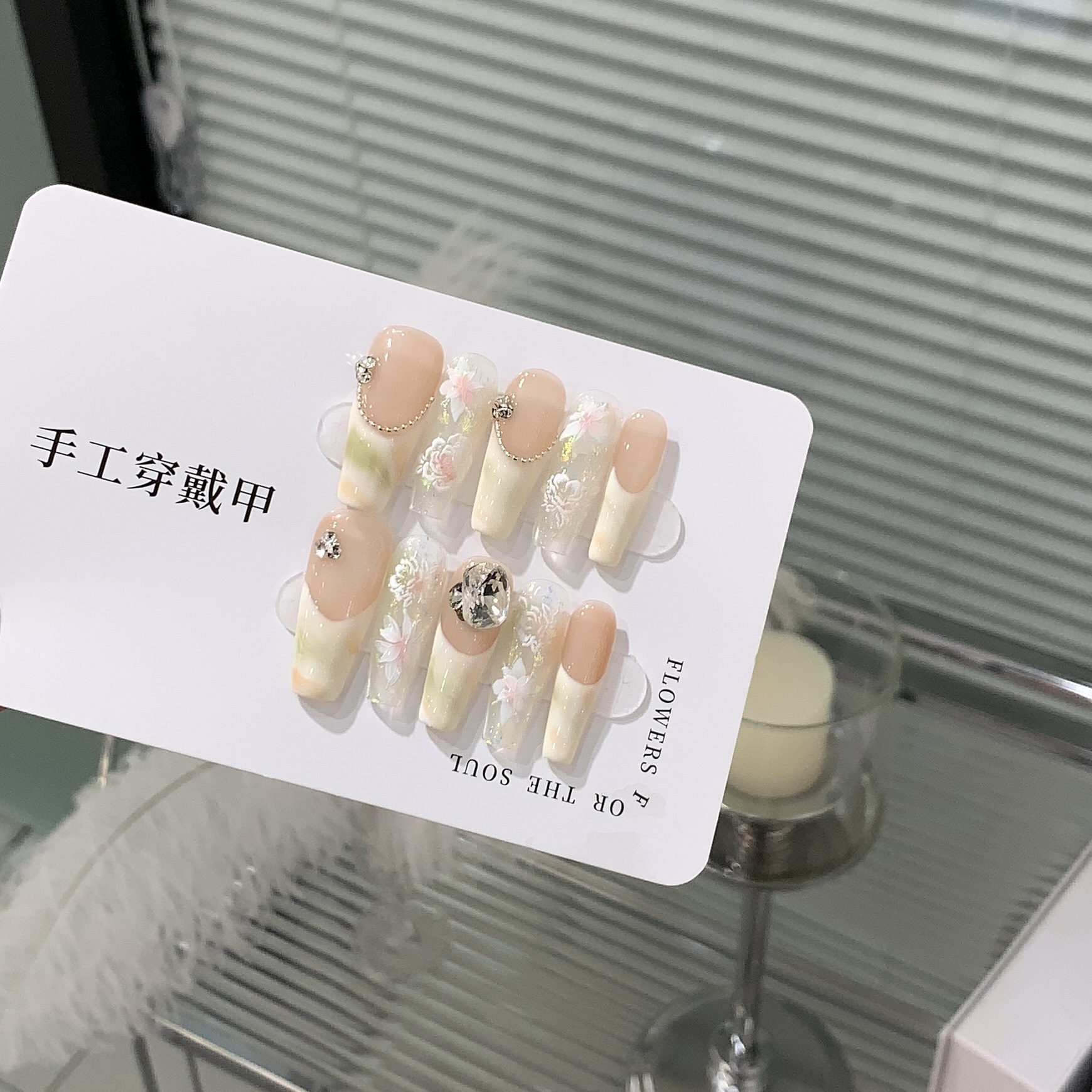 一只顾美甲厂 【Y】手工春夏日少女感法式花朵晕染莫美甲穿戴甲