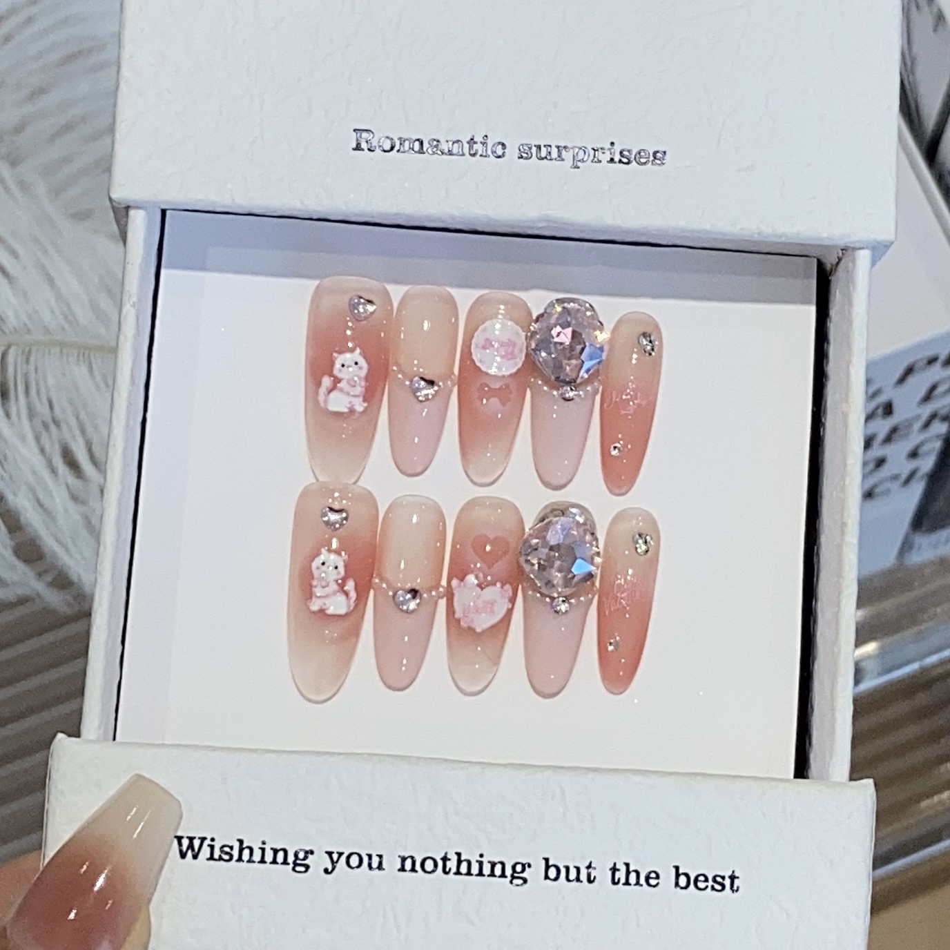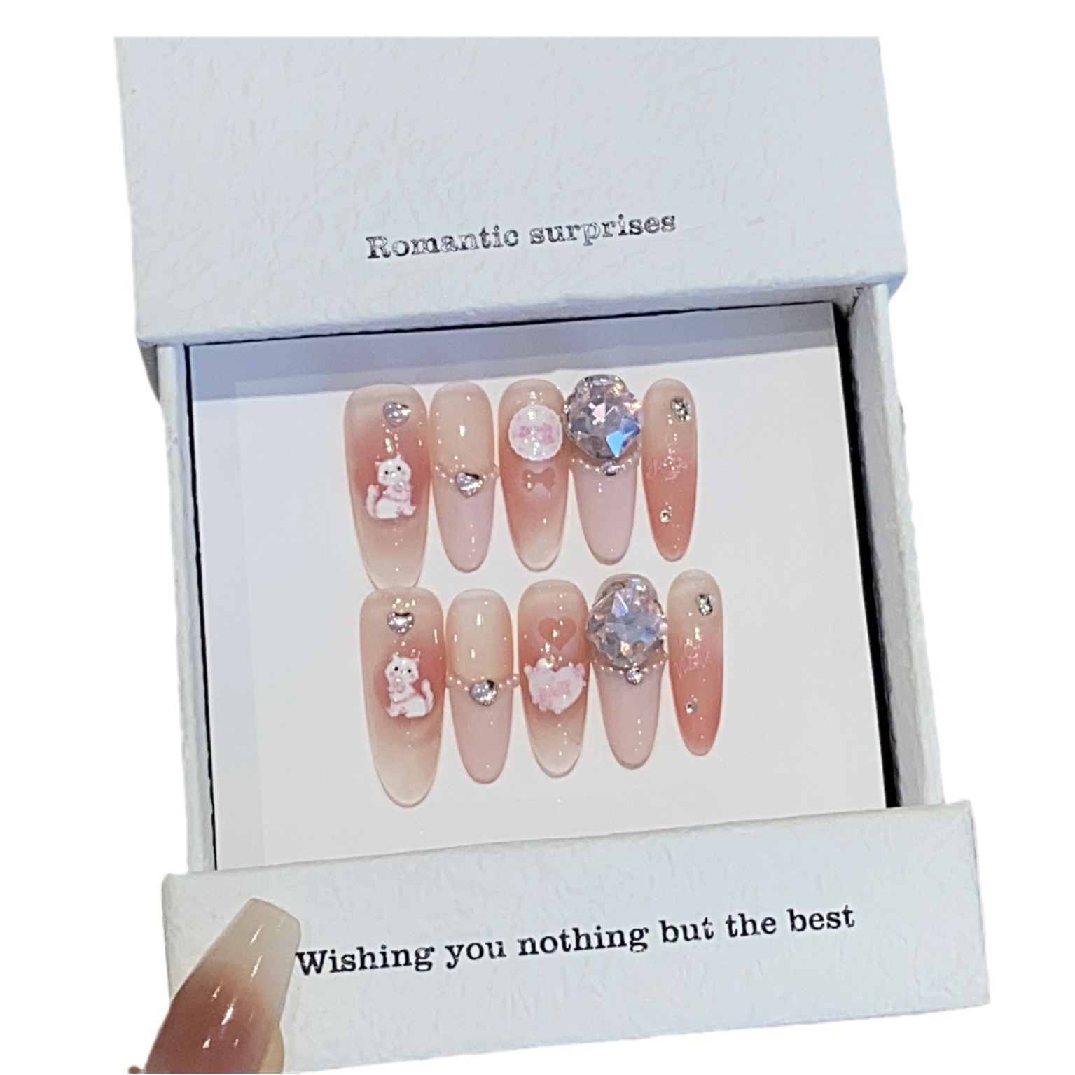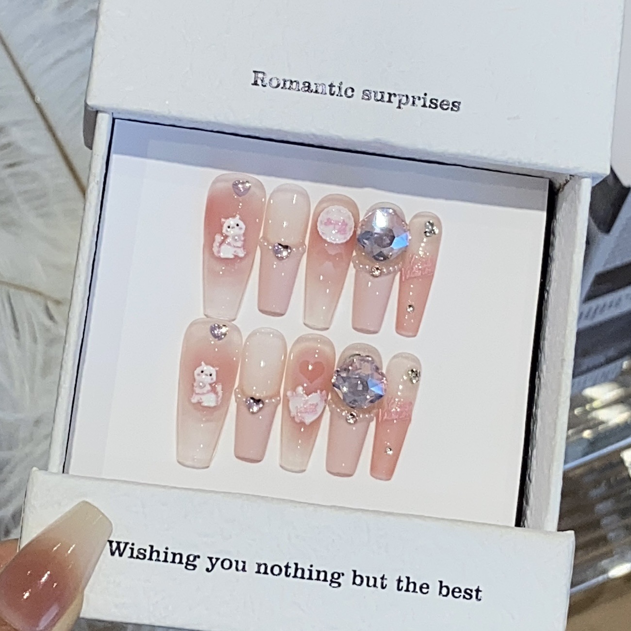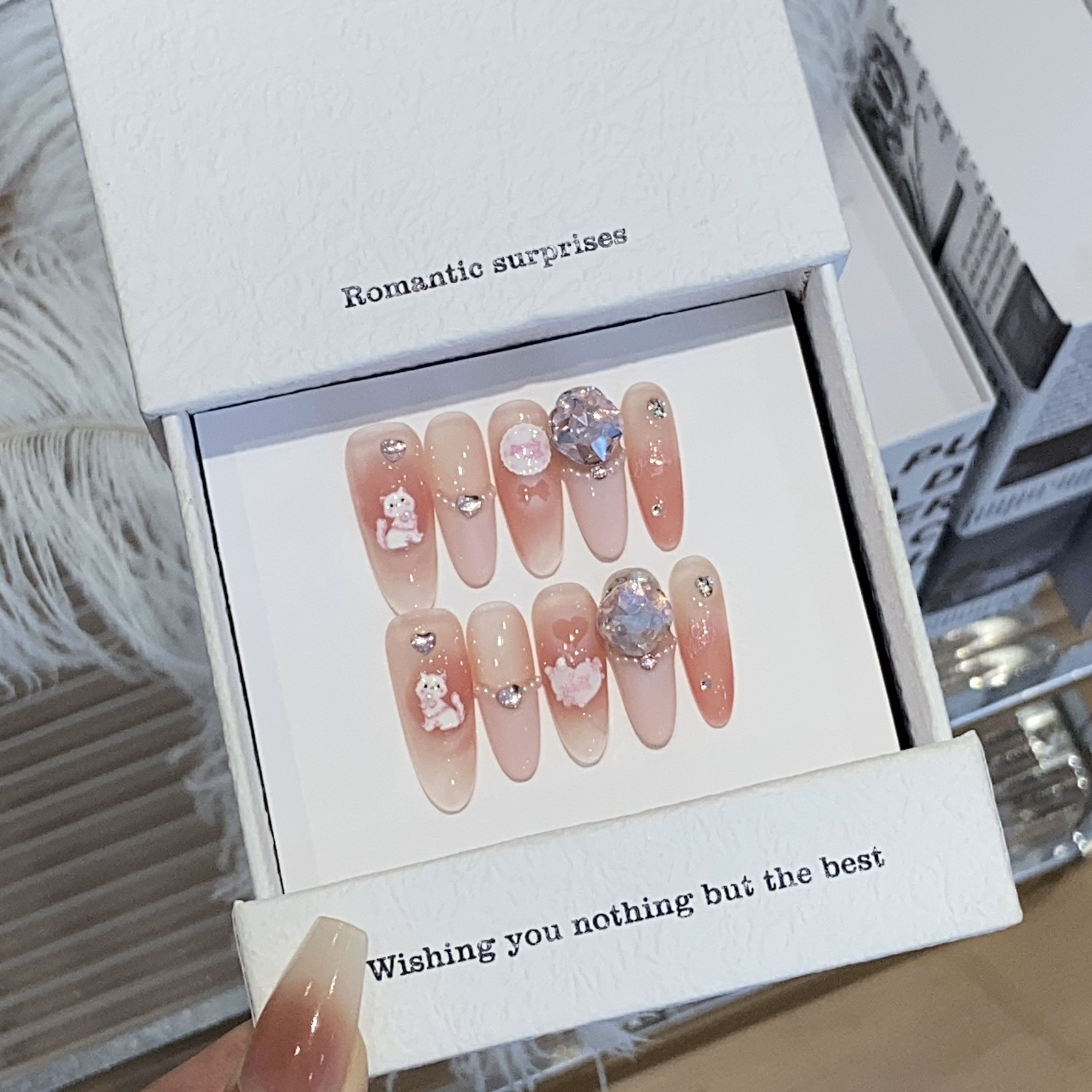一只顾美甲厂【原创实拍】少女粉嫩氛围感小猫法式蜜桃可可指甲贴