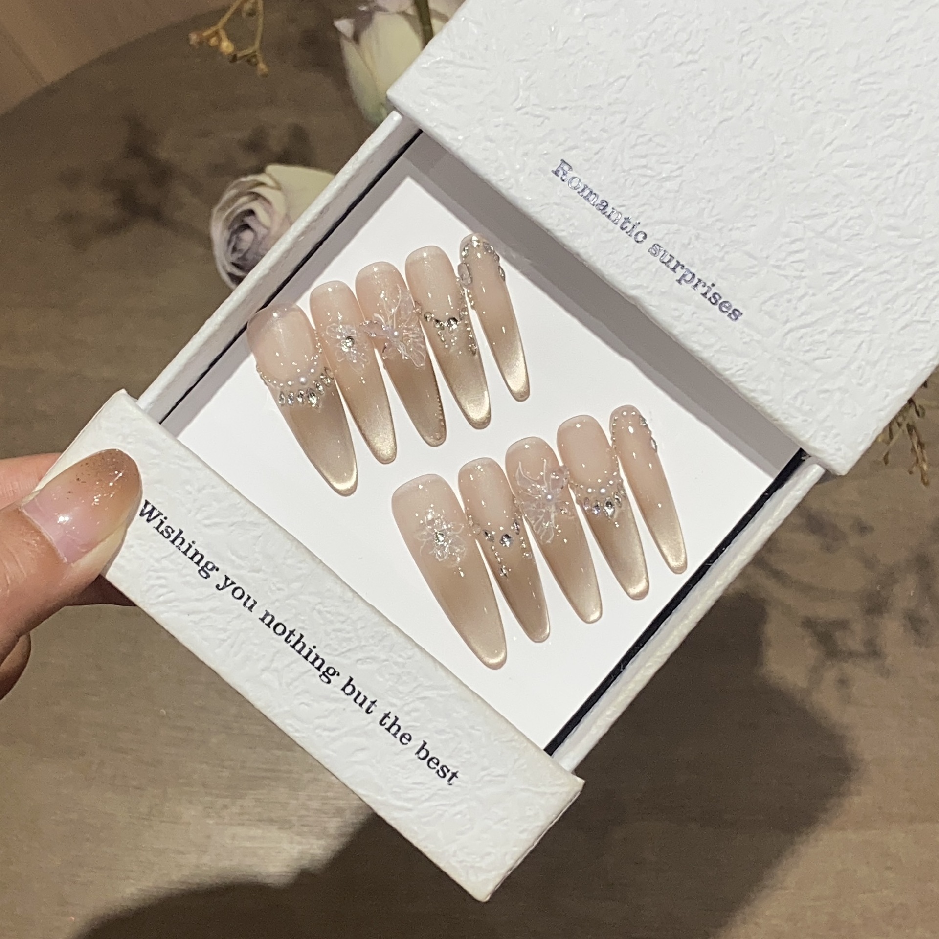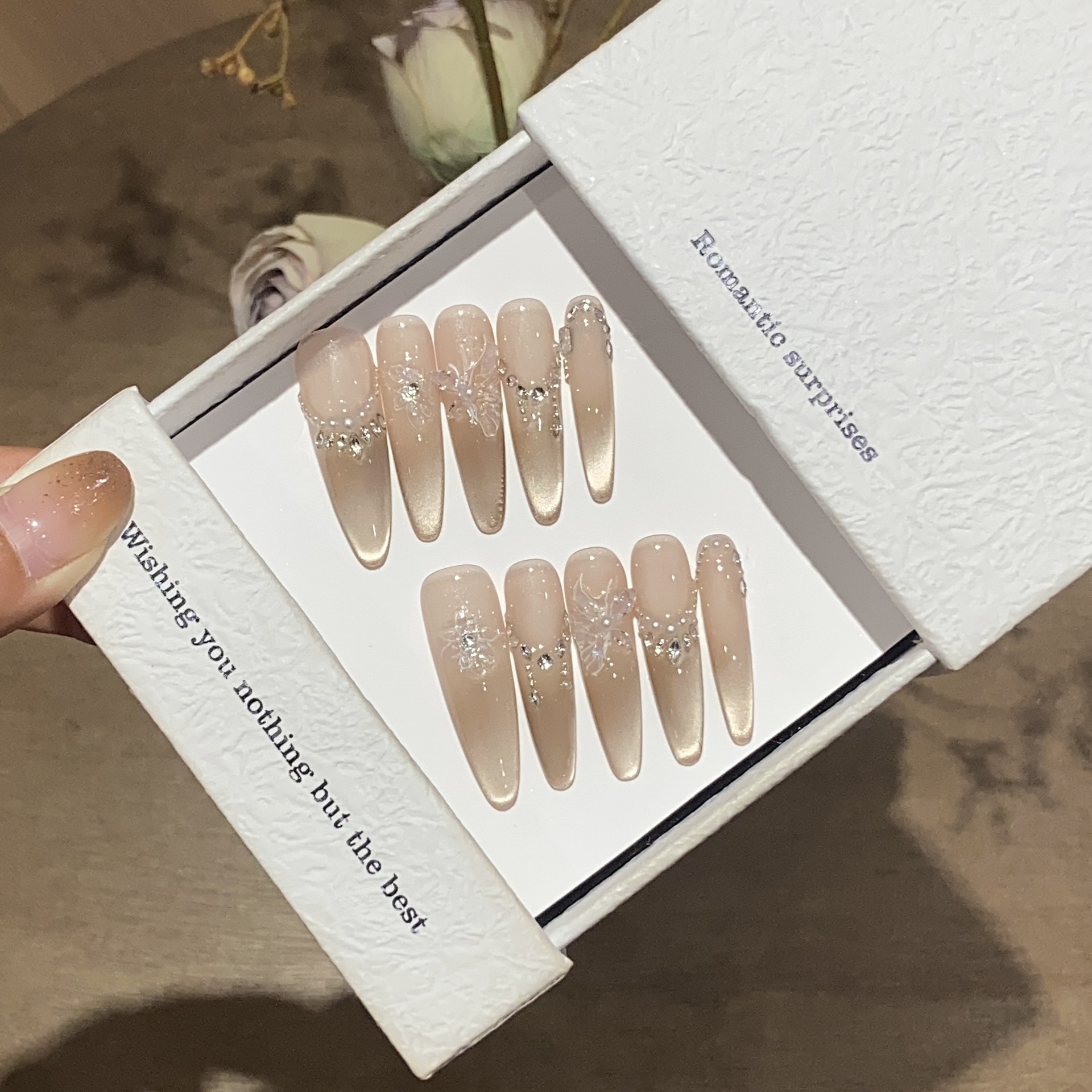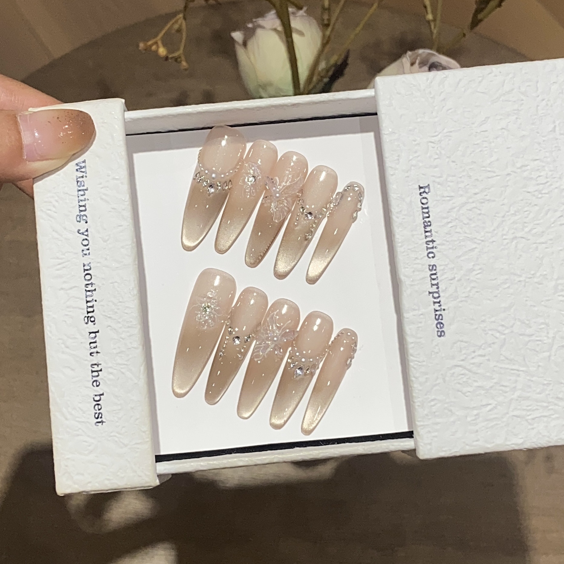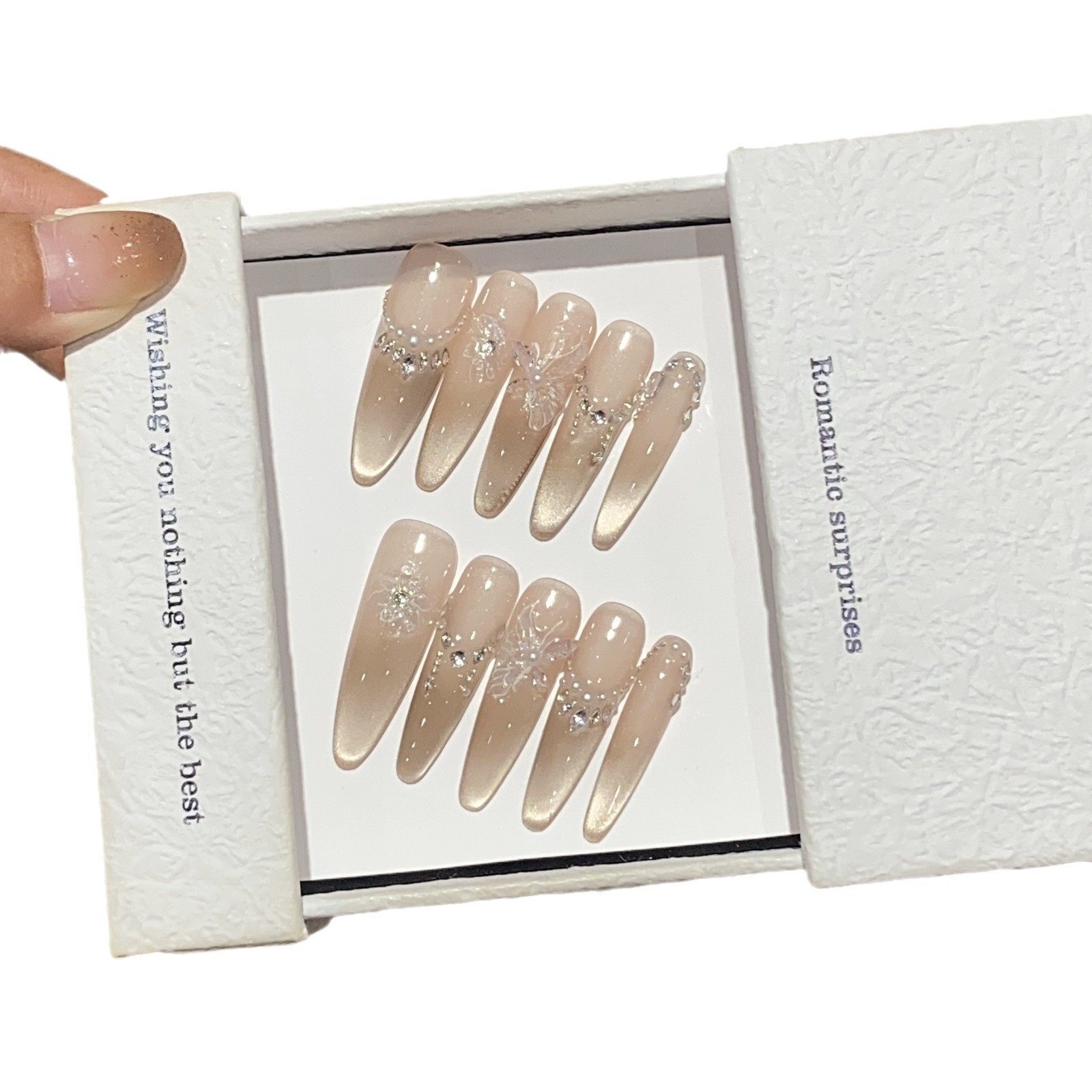 一只顾美甲 立体浮雕碎钻蝴蝶渐变猫眼月之浮光可拆卸穿戴甲贴片
