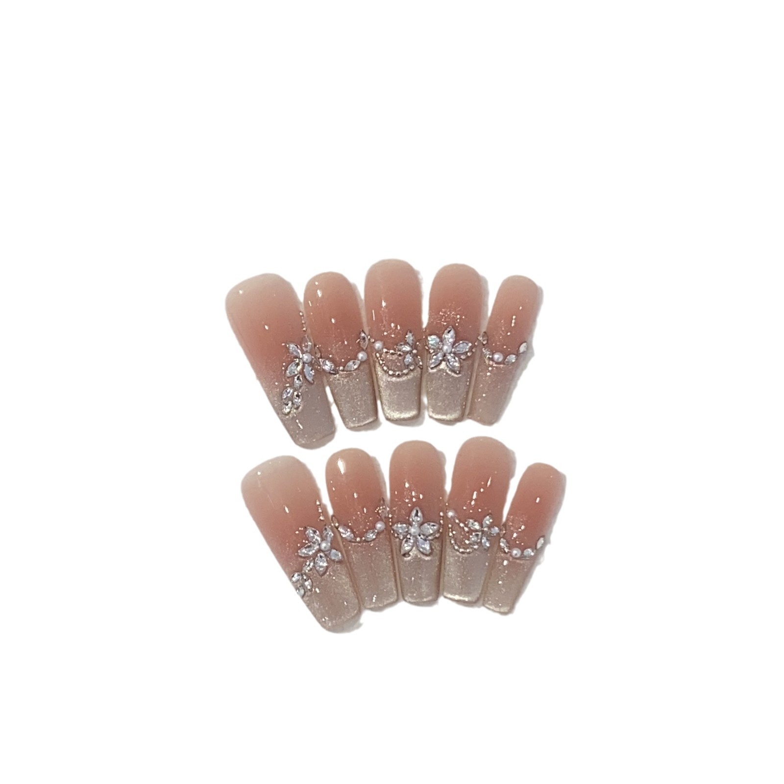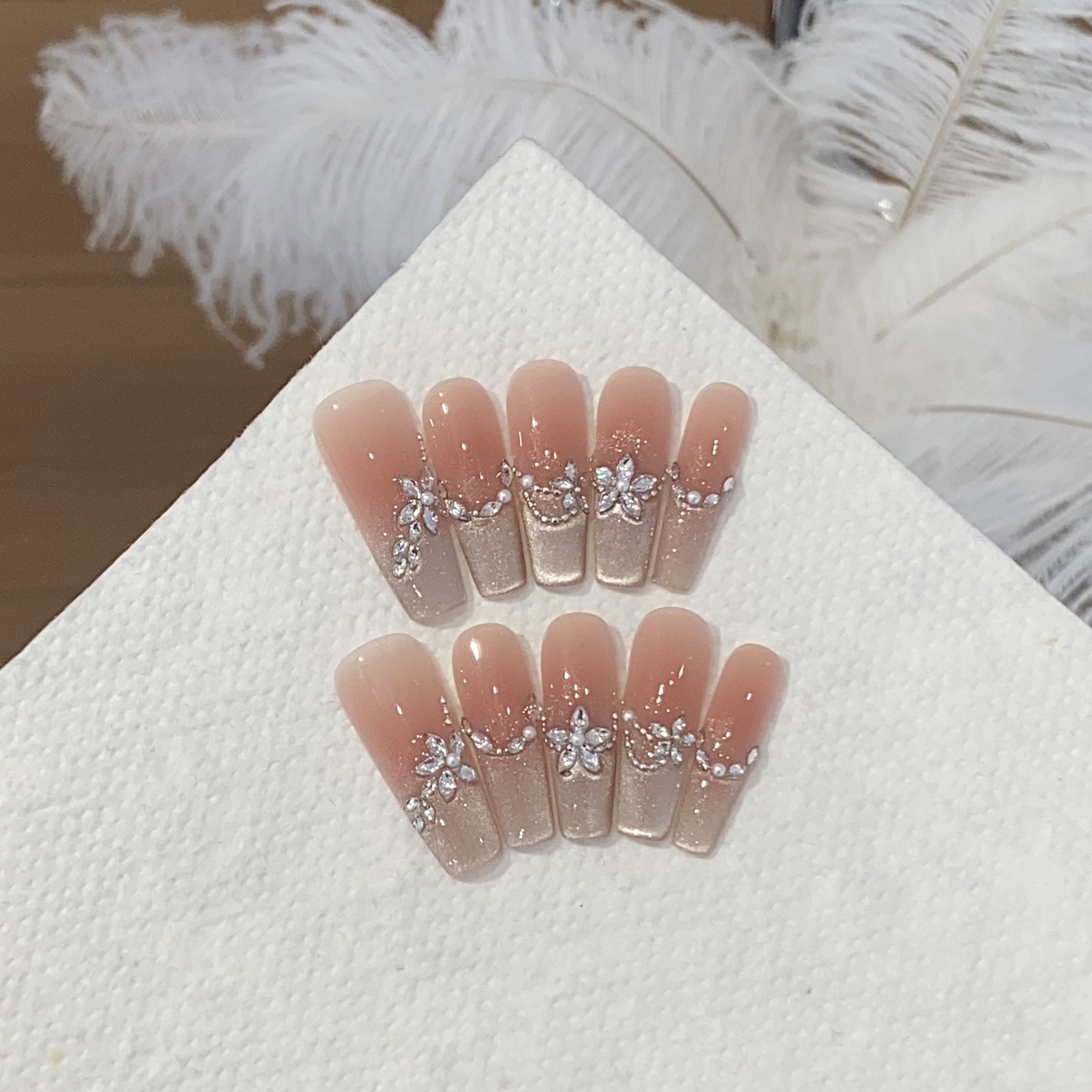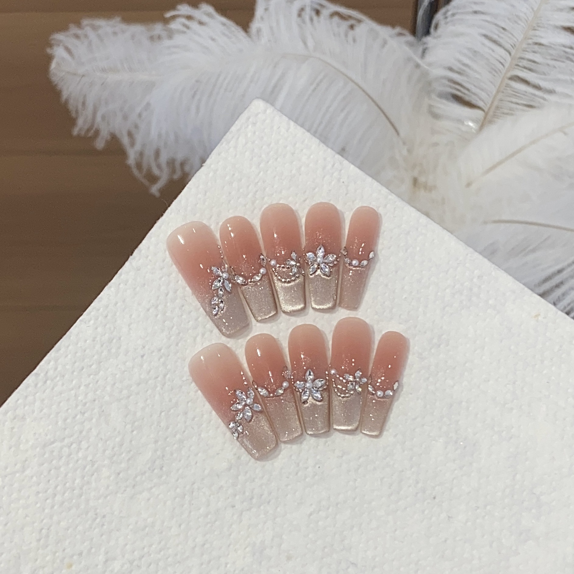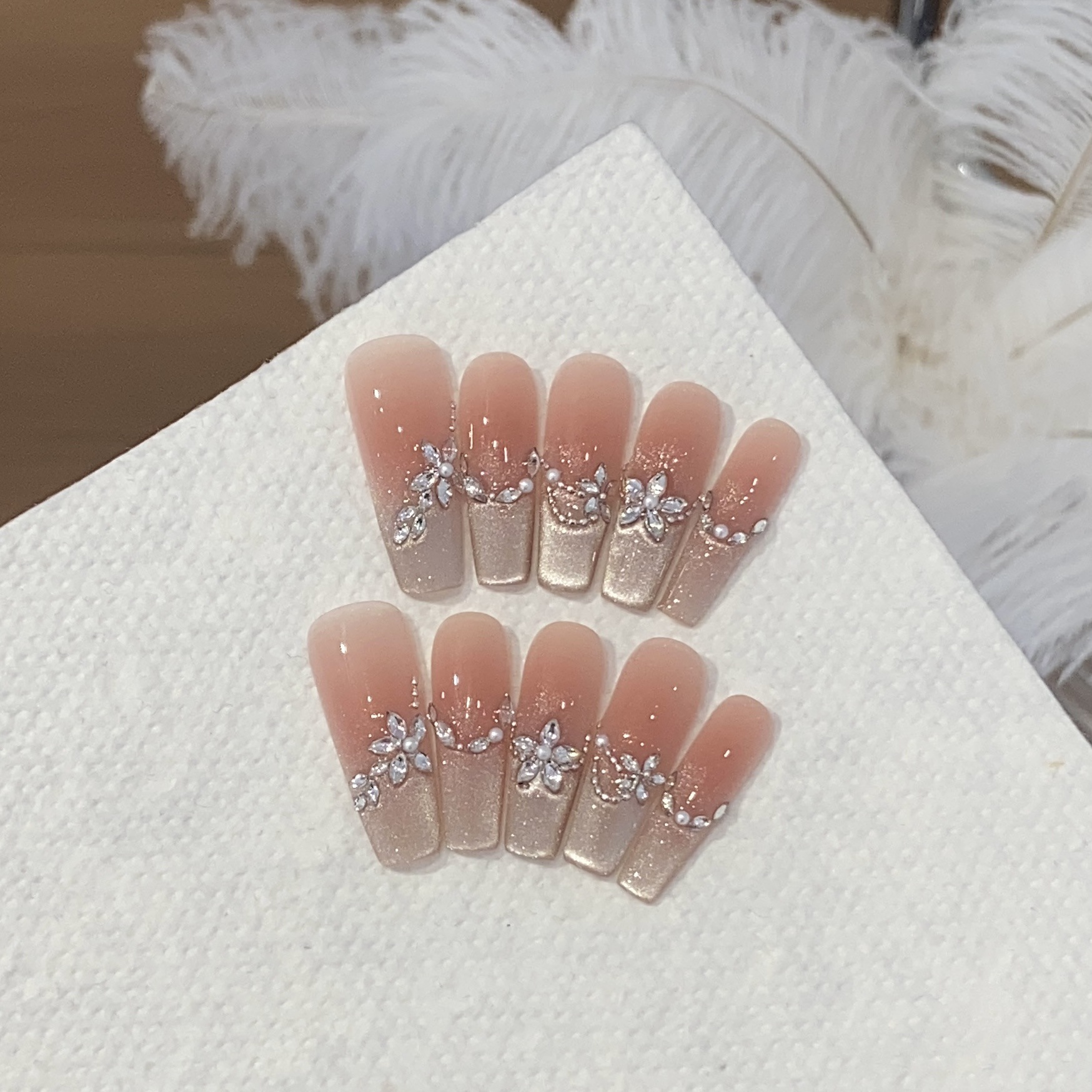 一只顾美甲 渐变侧宽光猫眼珍珠链条马眼堆钻小花杏仁番茄贴片