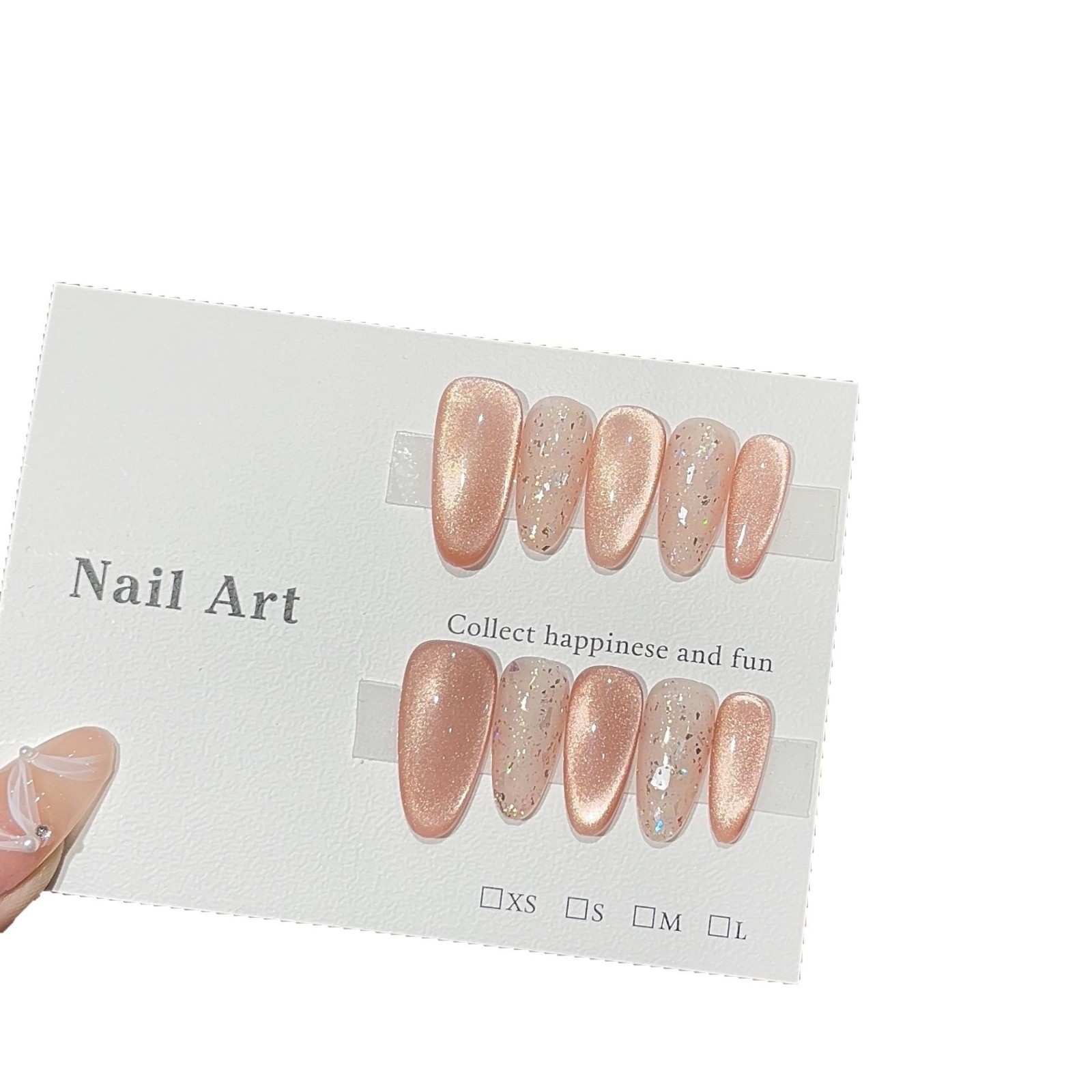 一只顾【绵绵奶芙】 日常显白小短甲裸粉玻璃珠宽光猫眼穿戴甲