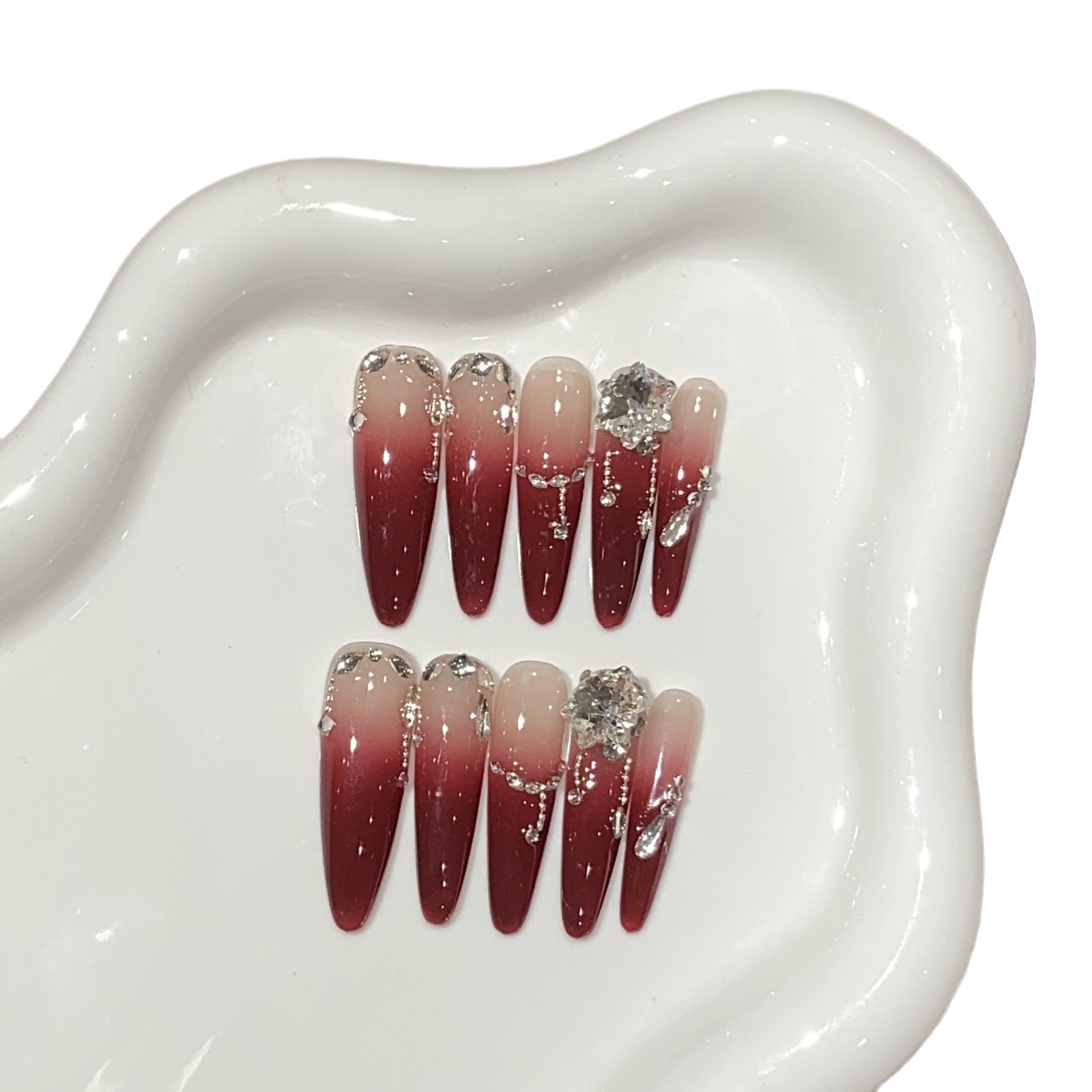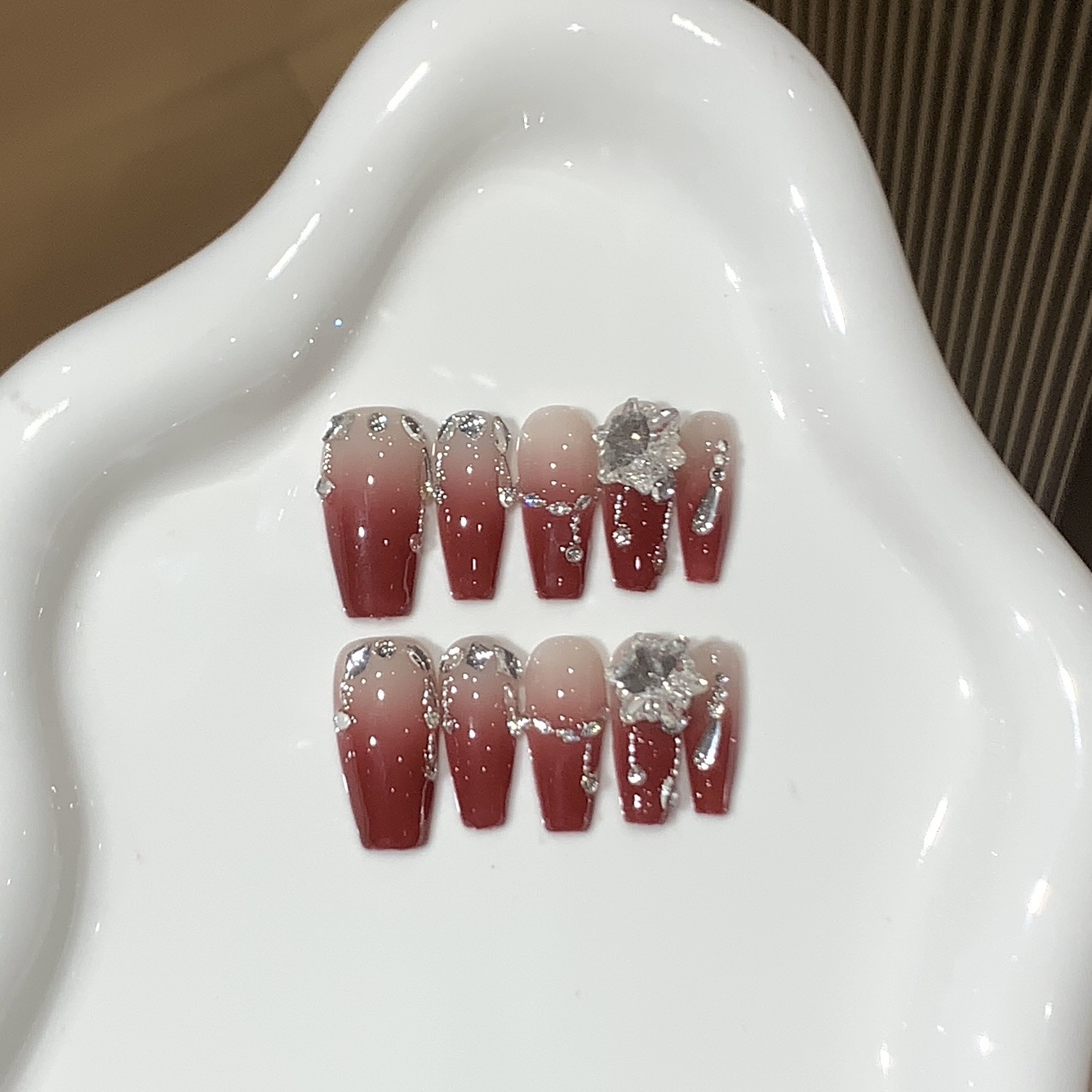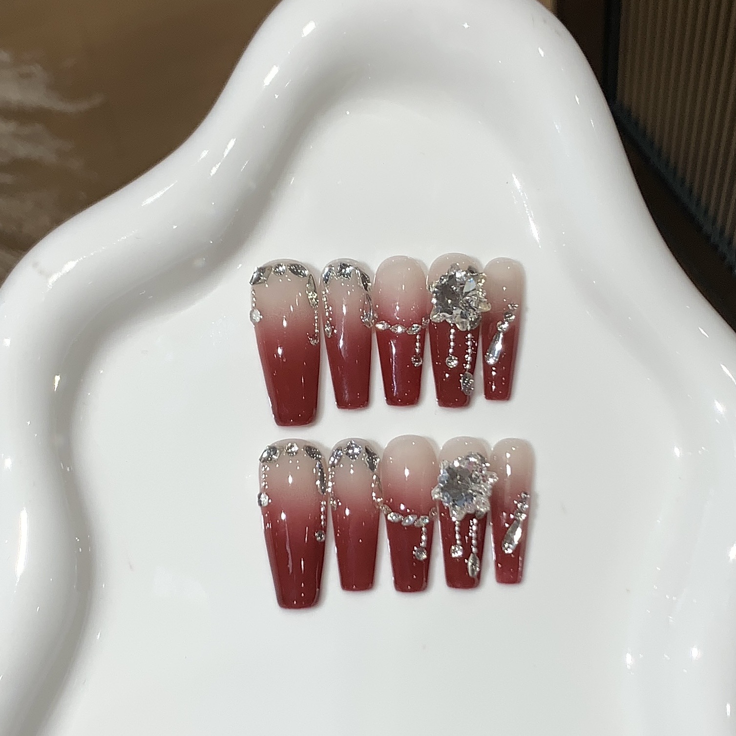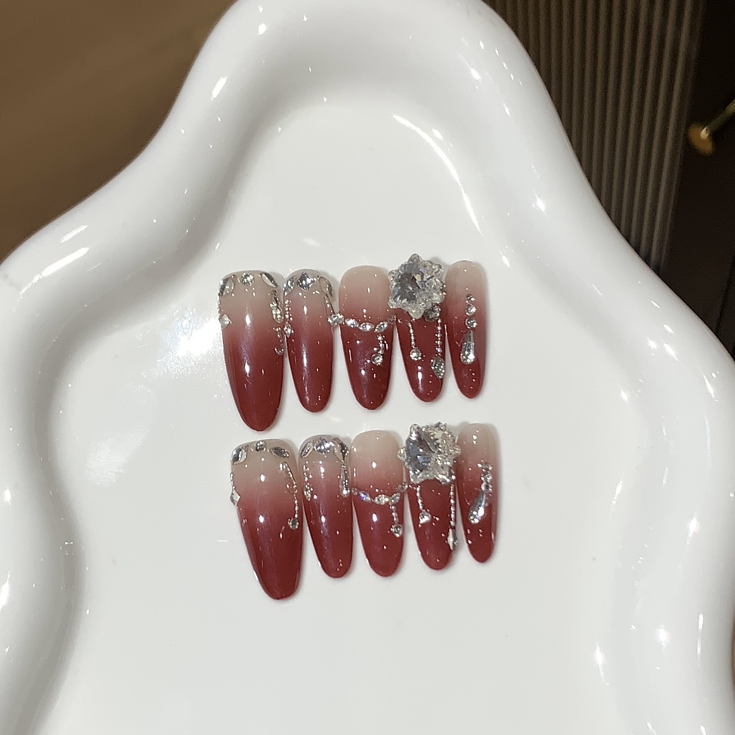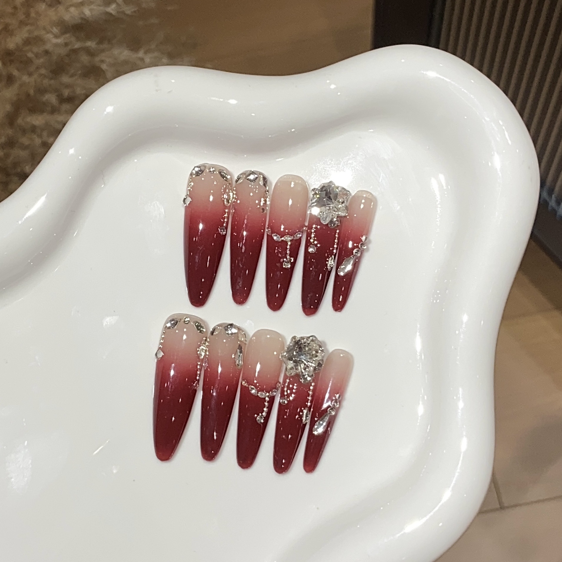 一只顾美甲【Y】高级新年车厘子红氛围感喷枪渐变小钢珠红礼服