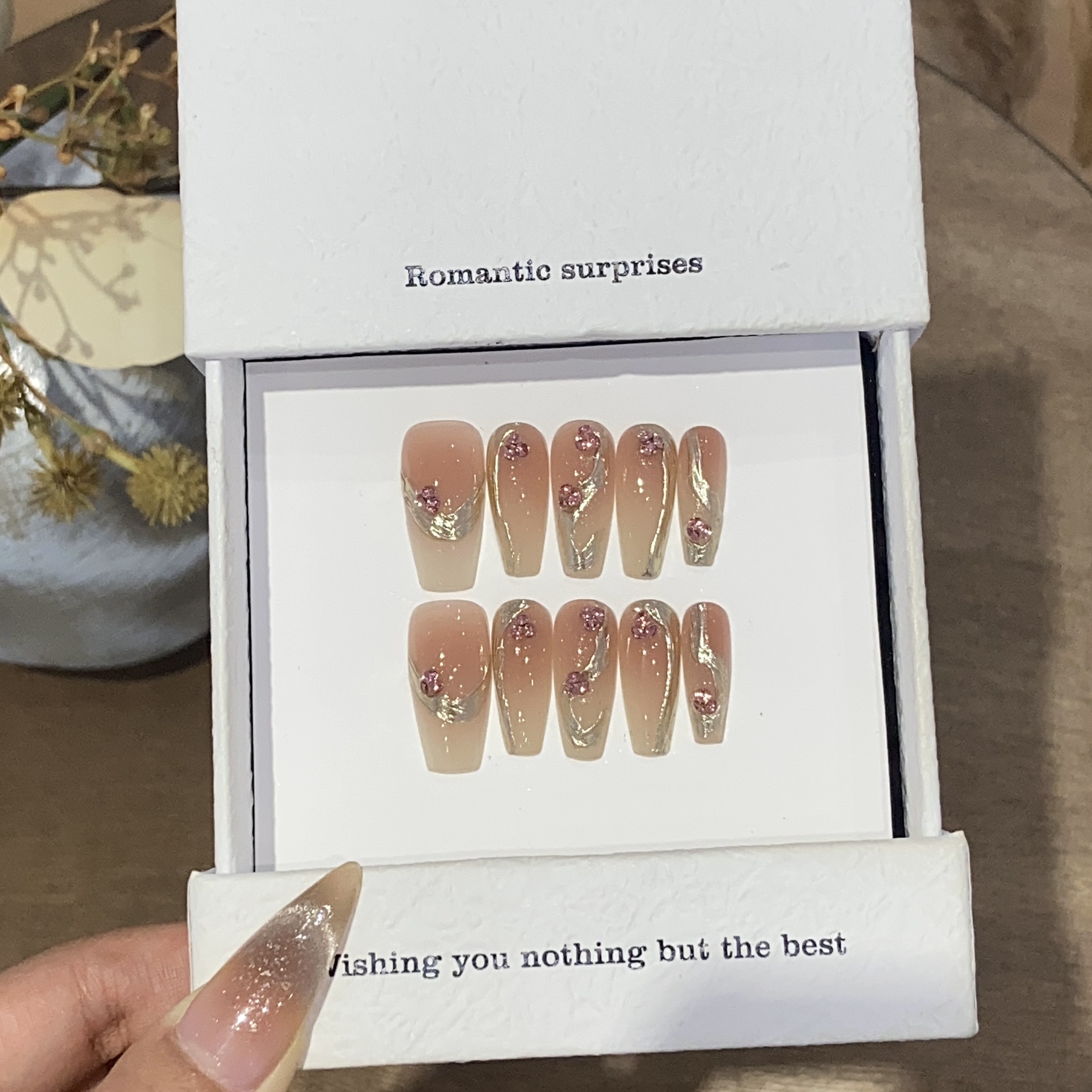纯手工穿戴甲暗黑蝴蝶手绘玫瑰可拆卸重复使用破碎感重工美甲批发