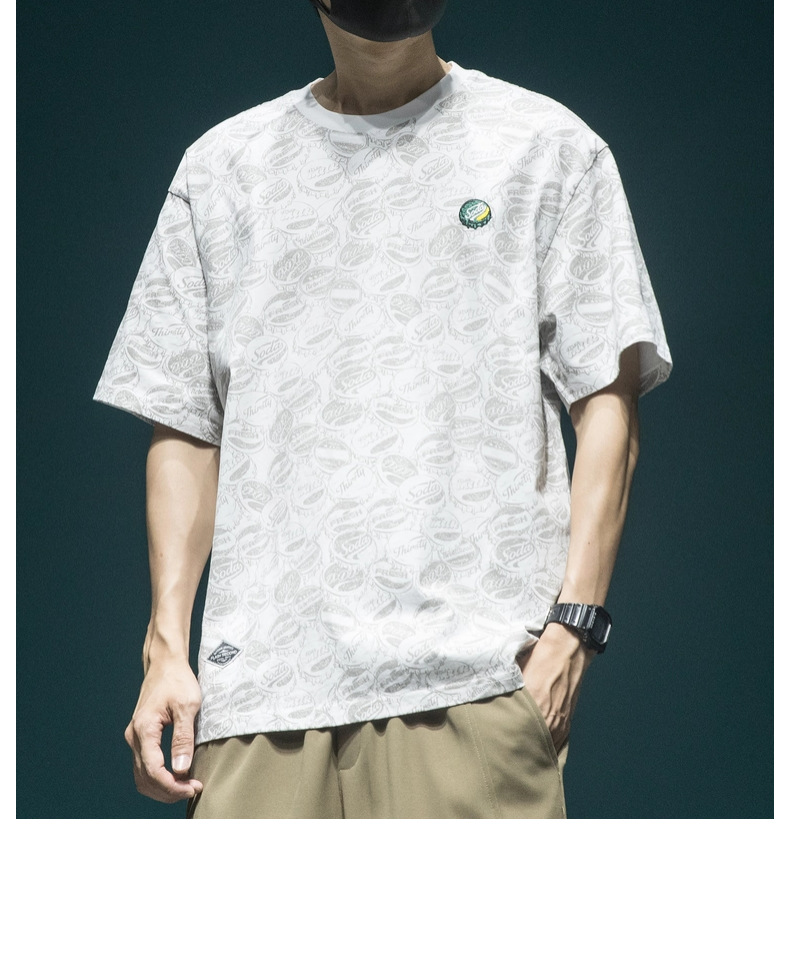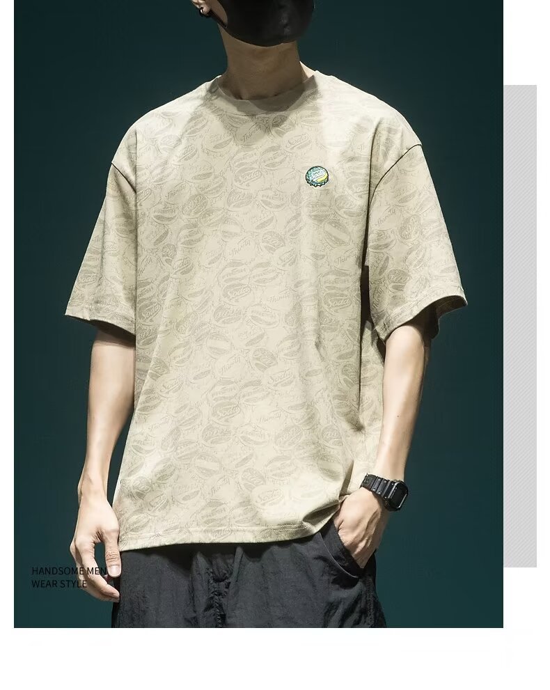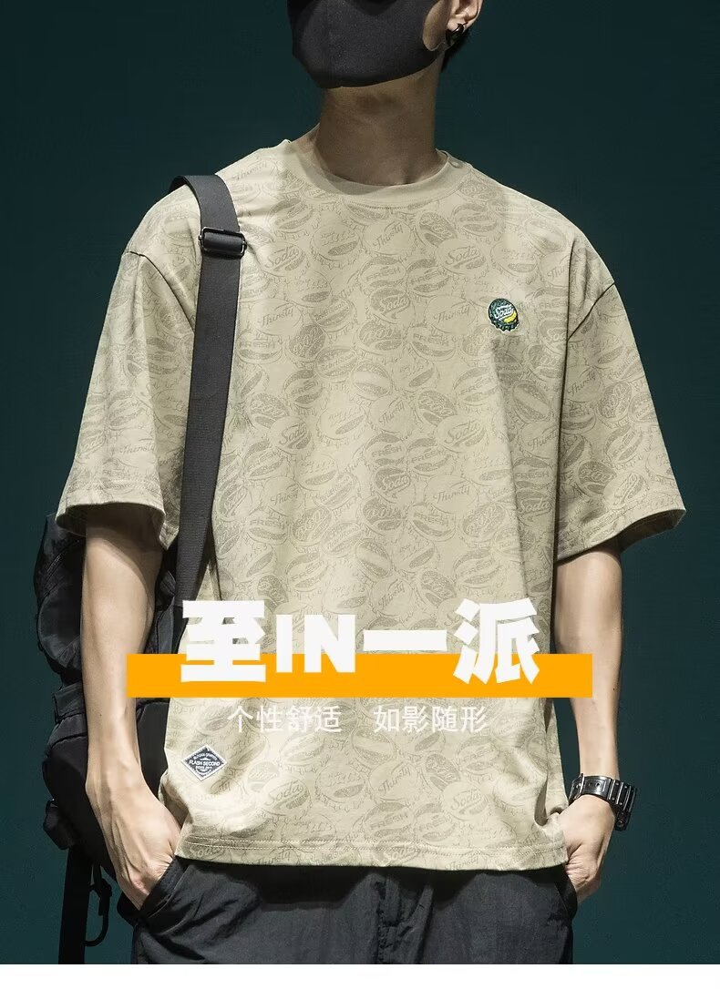 美式潮流短袖t恤男夏季满印半袖上衣胖子大码潮牌宽松冰丝体恤潮