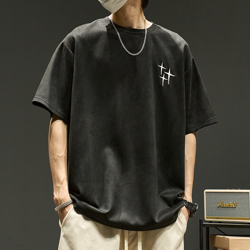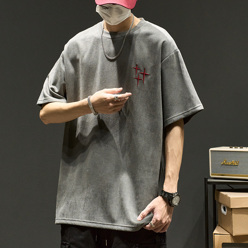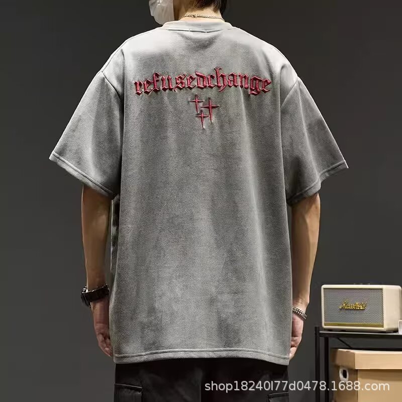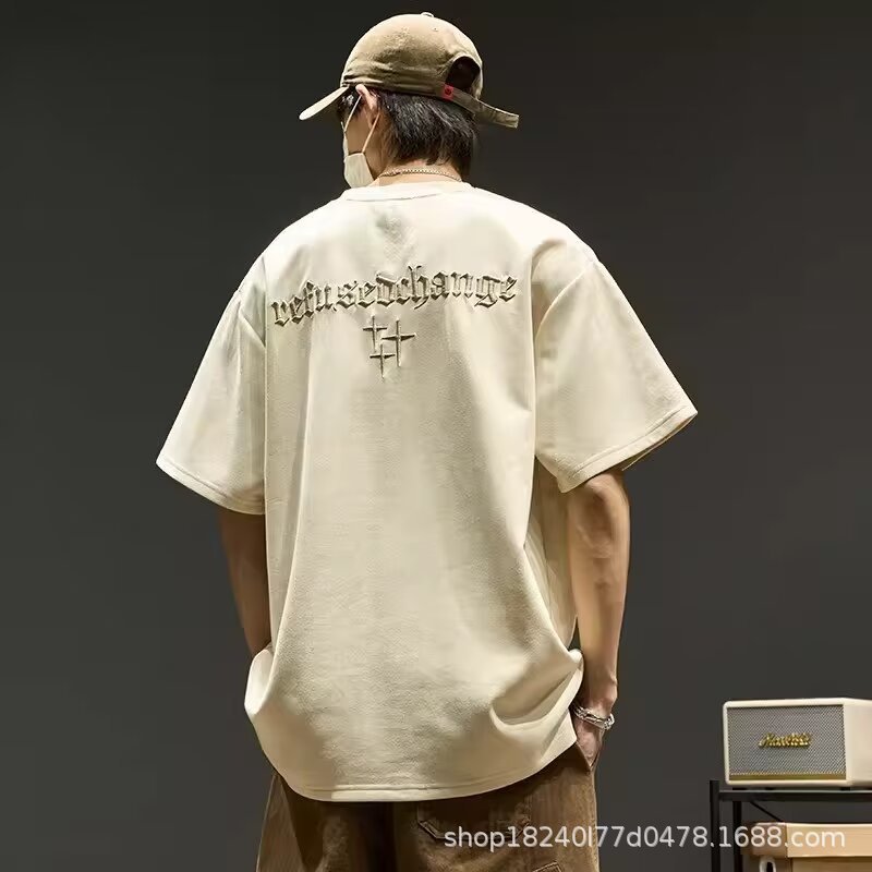美式复古短袖t恤男美式高街潮牌ins设计感刺绣半截袖夏季宽松休闲