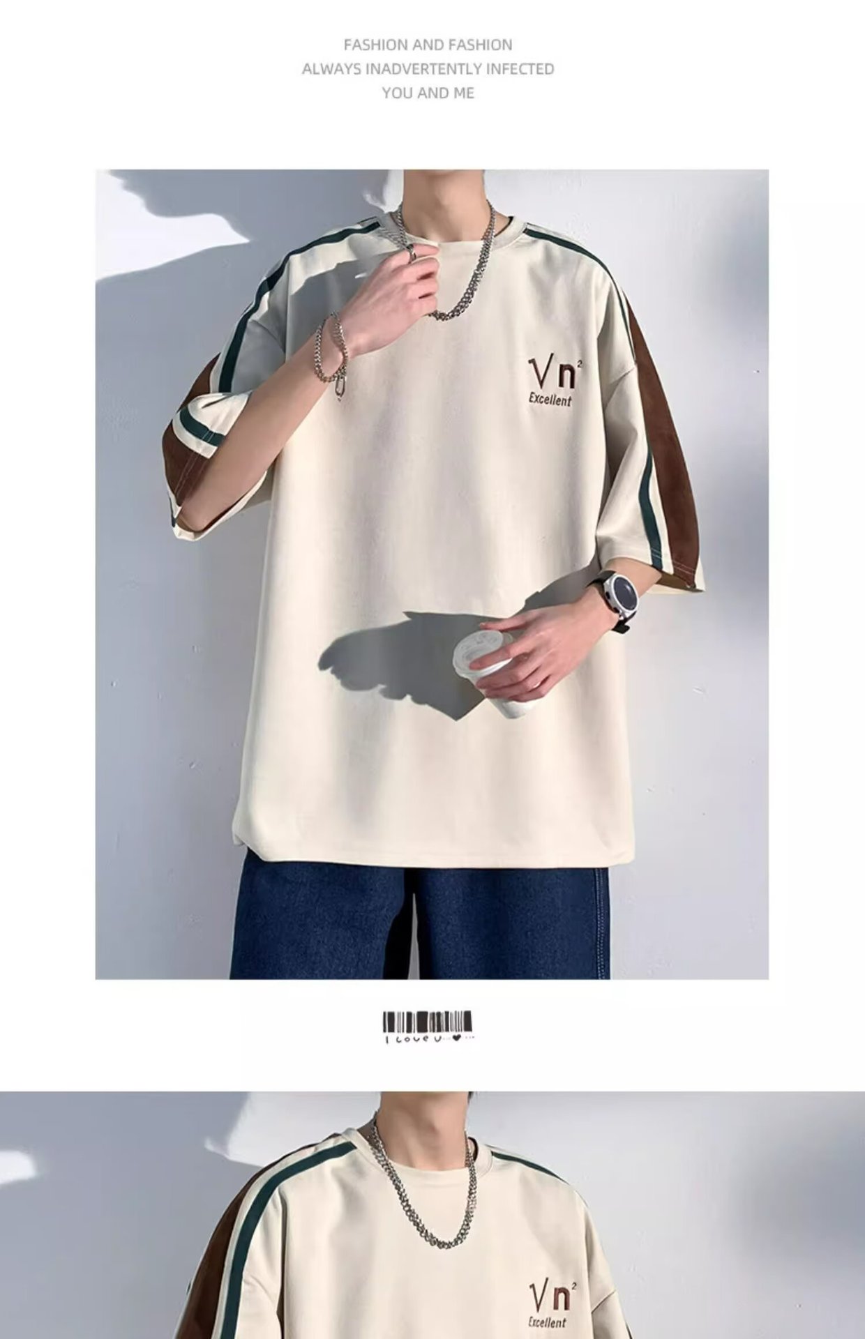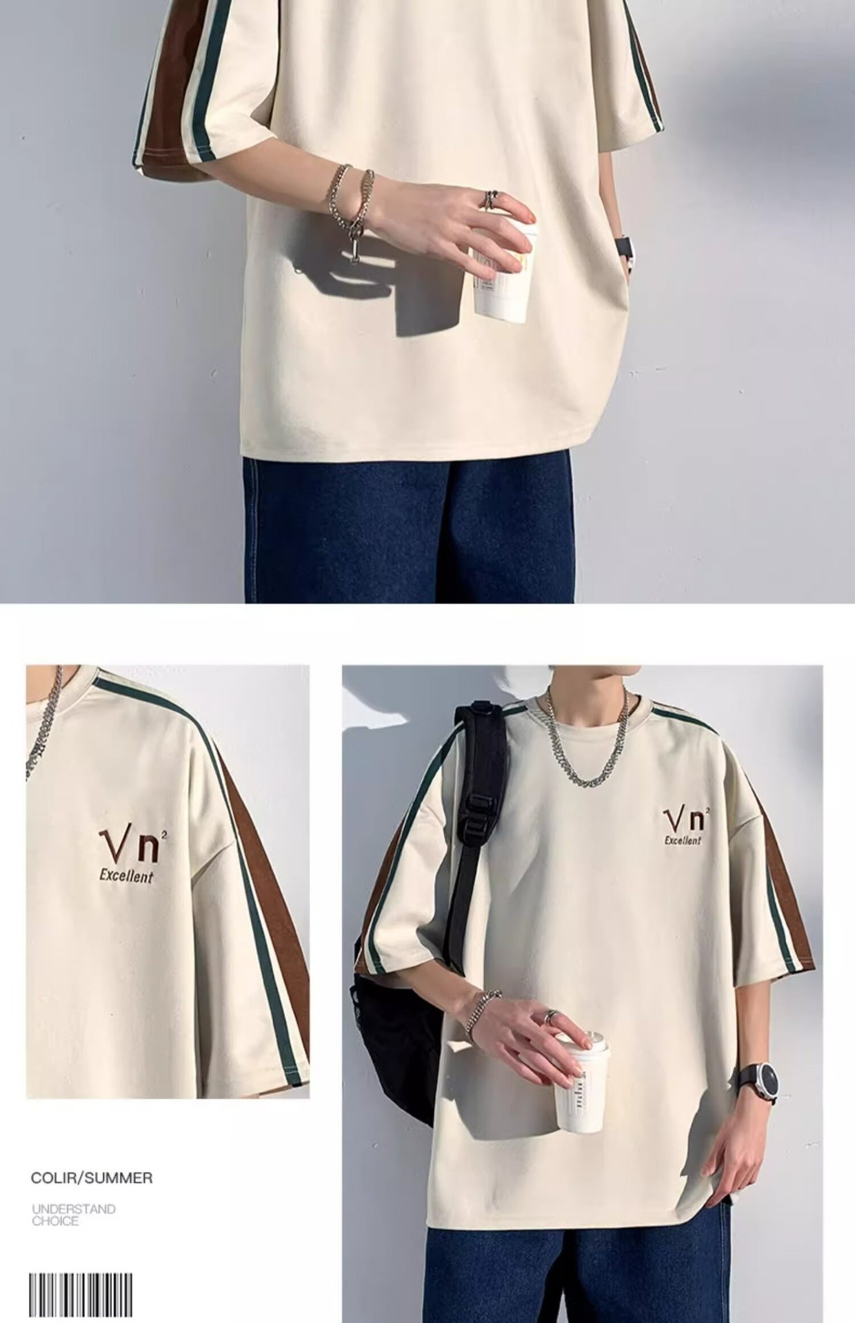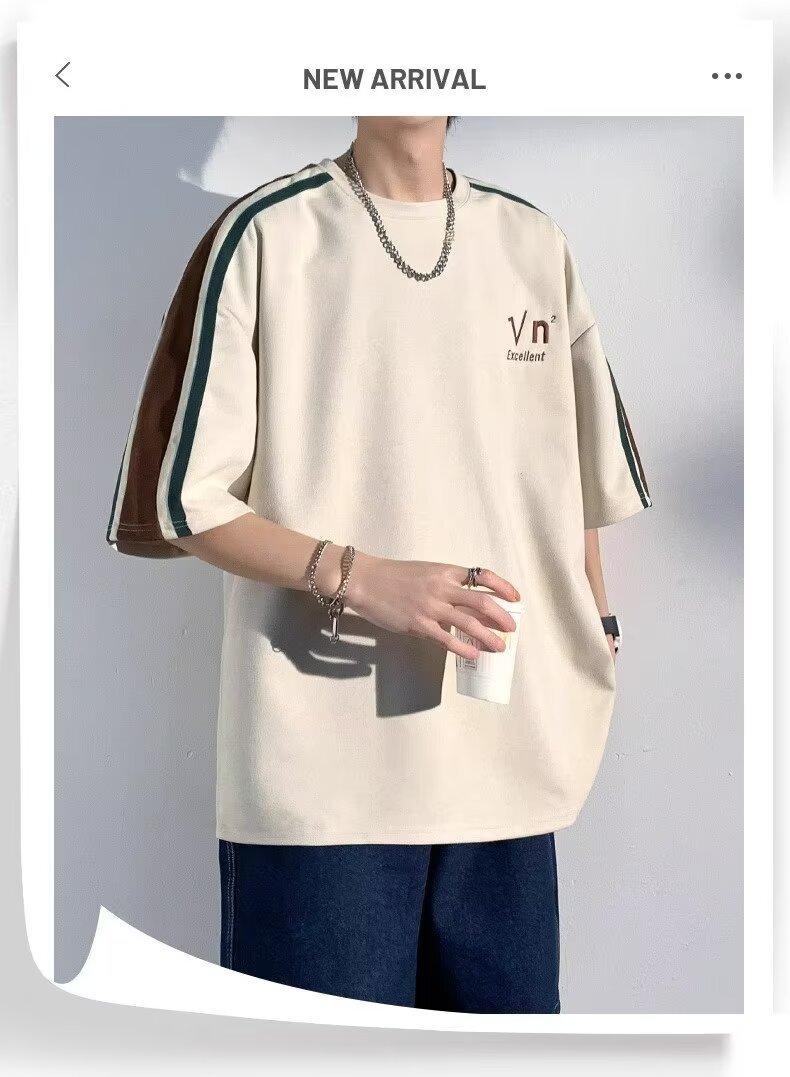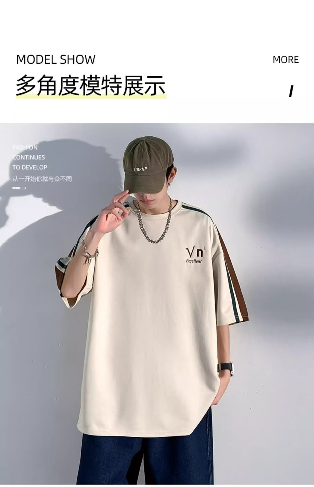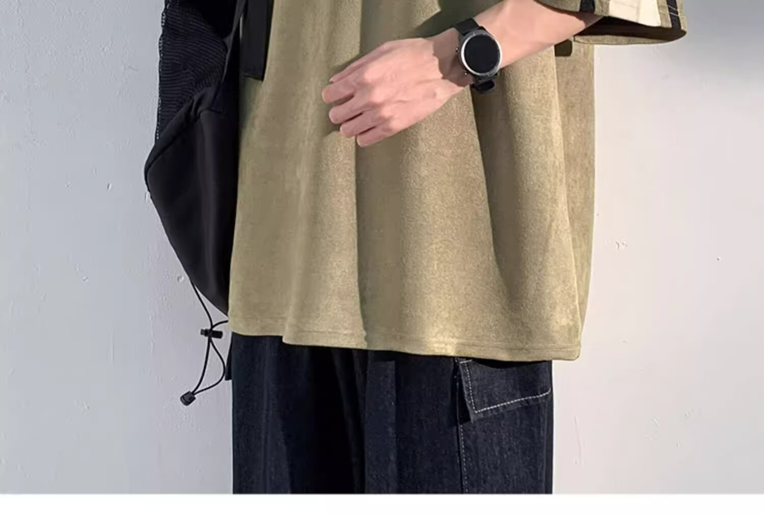 美式潮牌麂皮绒短袖t恤男士夏季刺绣上衣大码宽松港风ins休闲体恤