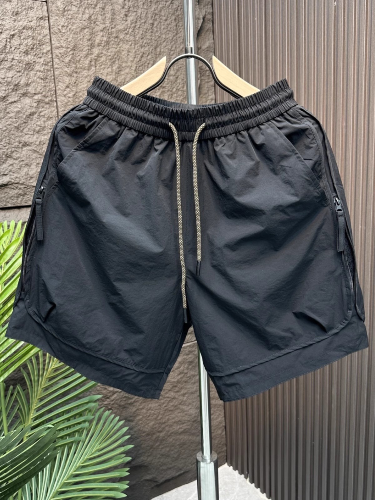 拉链装饰短裤男夏季薄款冰丝速干五分裤美式复古休闲工装沙滩裤男