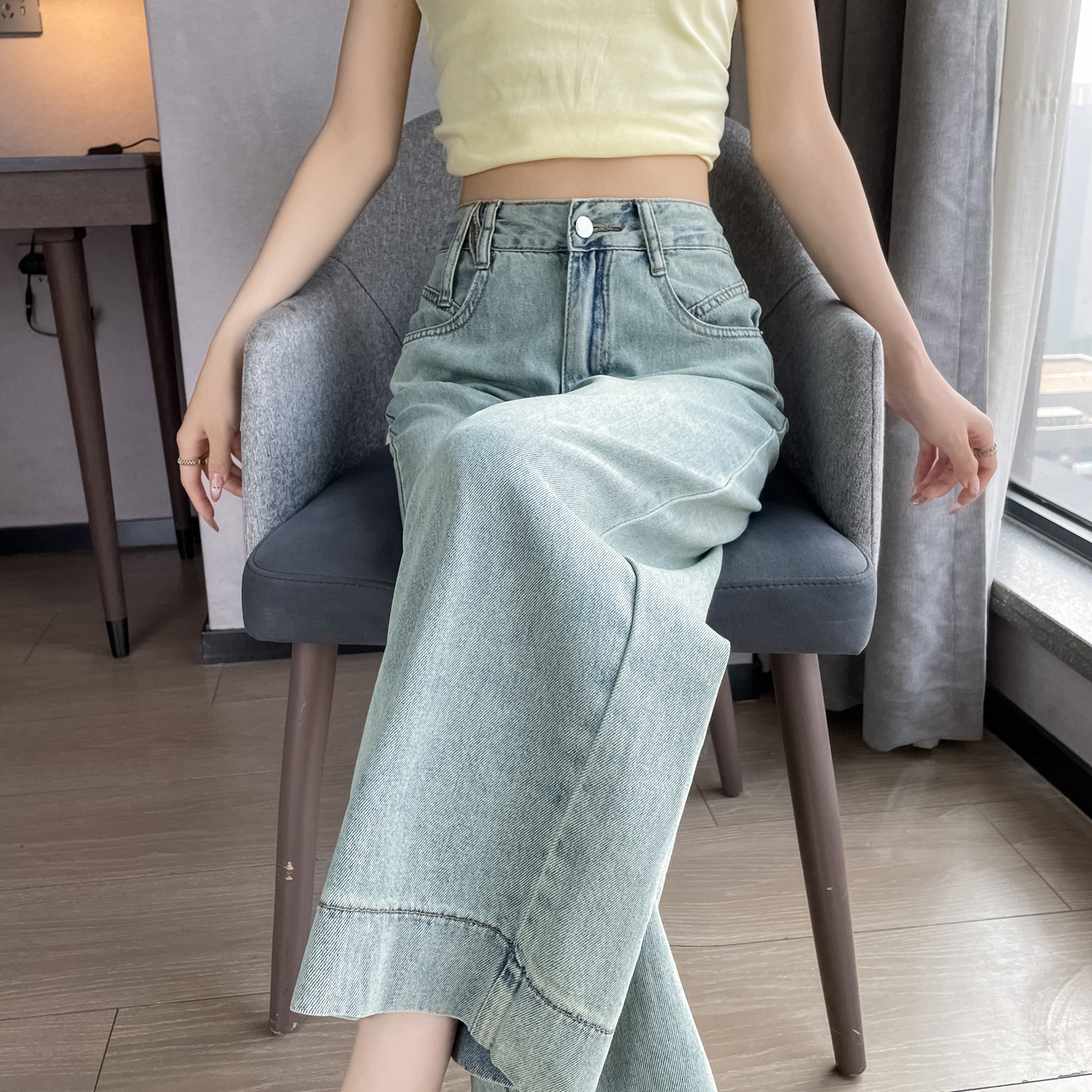 小个子牛仔裤女夏天薄款新款直筒宽松高腰垂感八九分阔腿裤