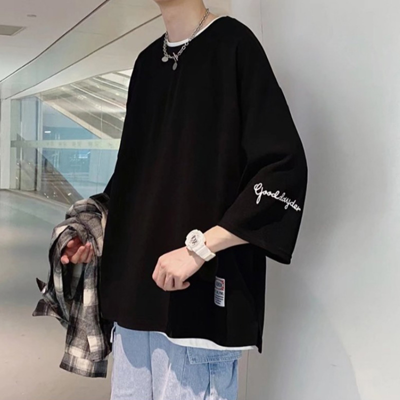 潮流七分袖男t恤夏季薄款宽松大码潮牌半截袖体恤学生短袖上衣潮
