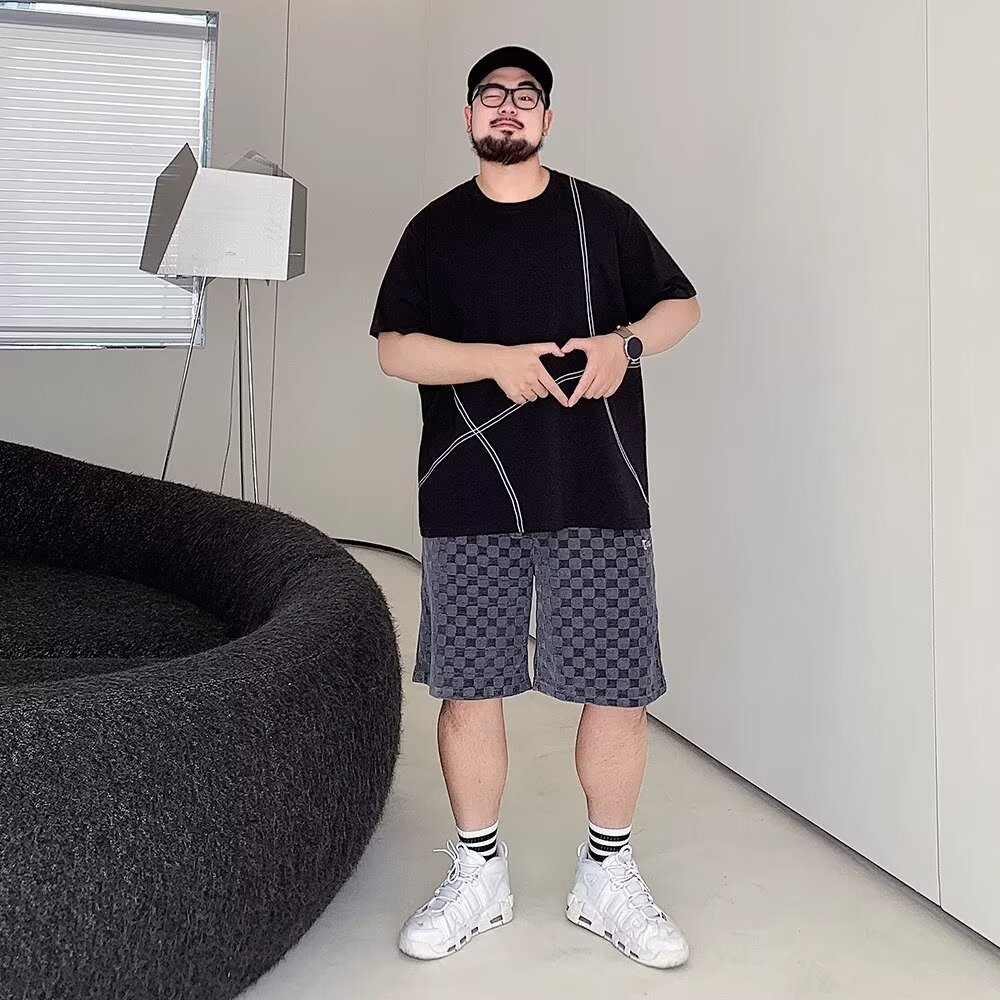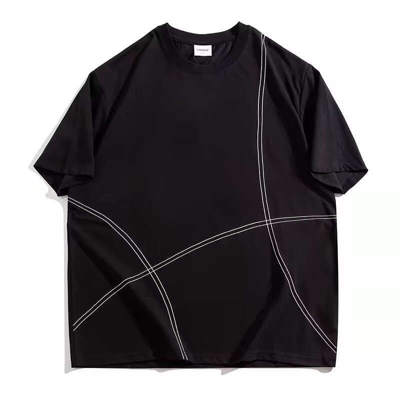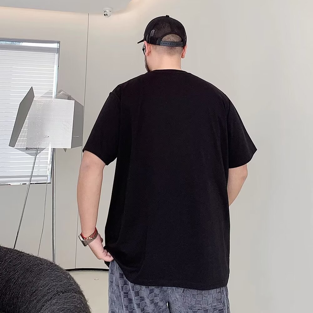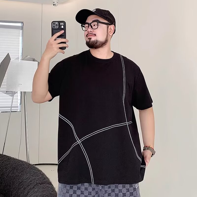 夏季明线装饰潮流短袖T恤男胖子加肥加大码宽松休闲纯棉半袖体恤