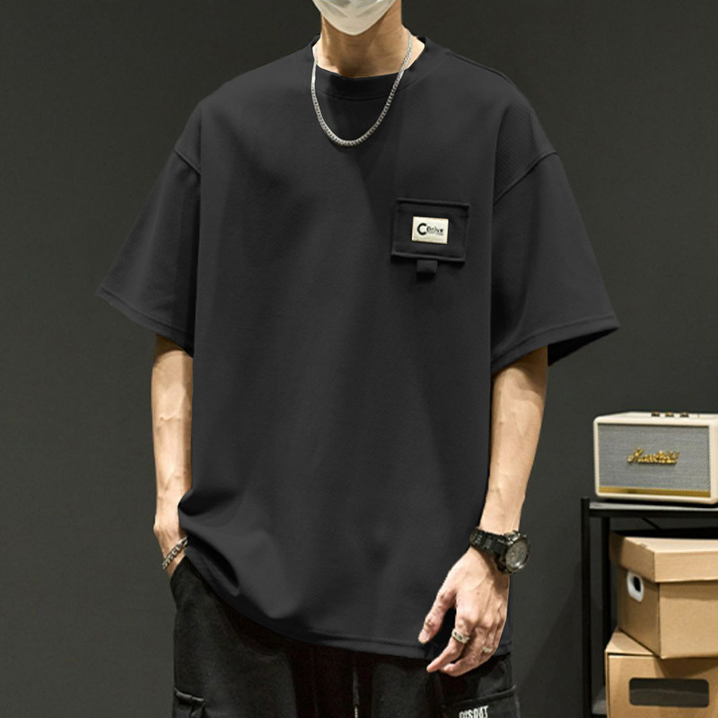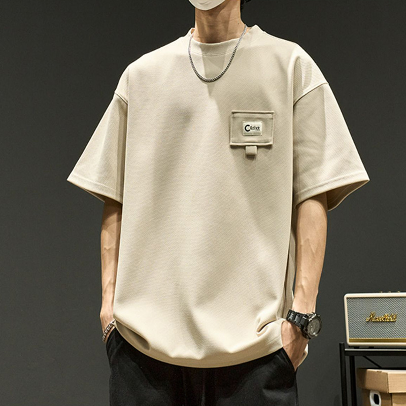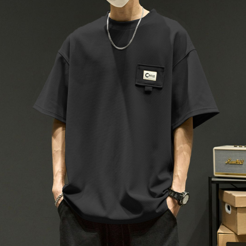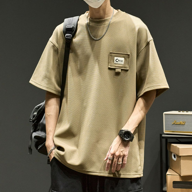 夏季休闲短袖t恤男士薄款透气宽松半袖t恤青年圆领五分袖T恤男装