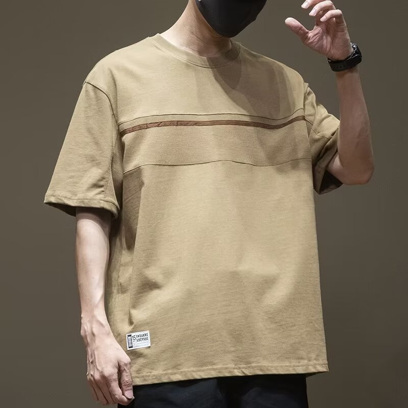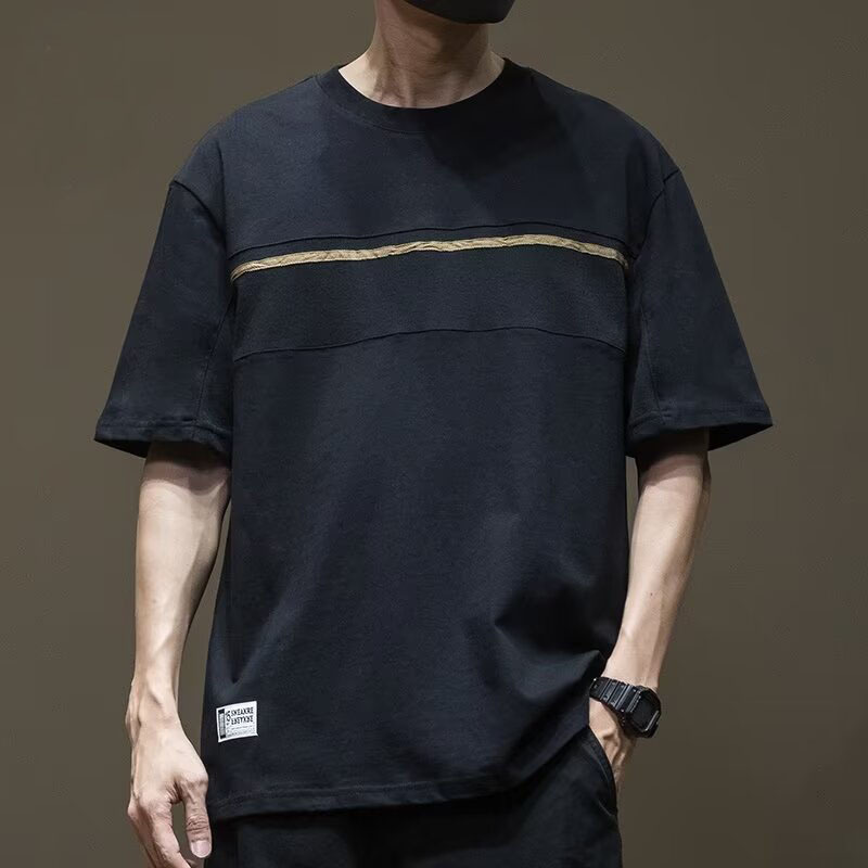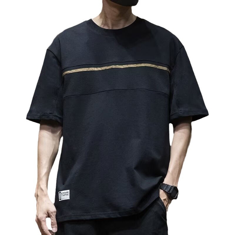 夏季复古潮流撞色拼接短袖T恤男潮牌大码宽松青少年休闲半袖上衣