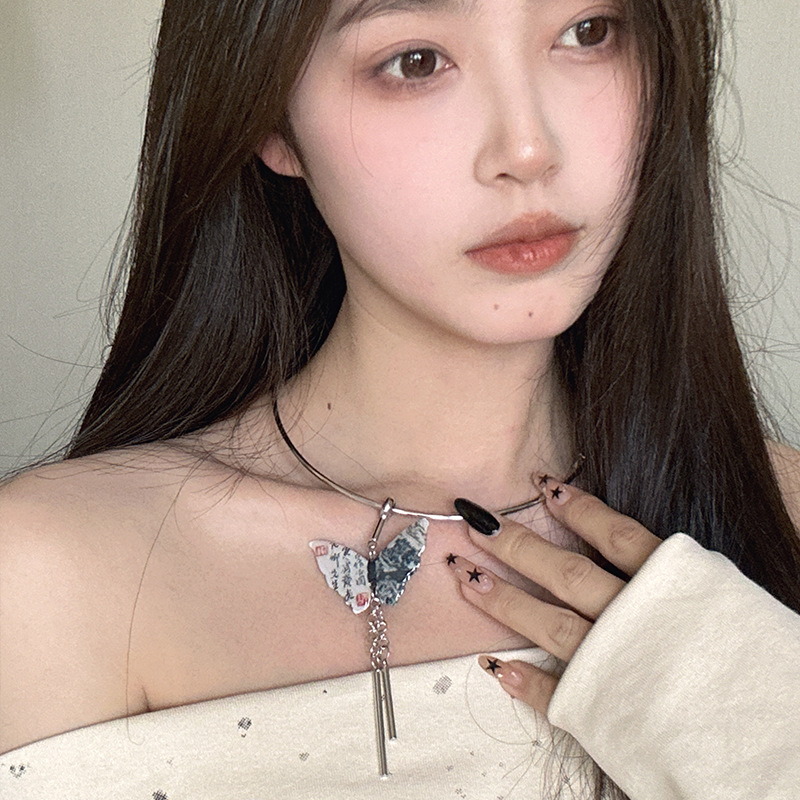新中式蝴蝶流苏项圈国风气质水墨风设计感项链小众轻奢颈链锁骨链