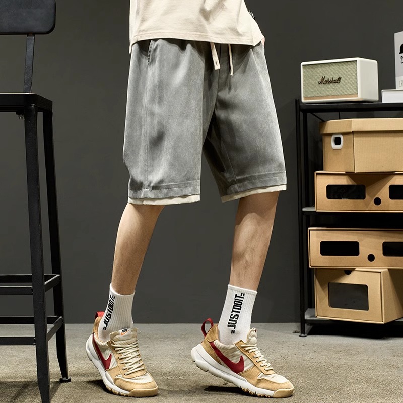 夏季薄款冰丝短裤男大码宽松速干运动短裤美式潮牌假两件五分中裤