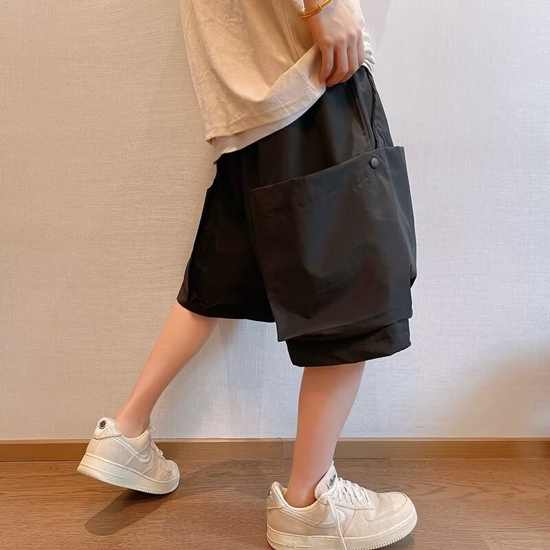潮牌高街宽松纯色大口袋工装短裤男夏季潮流胖子加肥加大码五分裤