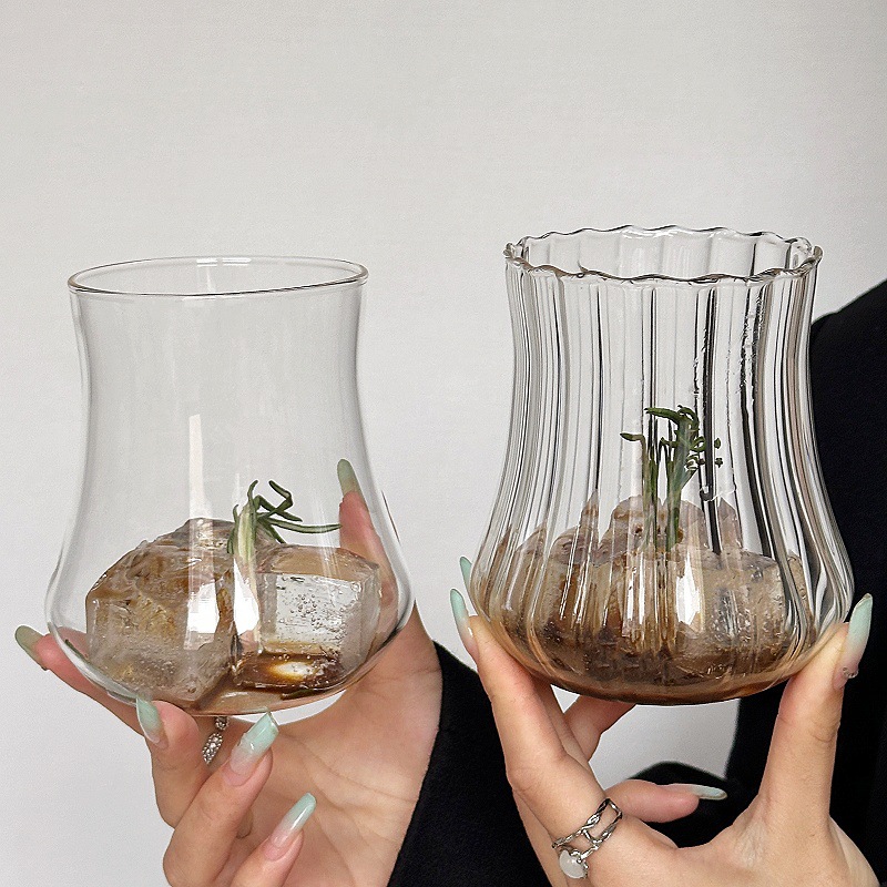 小众ins复古鼓型玻璃杯冰美式咖啡杯大容量水果茶杯果汁杯饮品杯