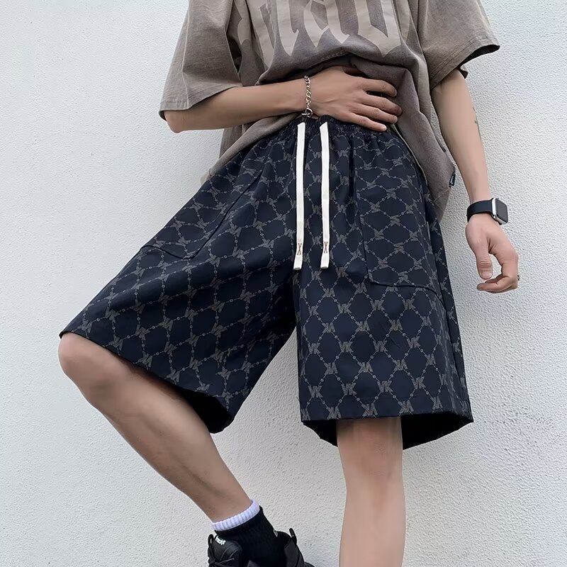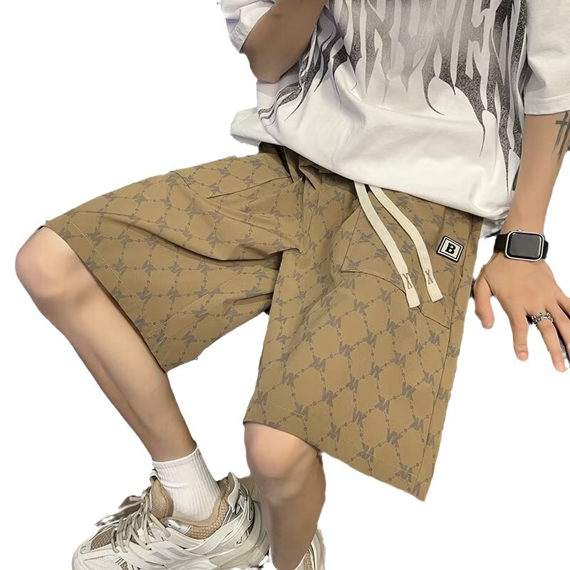夏季满印速干休闲短裤男潮牌薄款百搭中裤港风高街大码胖子五分裤