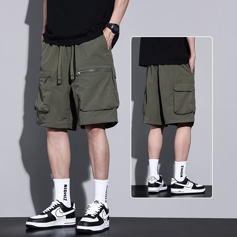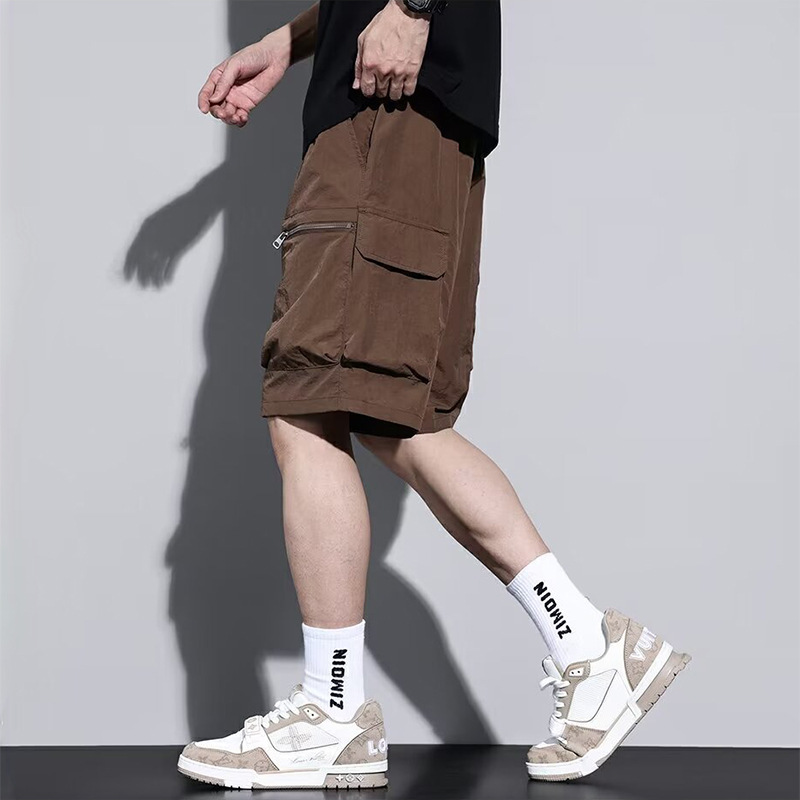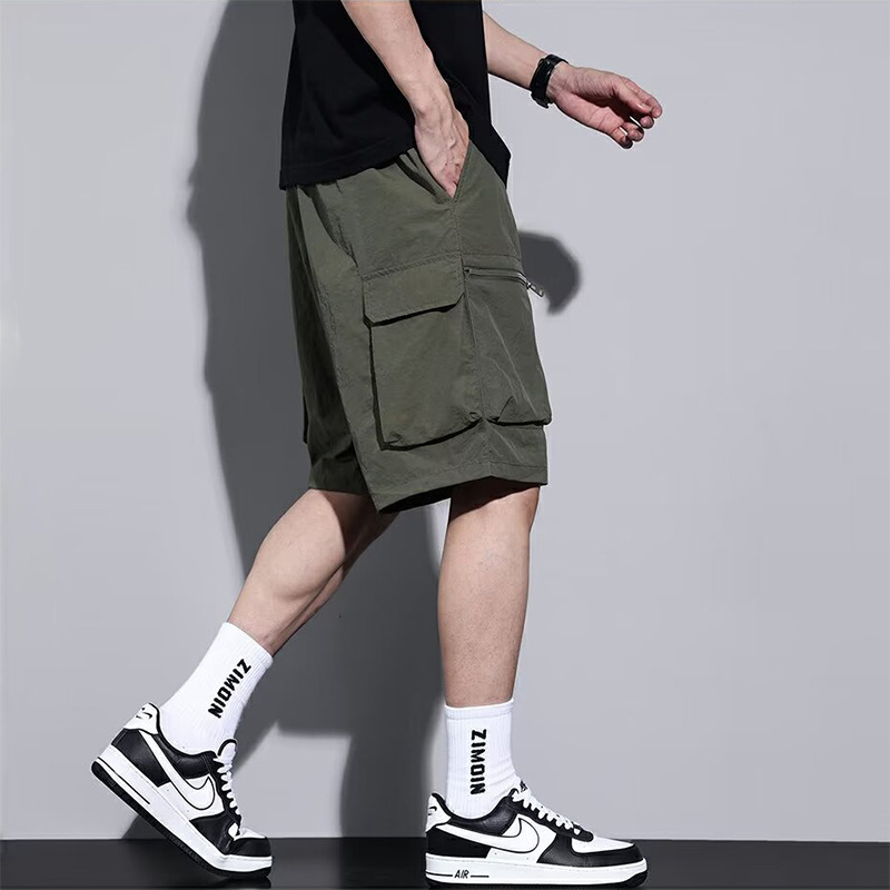 工装短裤男夏季薄款宽松休闲五分篮球裤拉链口袋男装运动裤子冰丝