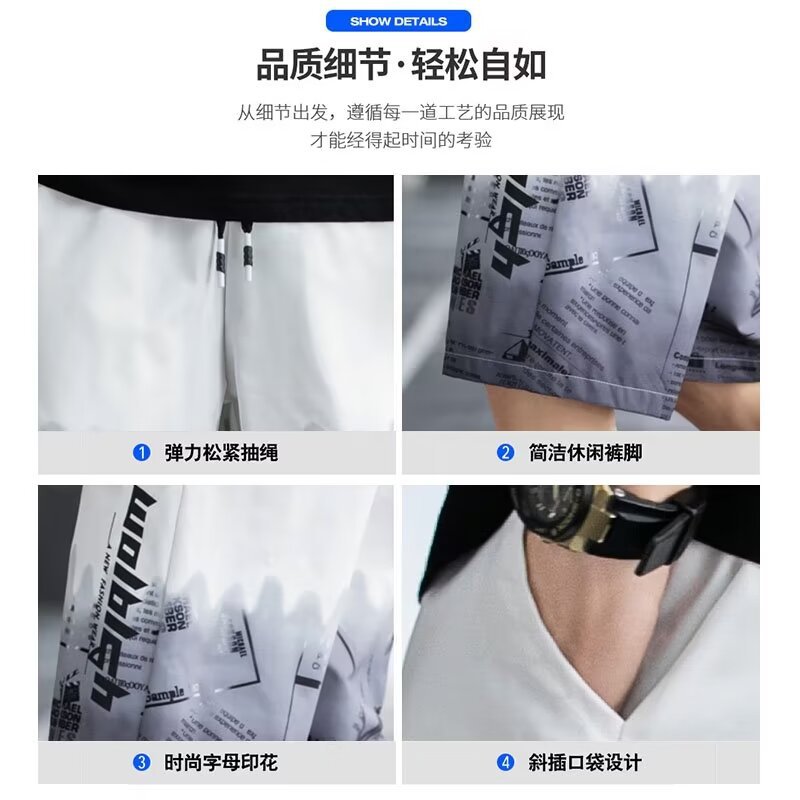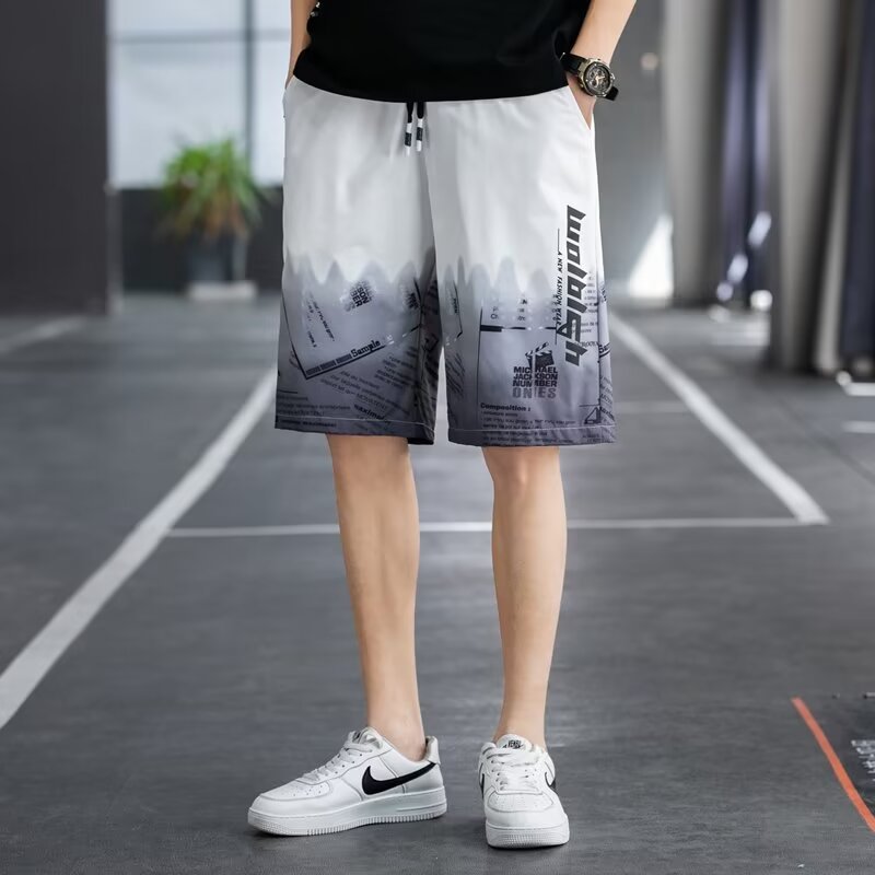 休闲短裤男夏季新款宽松五分裤男士青少年薄款扎染沙滩运动中裤男