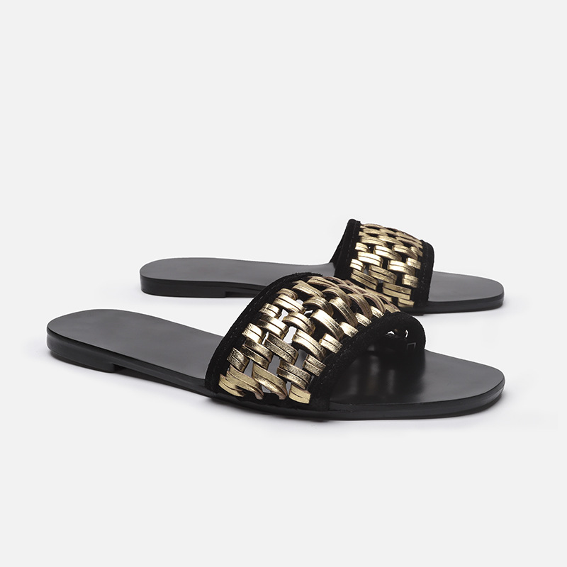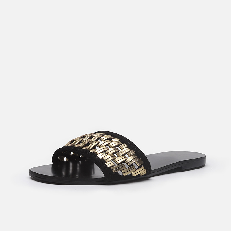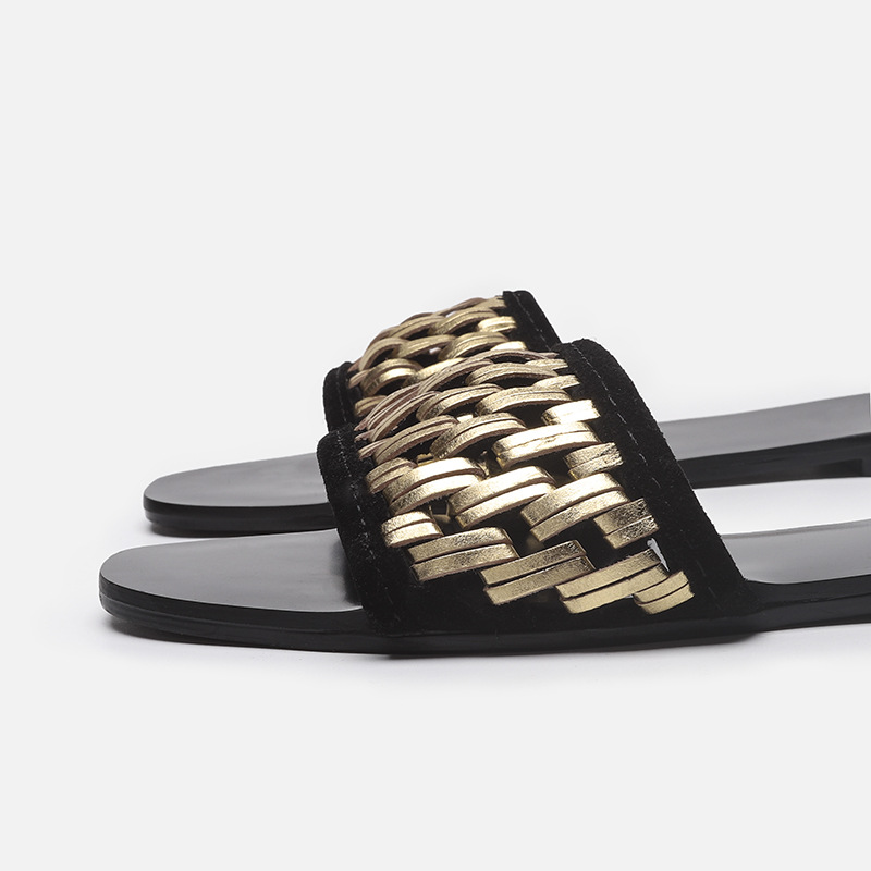 外贸大码鞋夏季一字型编织镂空平跟平底鞋外穿休闲百搭凉拖鞋