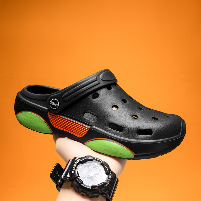 夏季新款椰子洞洞鞋男士外穿包头拖凉鞋透气沙滩鞋子男