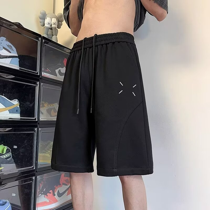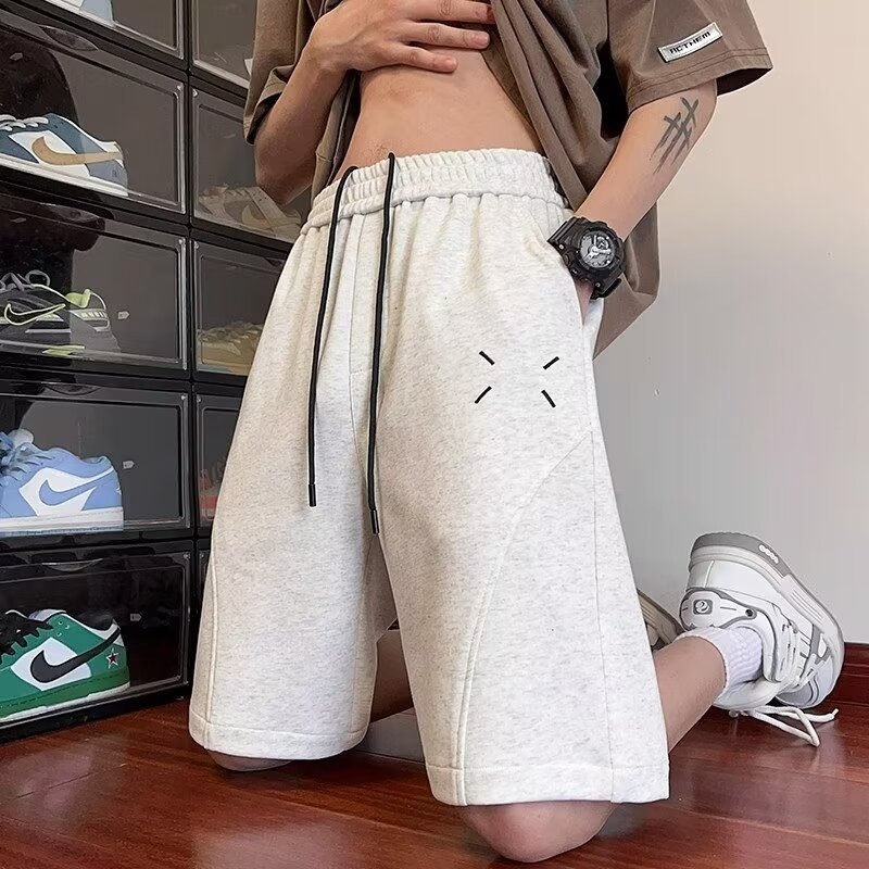 青少年重磅刺绣短裤男夏季宽松拼接运动中裤潮牌美式休闲五分裤子