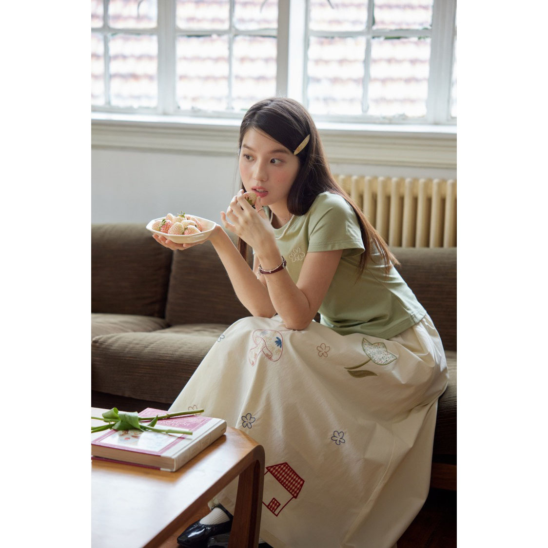 Nov elist什一 法式文艺清新绣花半身裙长款2025新款白色a字伞裙