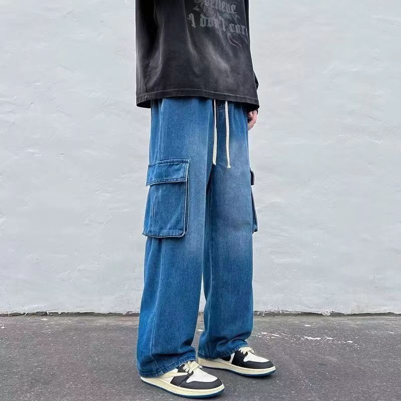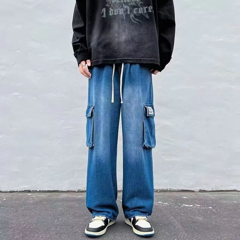 工装牛仔裤男春夏季薄款美式复古高街百搭直筒宽松休闲阔腿长裤潮