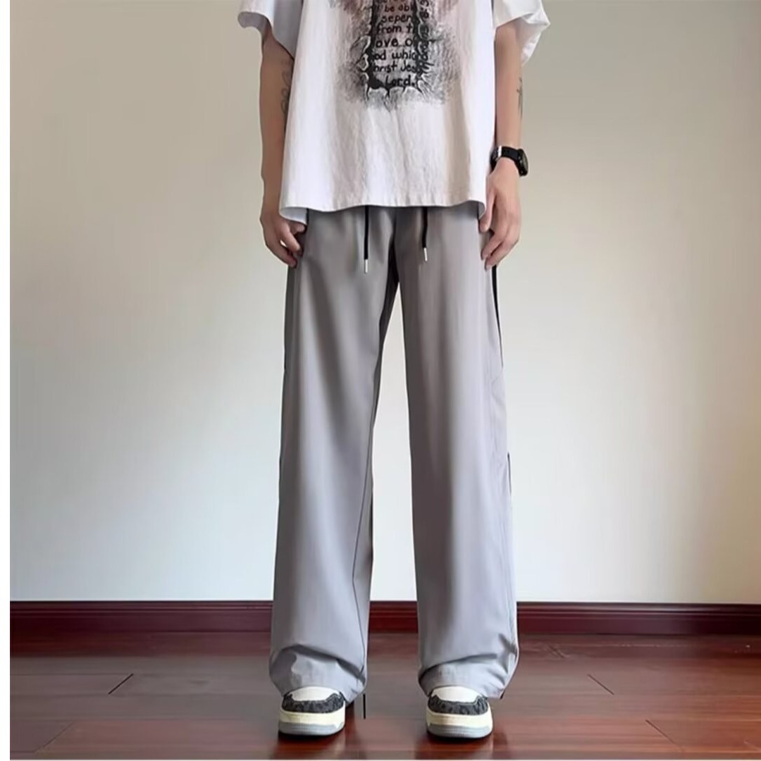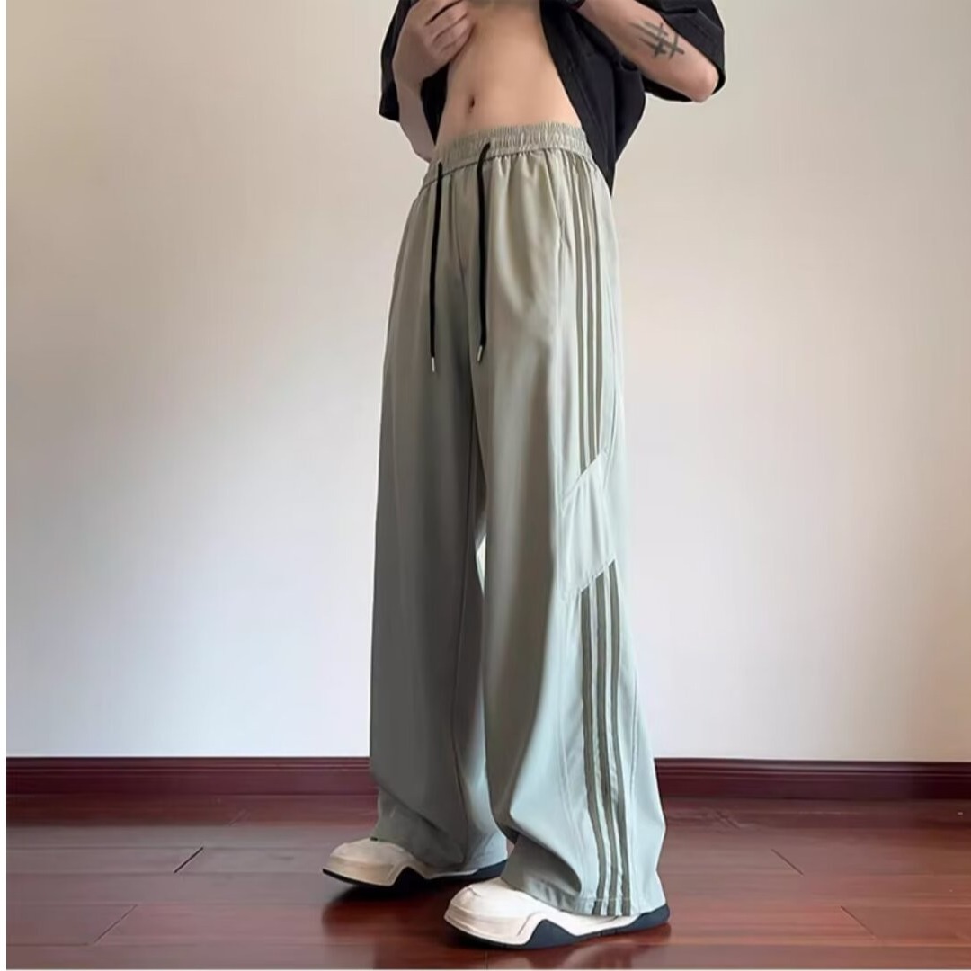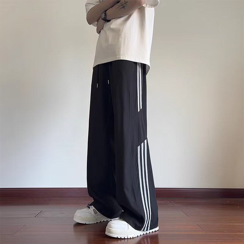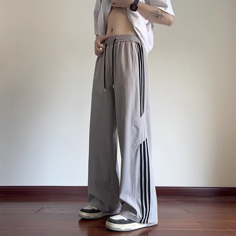 条纹速干休闲裤子男士夏季薄款宽松阔腿男生运动裤青少年直筒长裤
