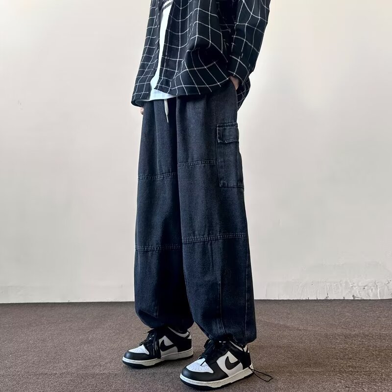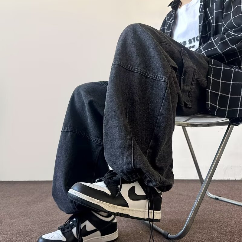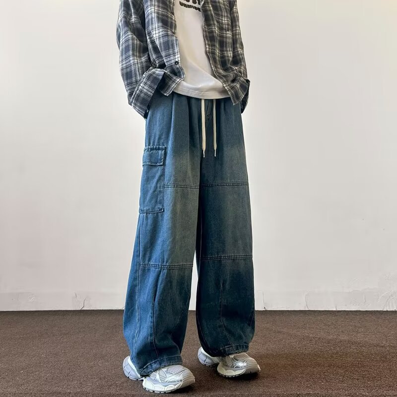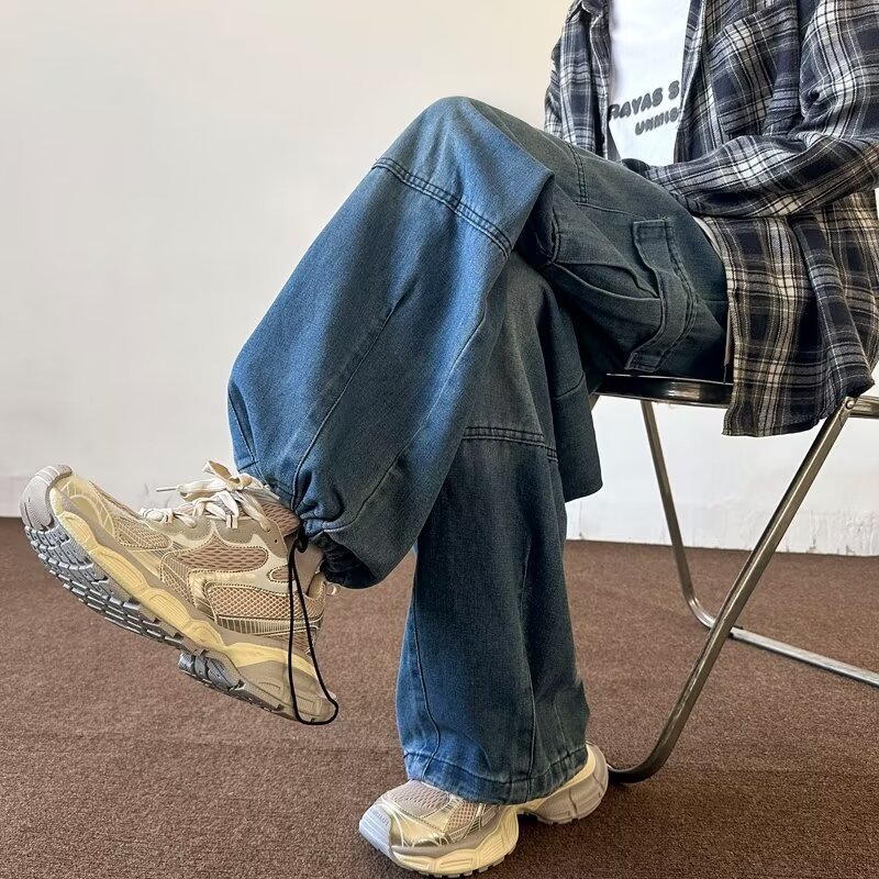 工装牛仔裤男夏季水洗做旧男生休闲裤子垂感复古宽松直筒阔腿长裤