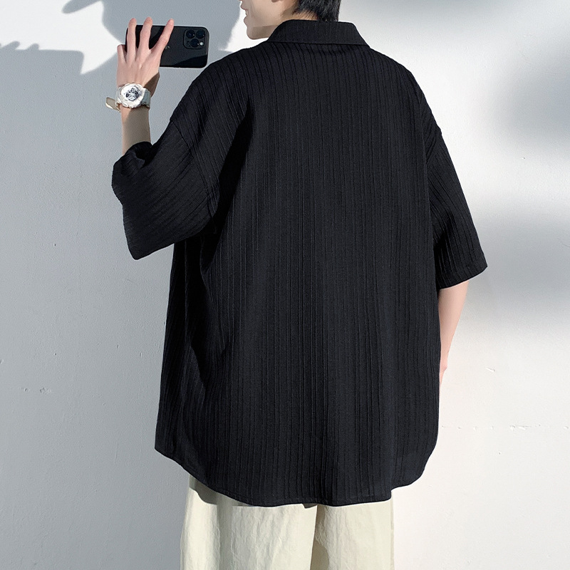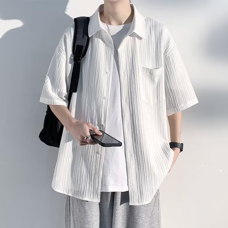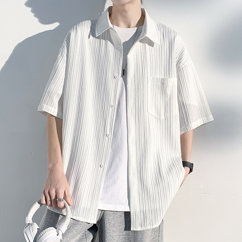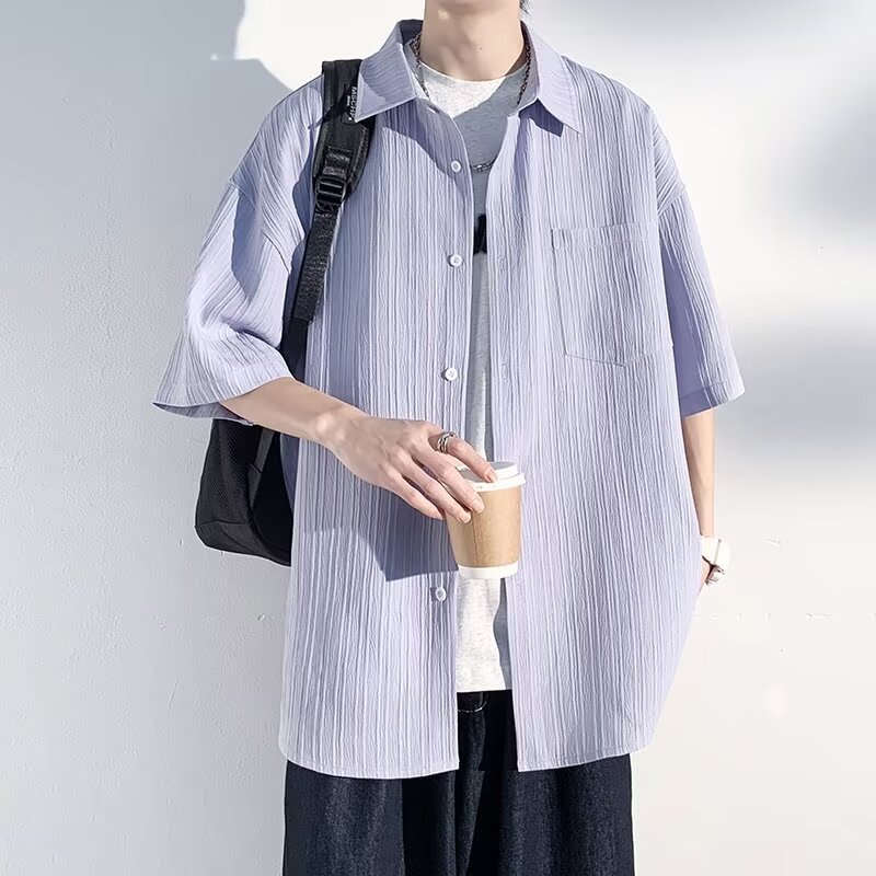 冰丝衬衫短袖男士夏季薄款休闲潮牌学生痞帅巴洛克衬衣服夏天外套