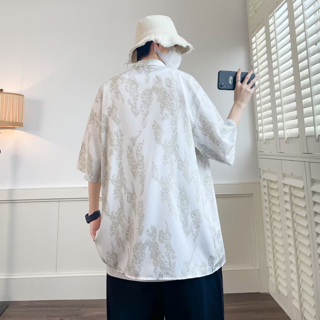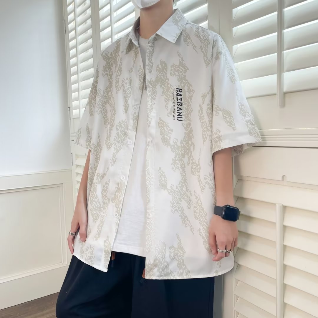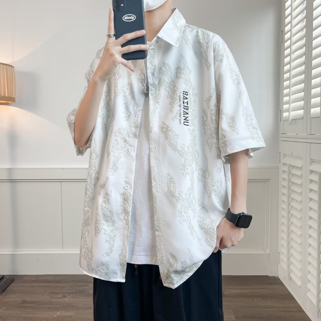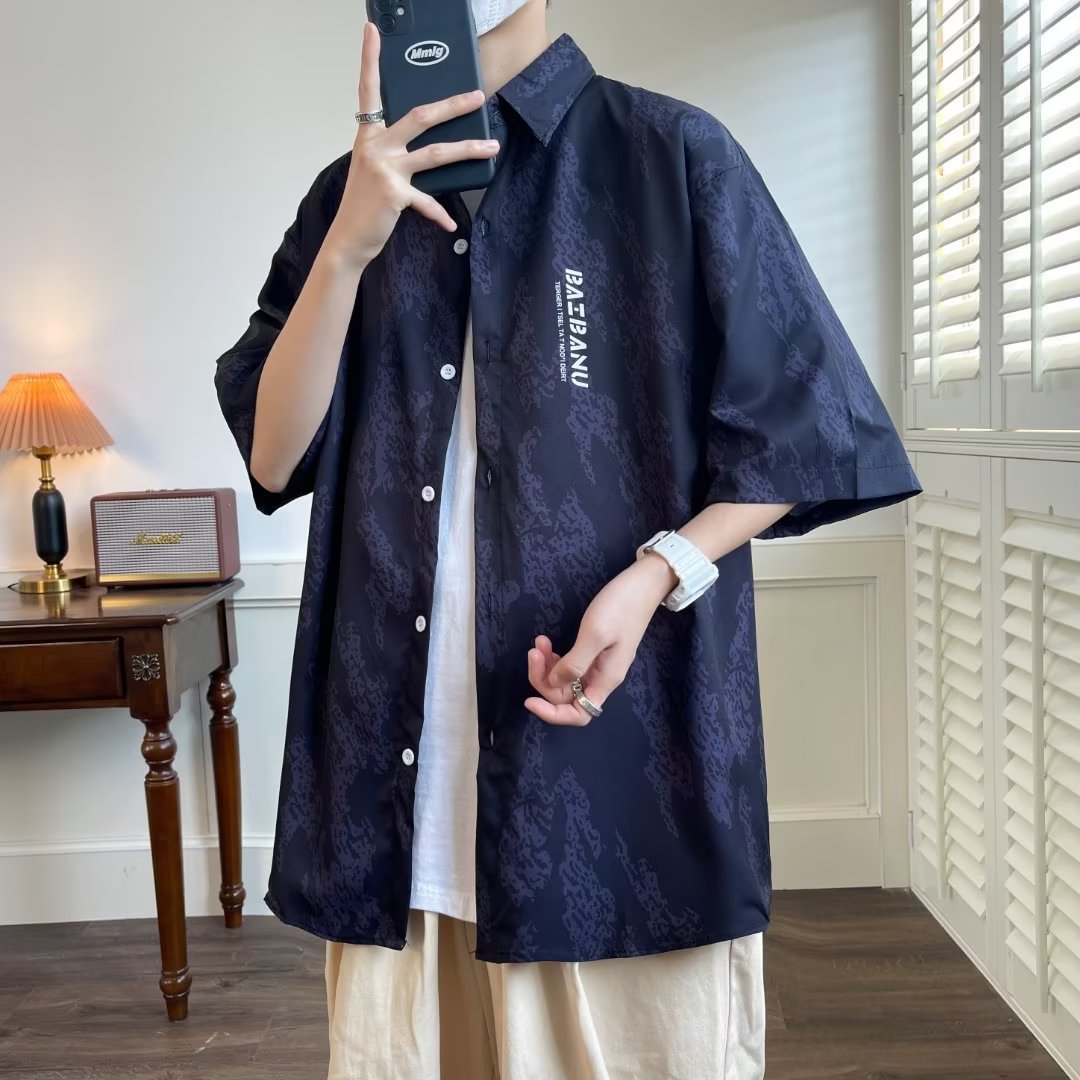 美式休闲短袖衬衫男夏季薄潮牌潮流宽松半袖衣服日系大码衬衣外套