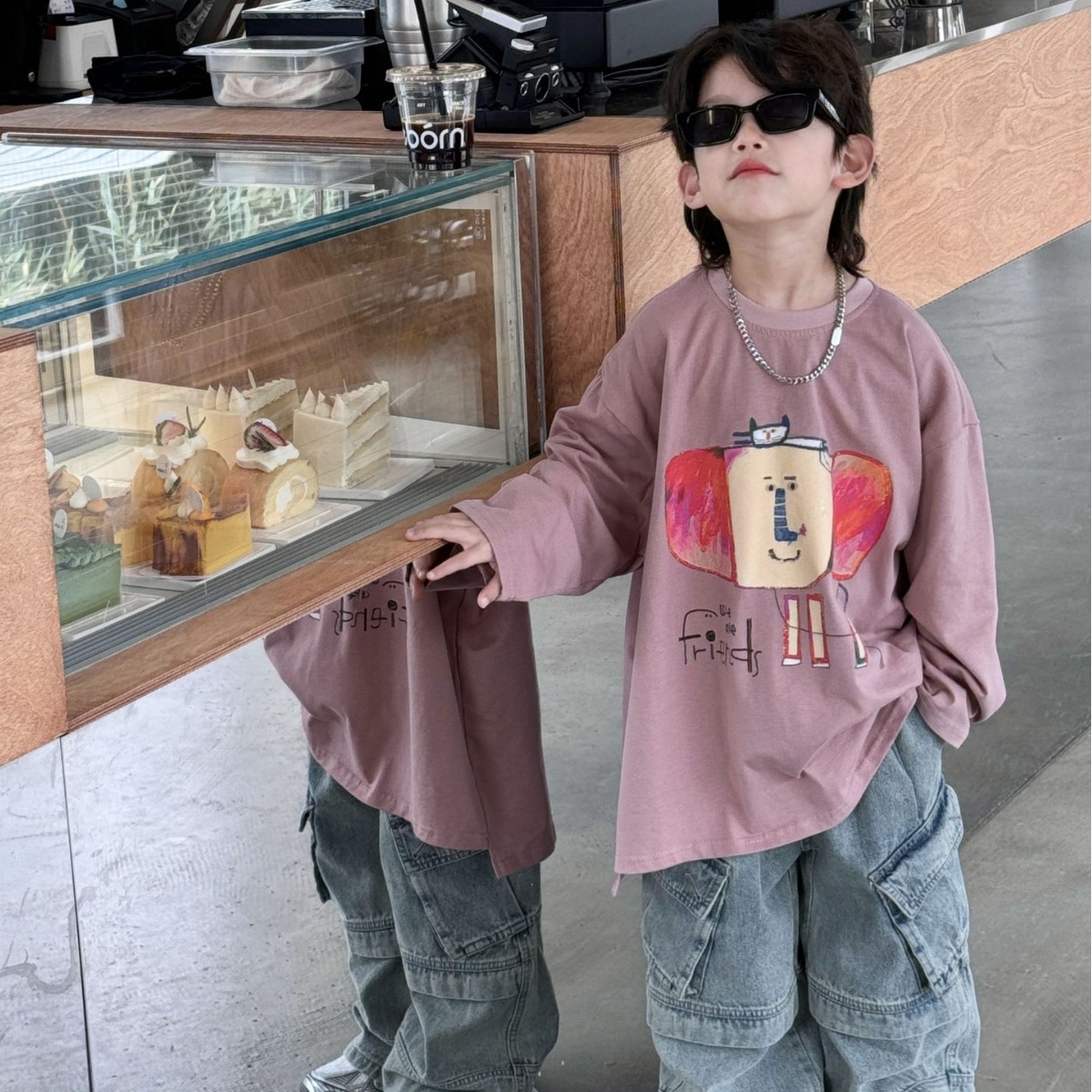泰如春季新款韩版男童宽松洋气卡通套头T恤儿童百搭上衣潮