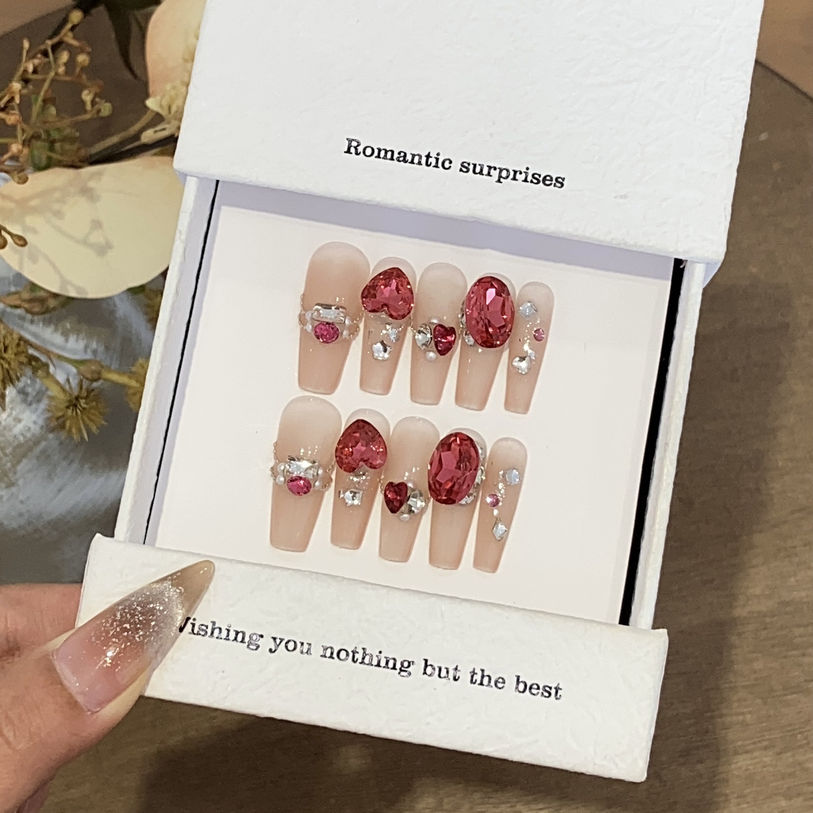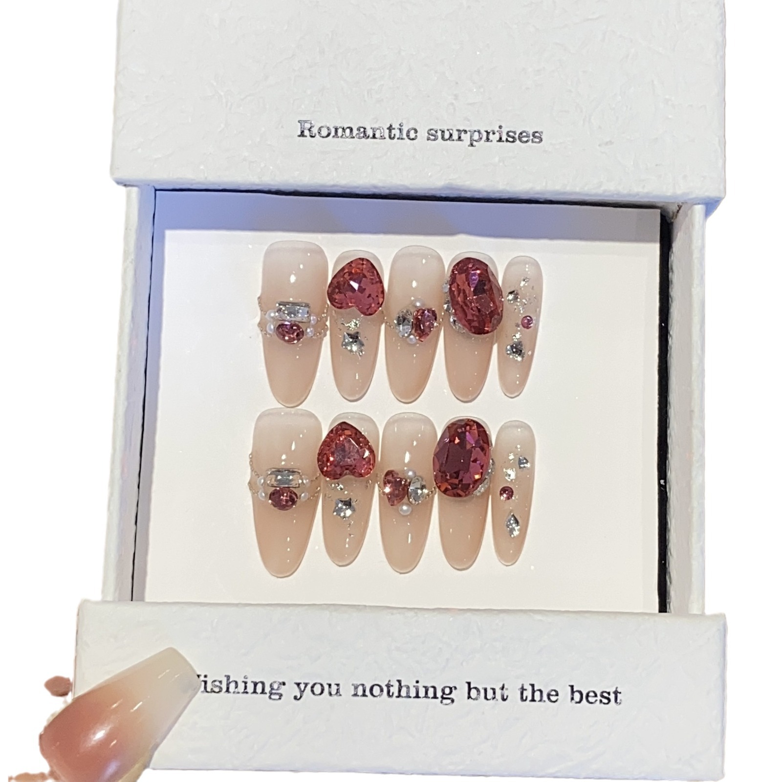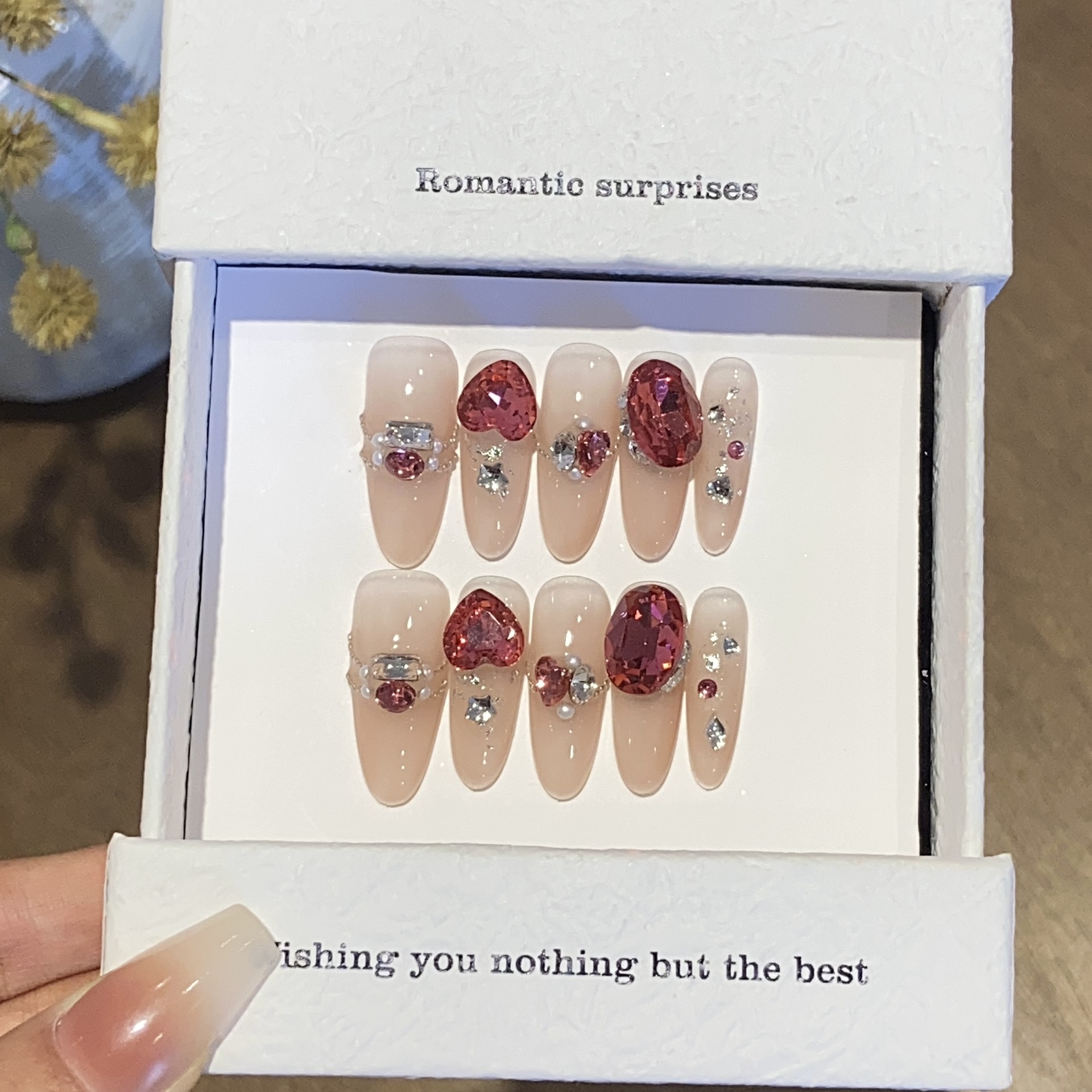 一只顾美甲 合金钢珠玫瑰酒红爱心椭圆钻恋爱循环日常贴片穿戴甲