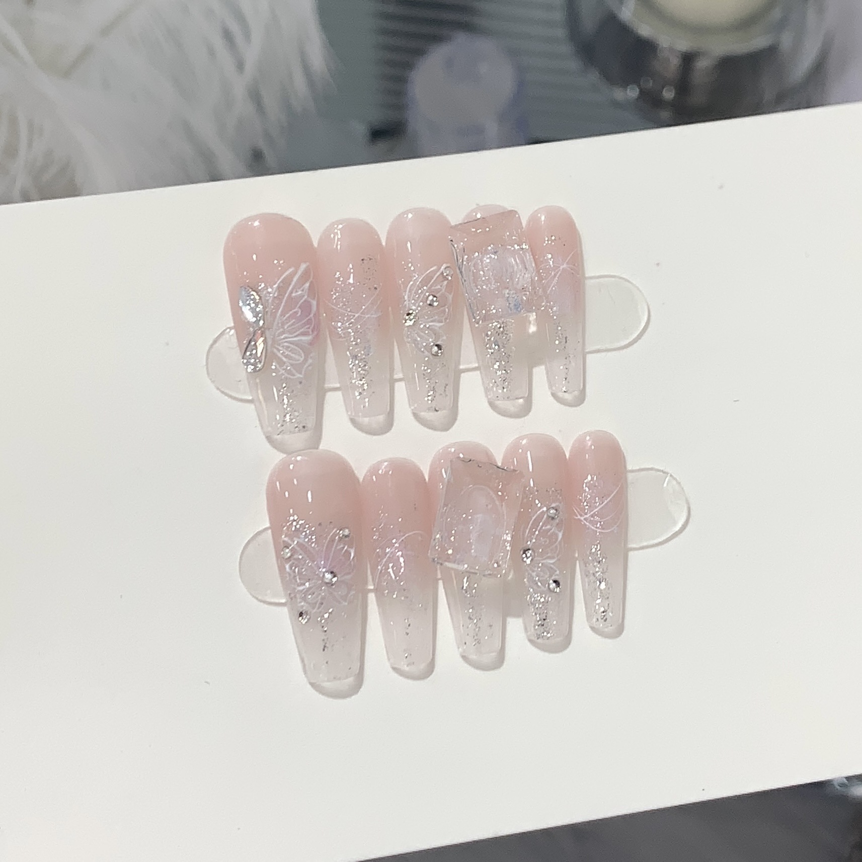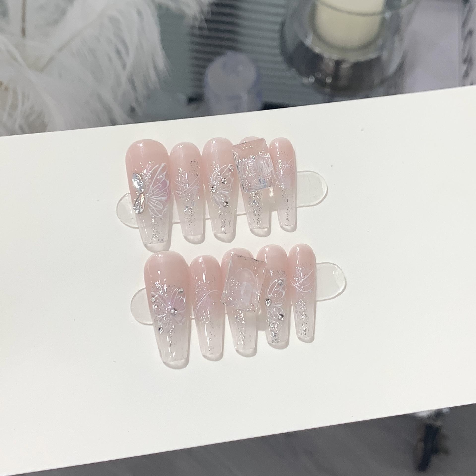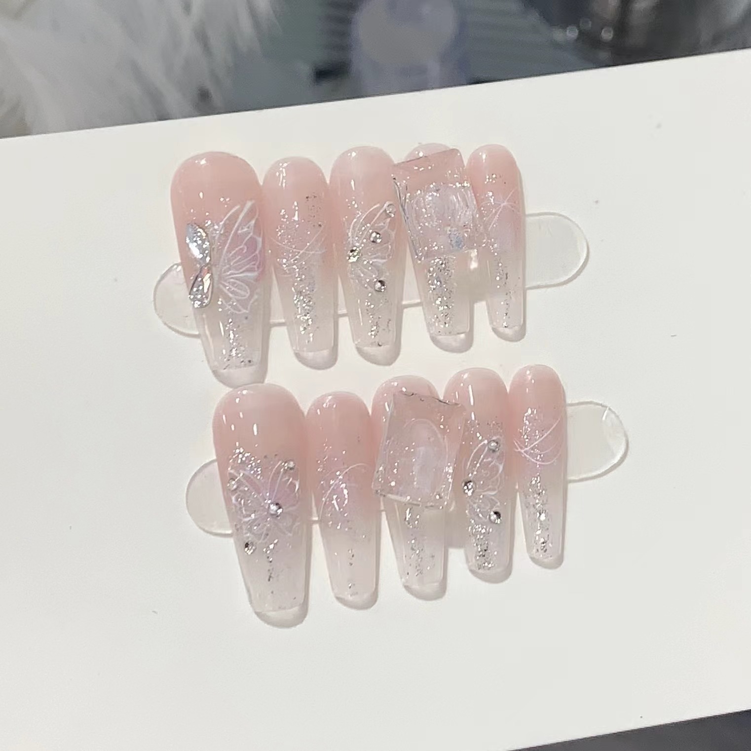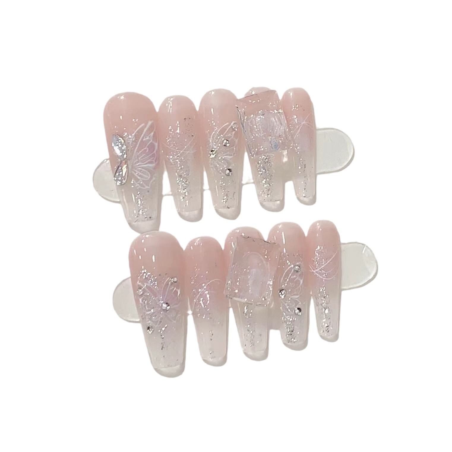 一只顾美甲厂【Y】【原创实拍】手工渐变纯欲裸粉透底钻冰透粉水