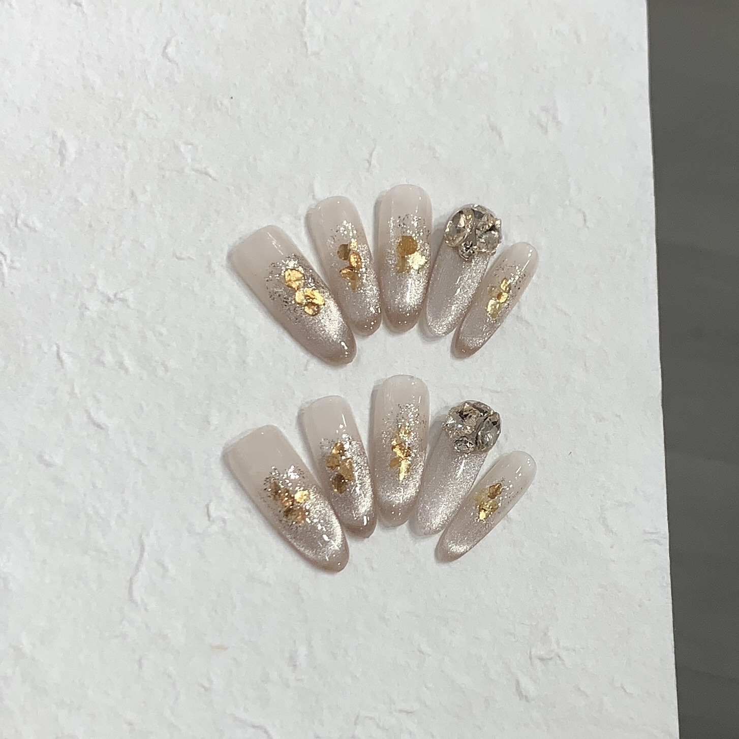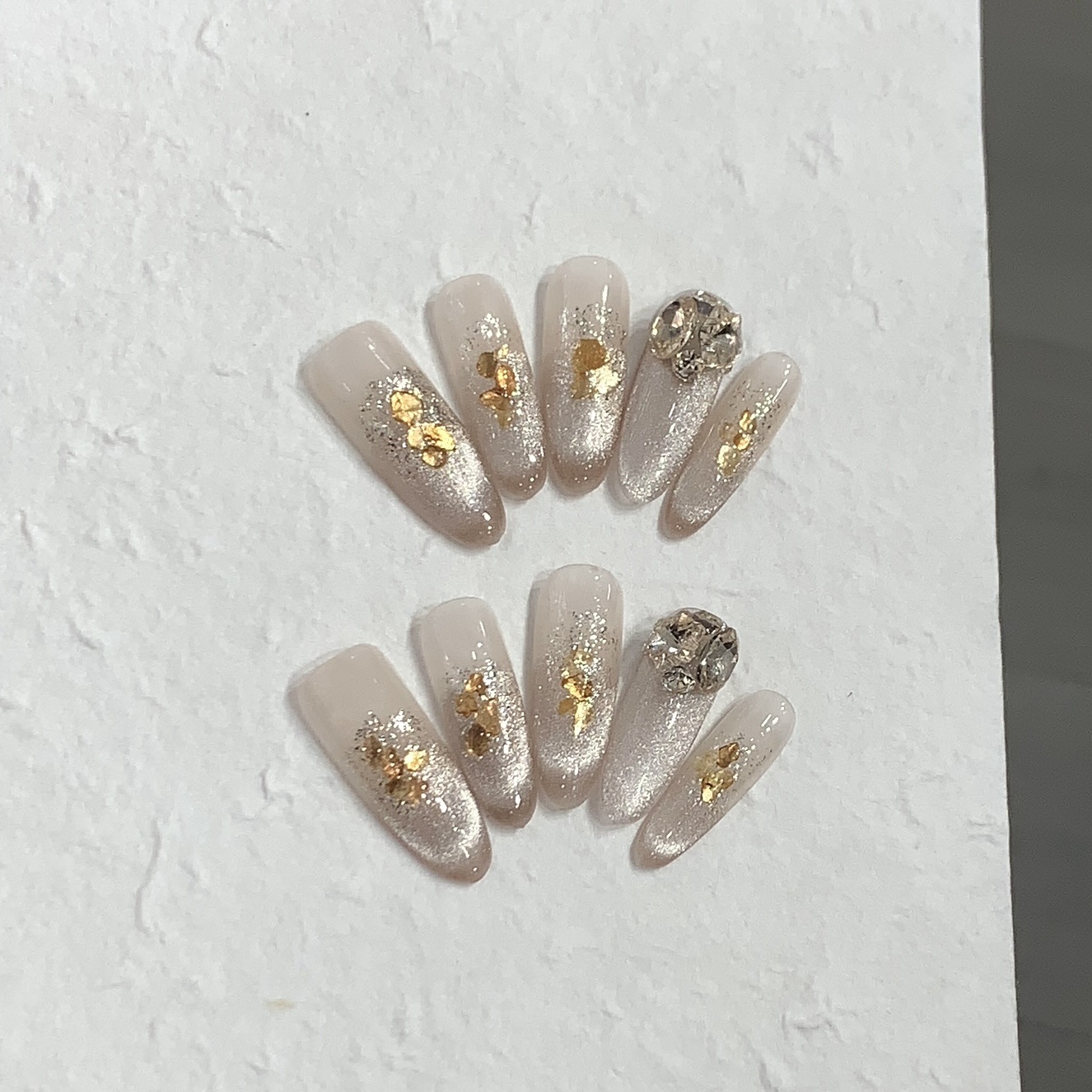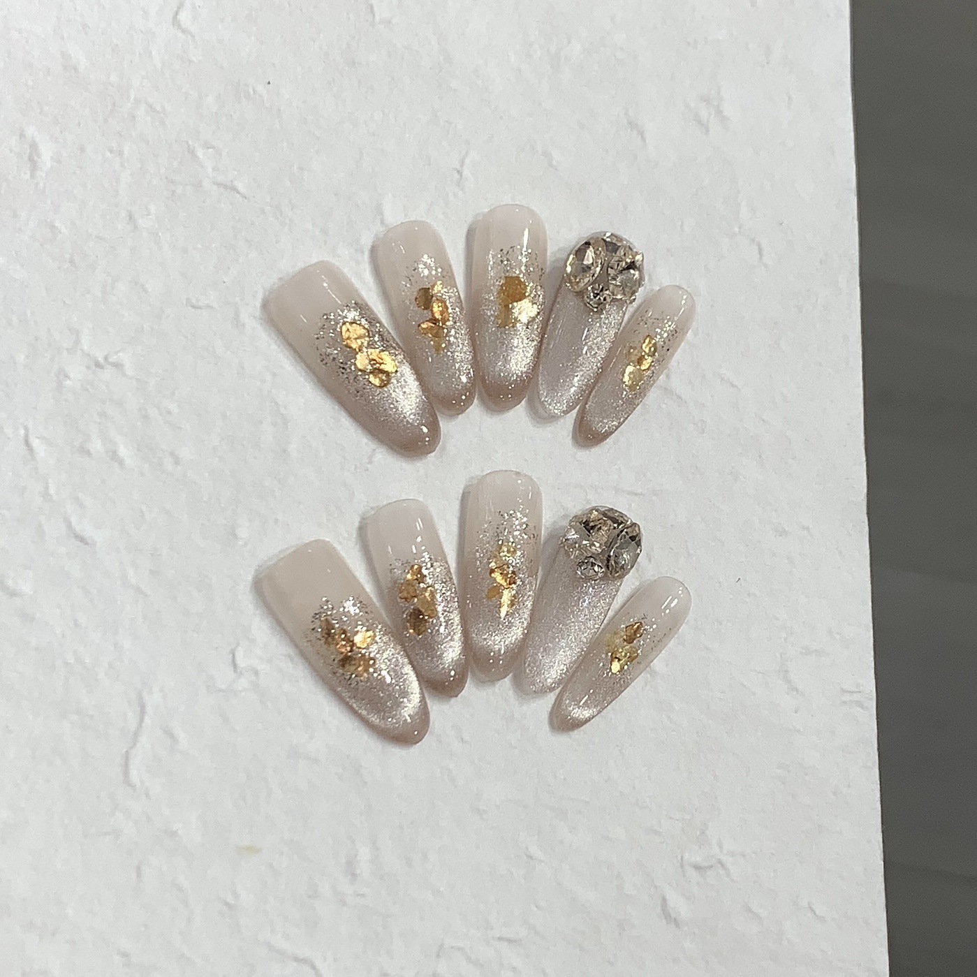 一只顾美甲厂【Y】【原创实拍】金箔云母片堆钻微笑法式猫眼可拆