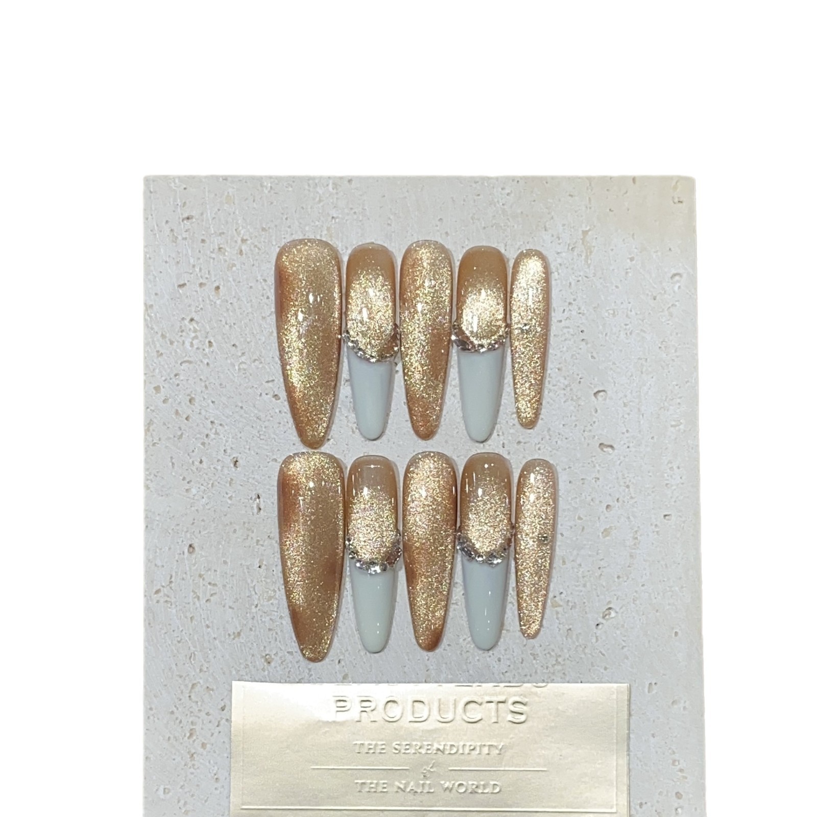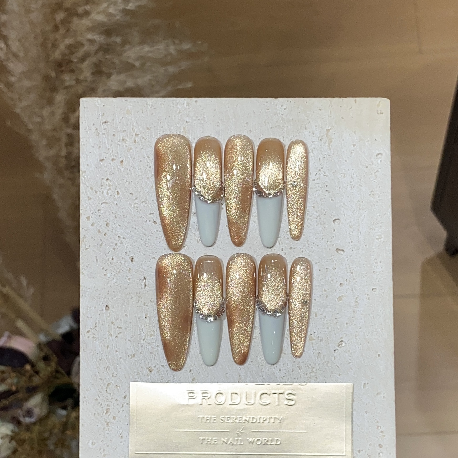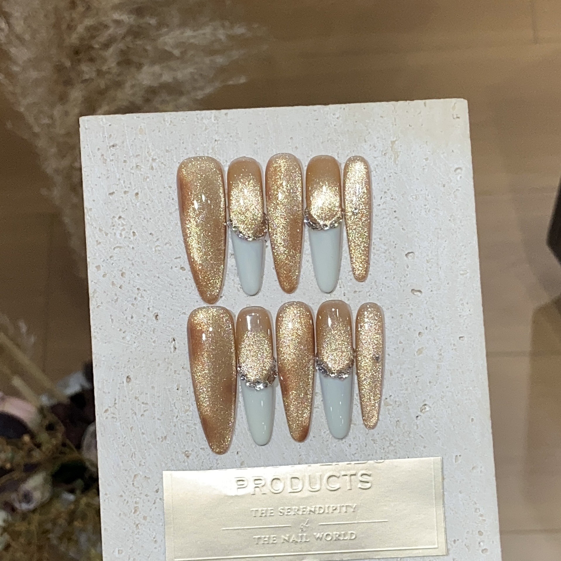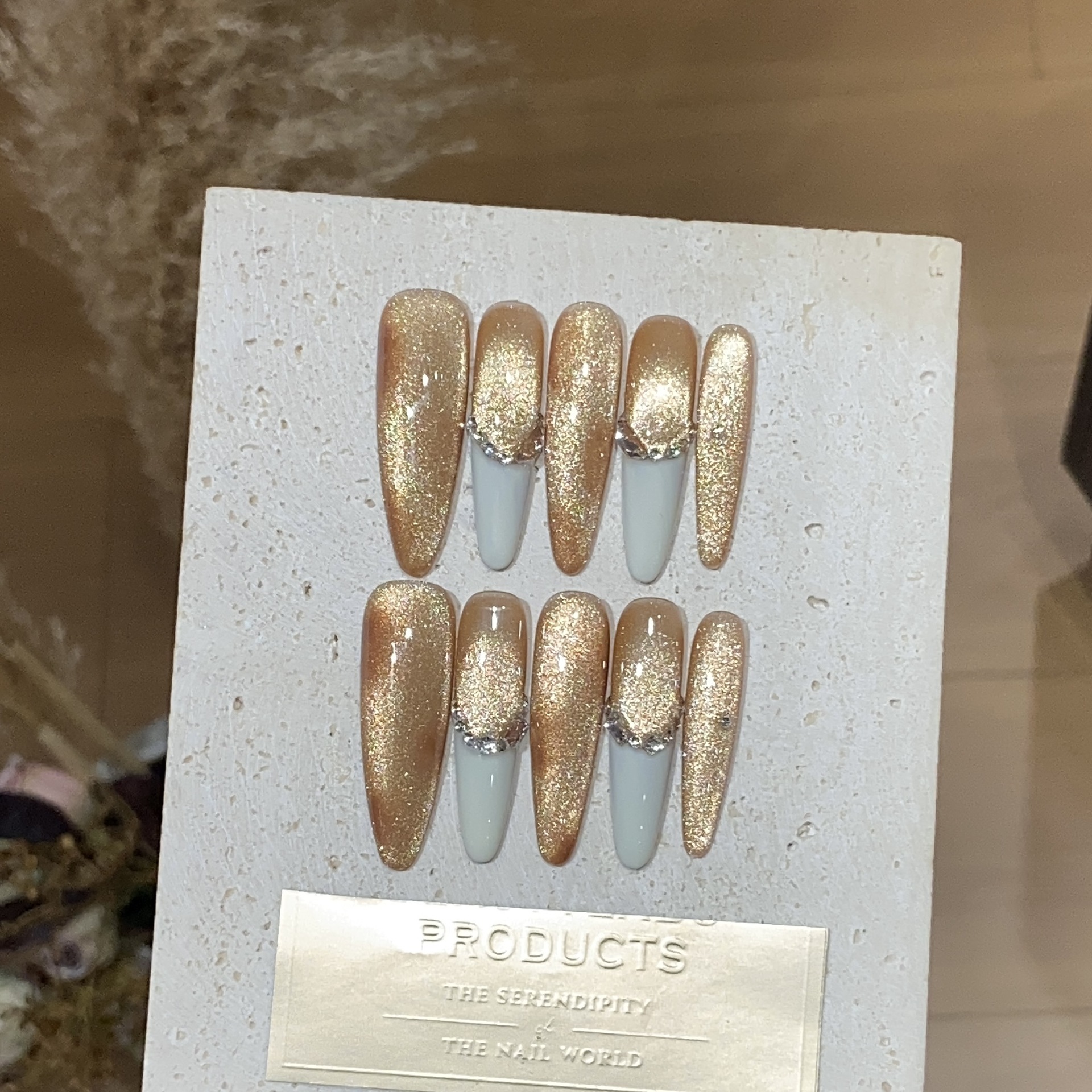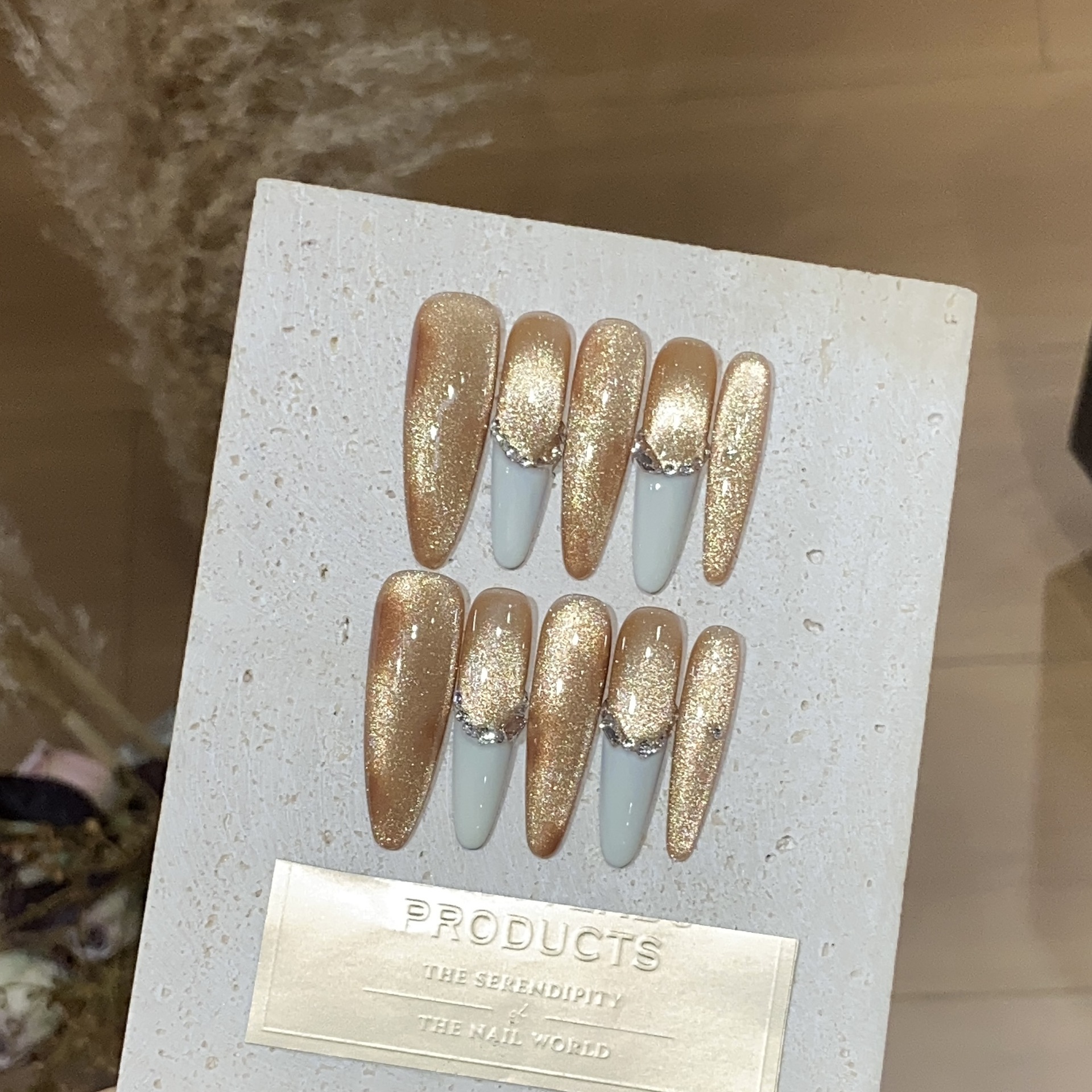 一只顾美甲 氛围感金猫眼蓝色法式小碎钻玛德琳贴片