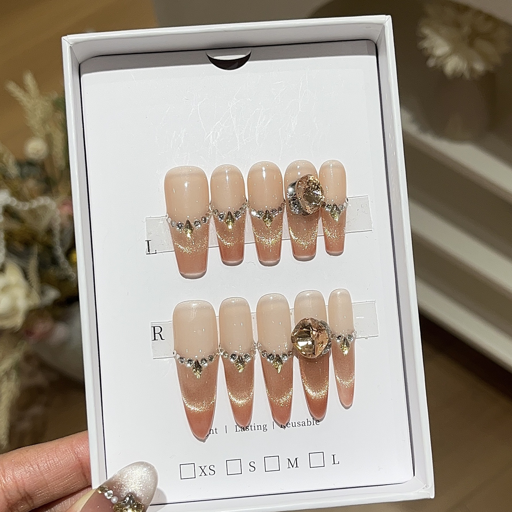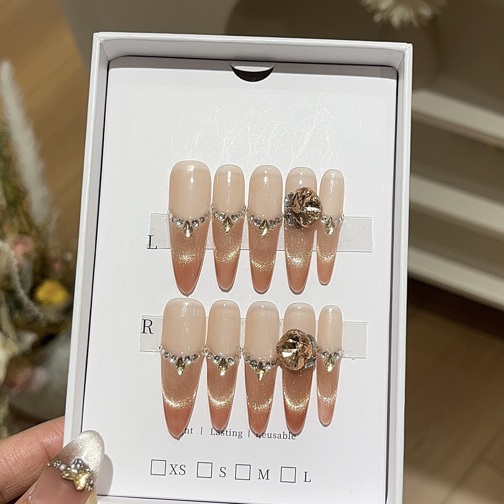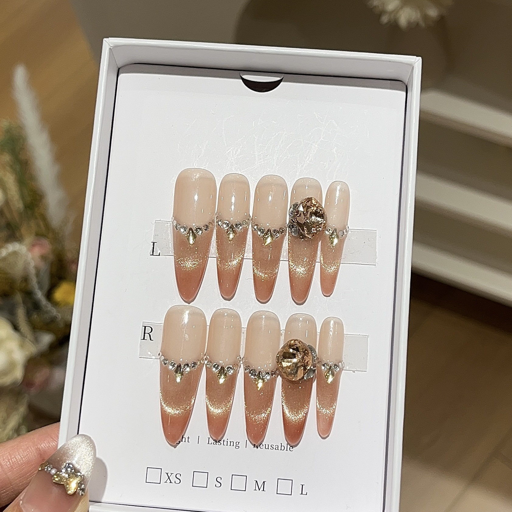 一只顾【冰栗穗】爆闪显白气质橘调微笑法式猫眼精品K9钻穿戴甲