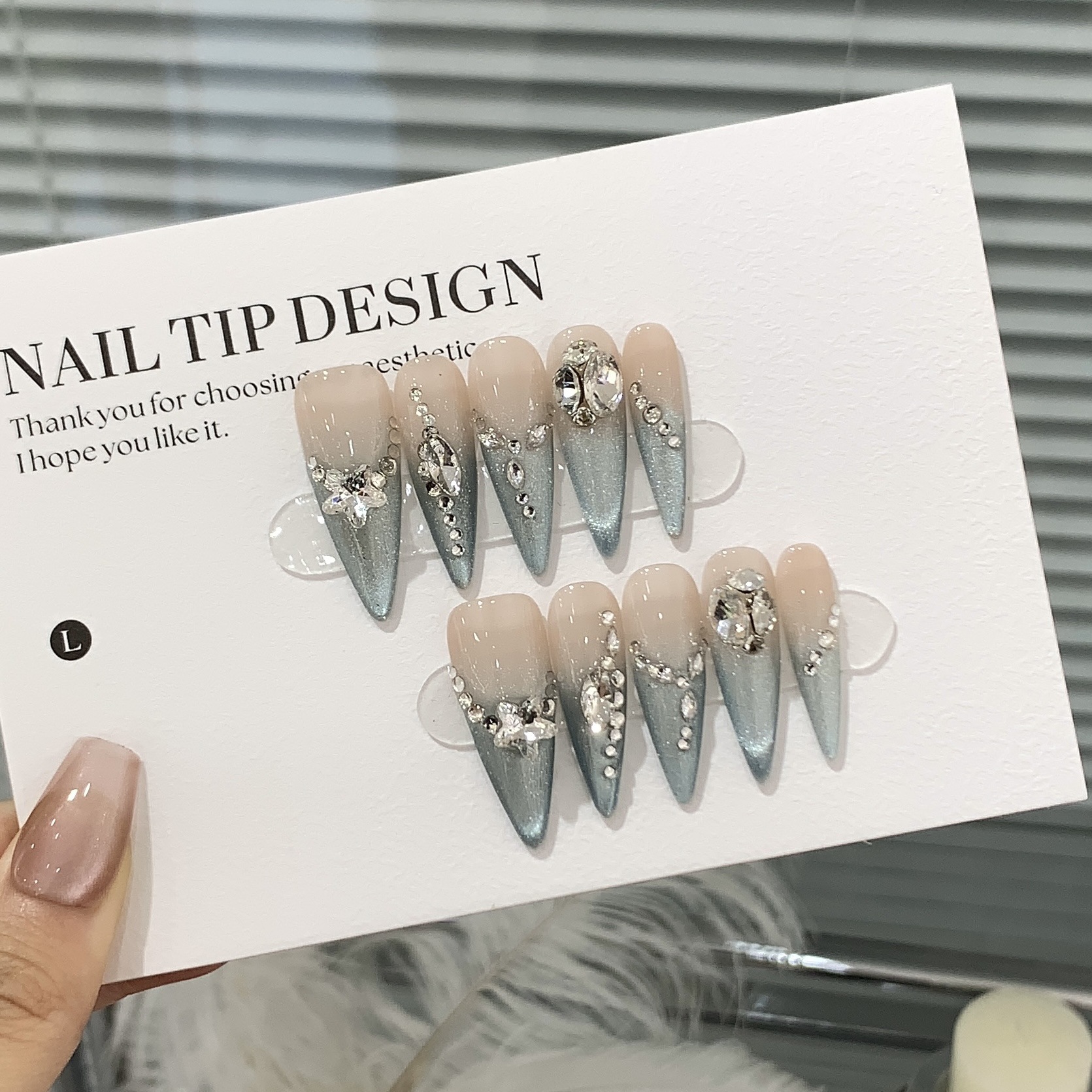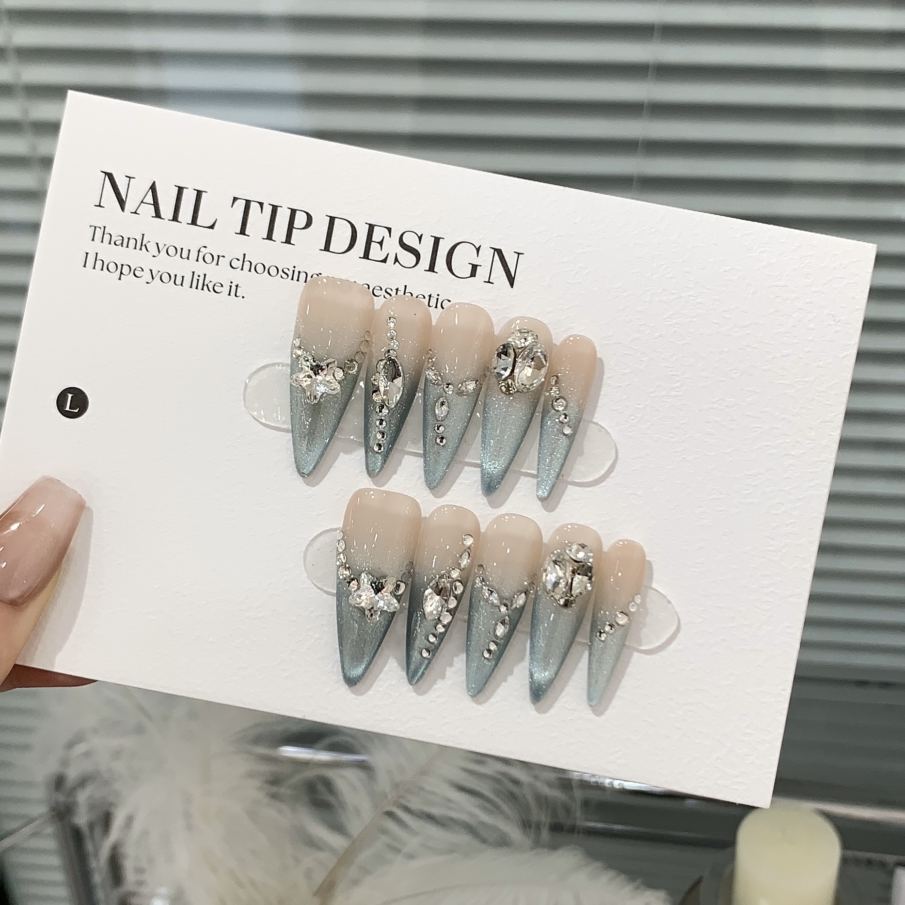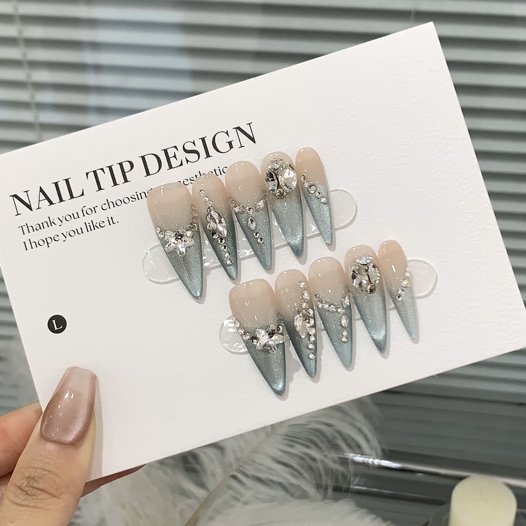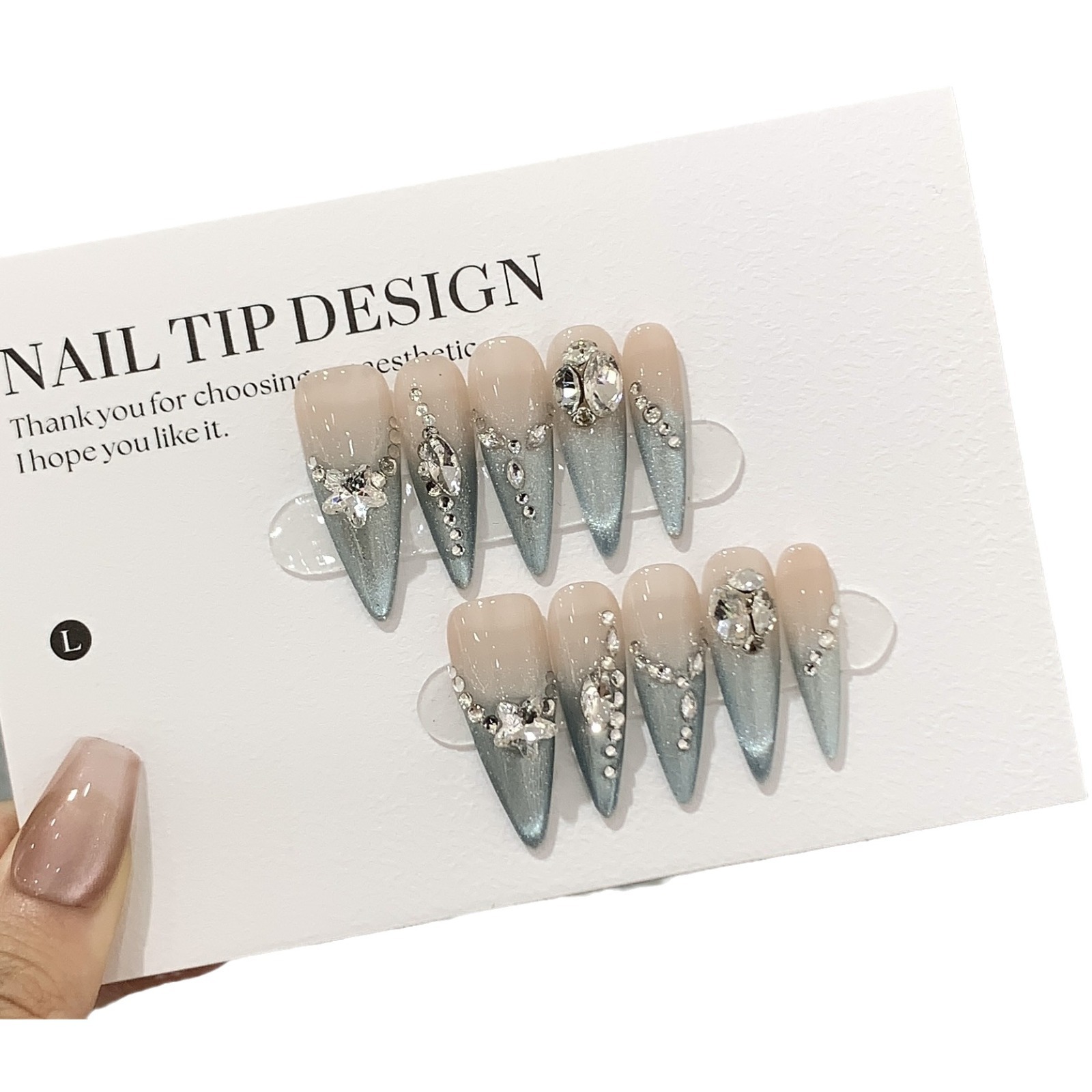 一只顾美甲 冰透渐变法式深海蓝猫眼堆堆椭圆小碎钻蓝眼泪穿戴甲