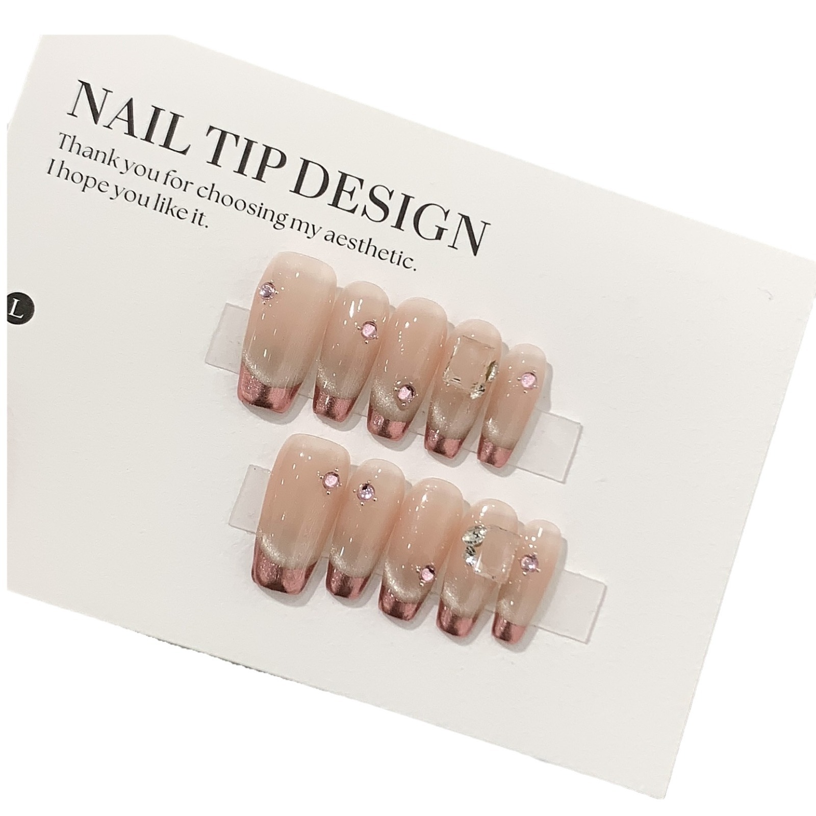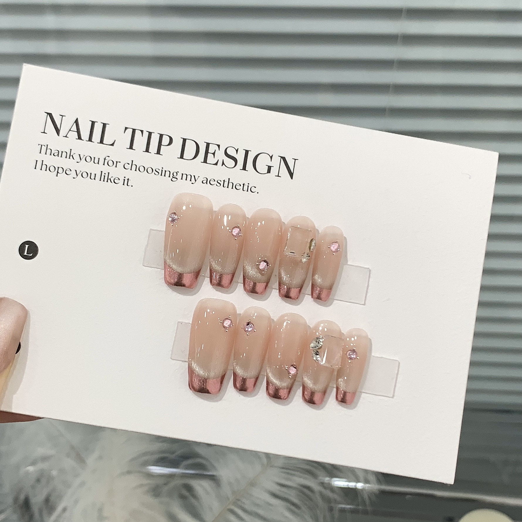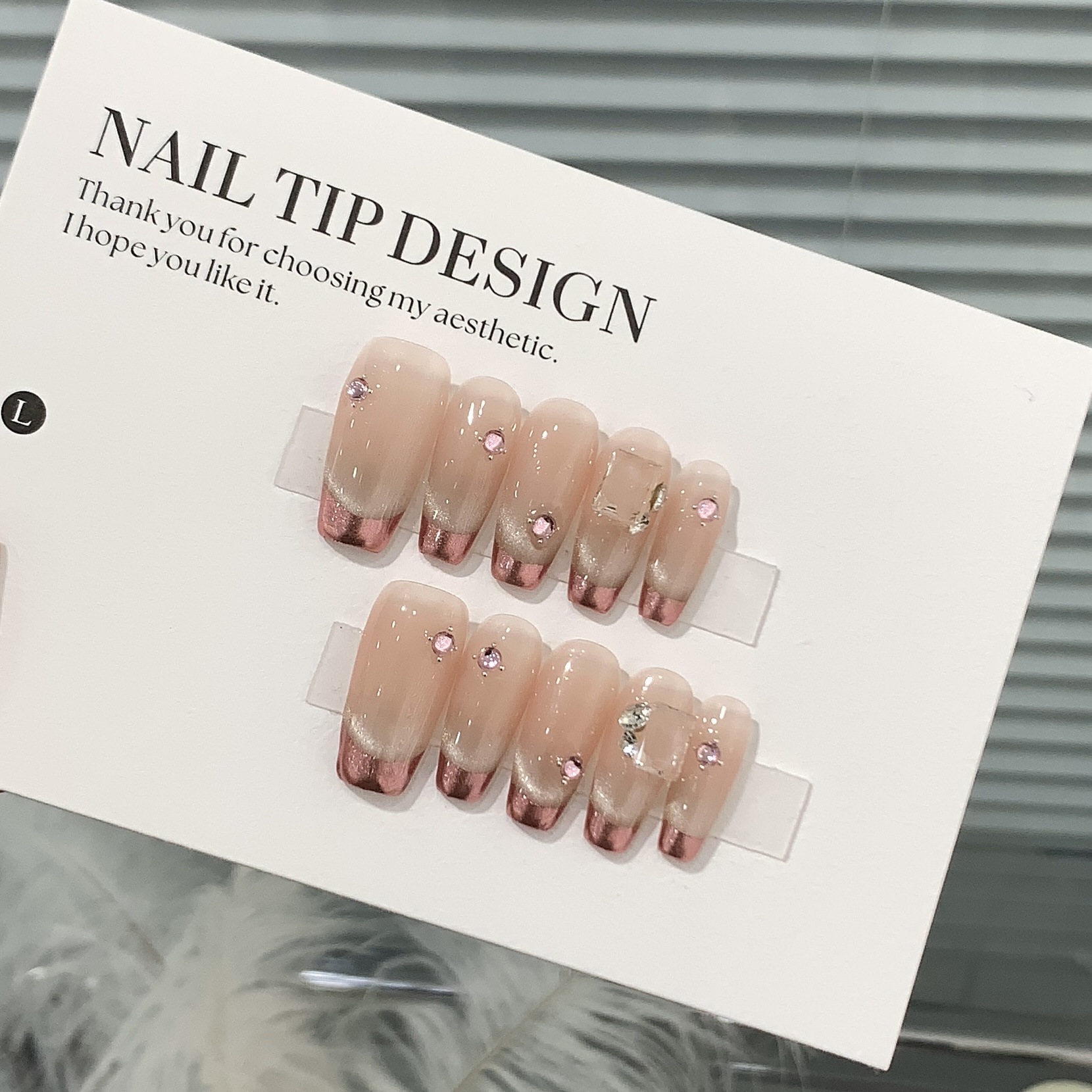 一只顾美甲 【Y】冰透法式微笑猫眼透底堆堆方钻冰晶银河贴片