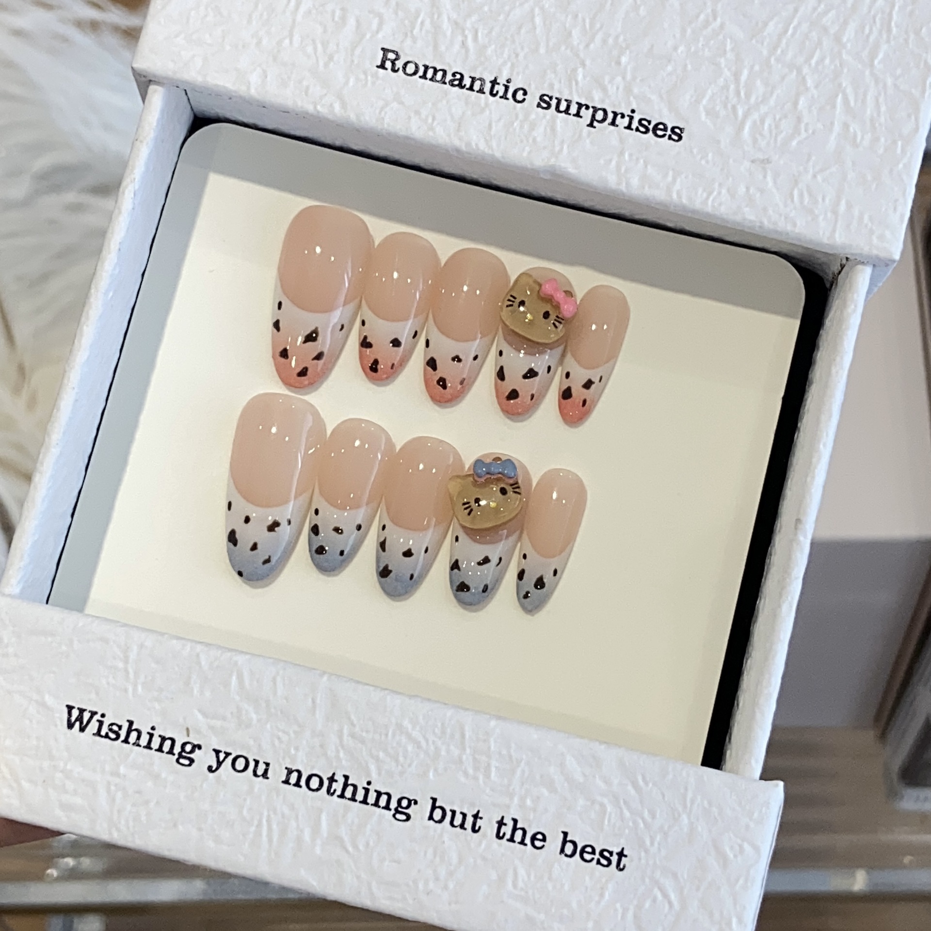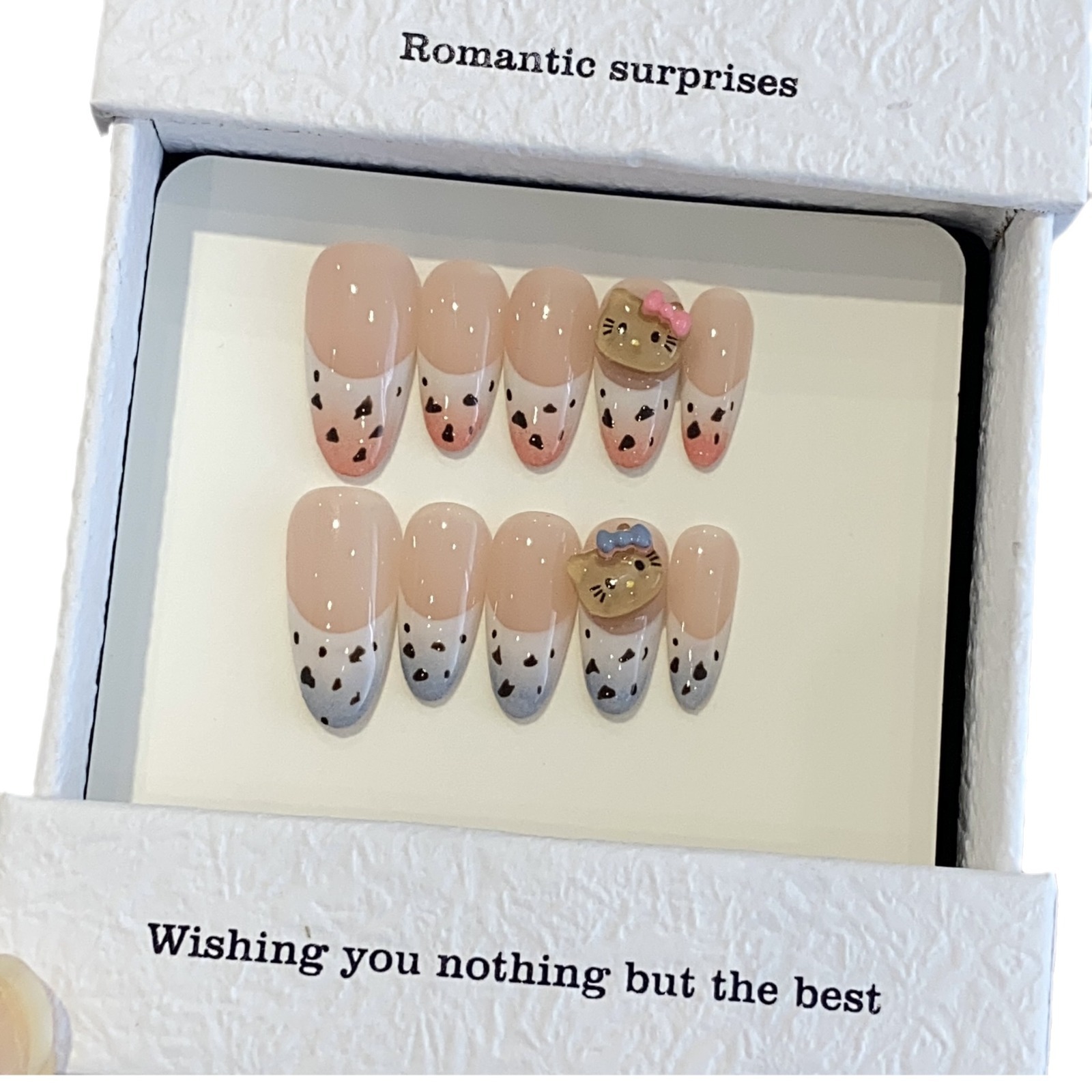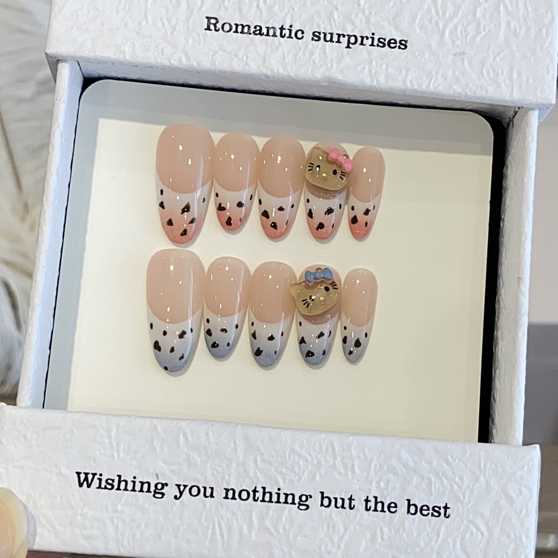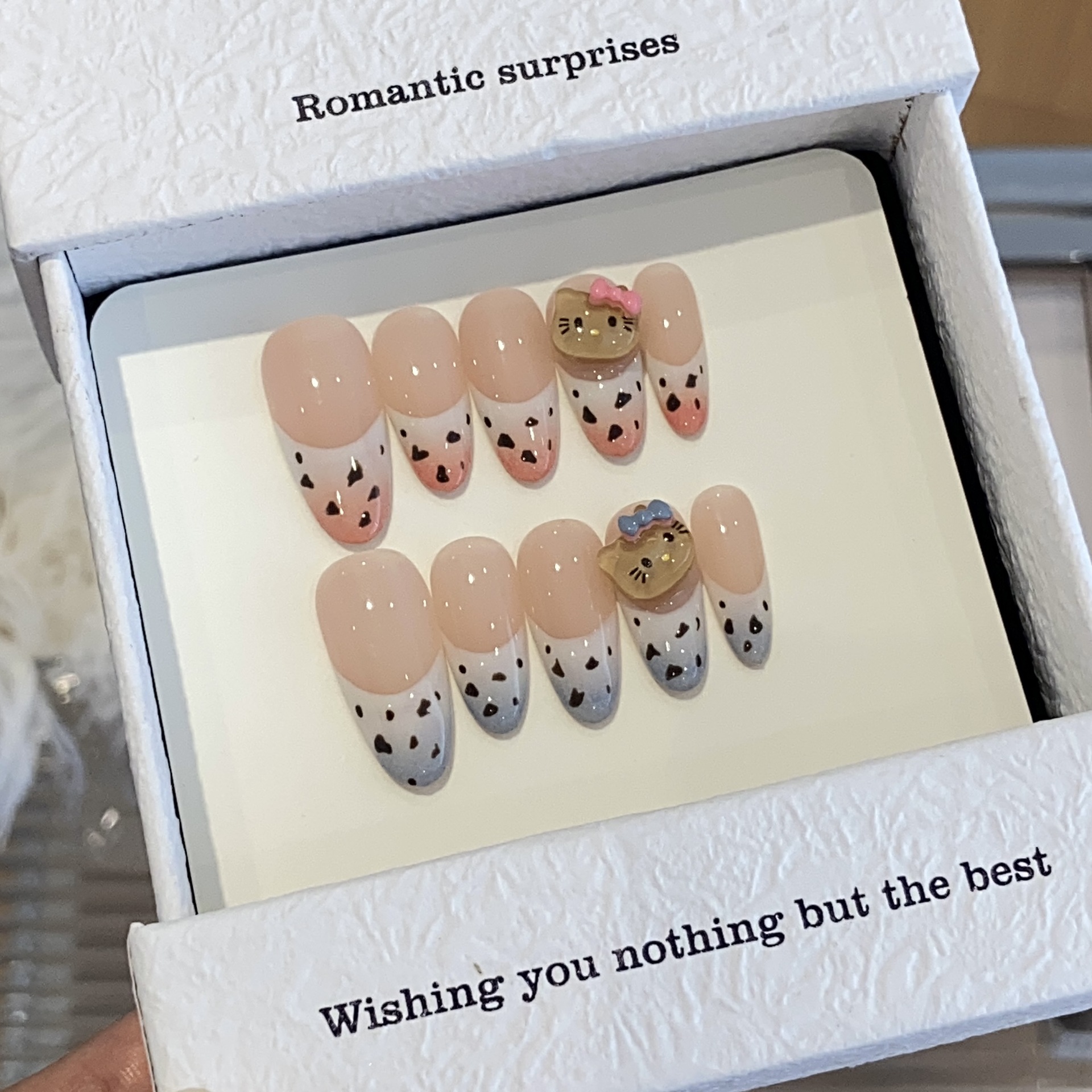 一只顾美甲 甜妹可爱纯白奶牛法式KittyAB款粉蓝Kitty贴片穿戴甲