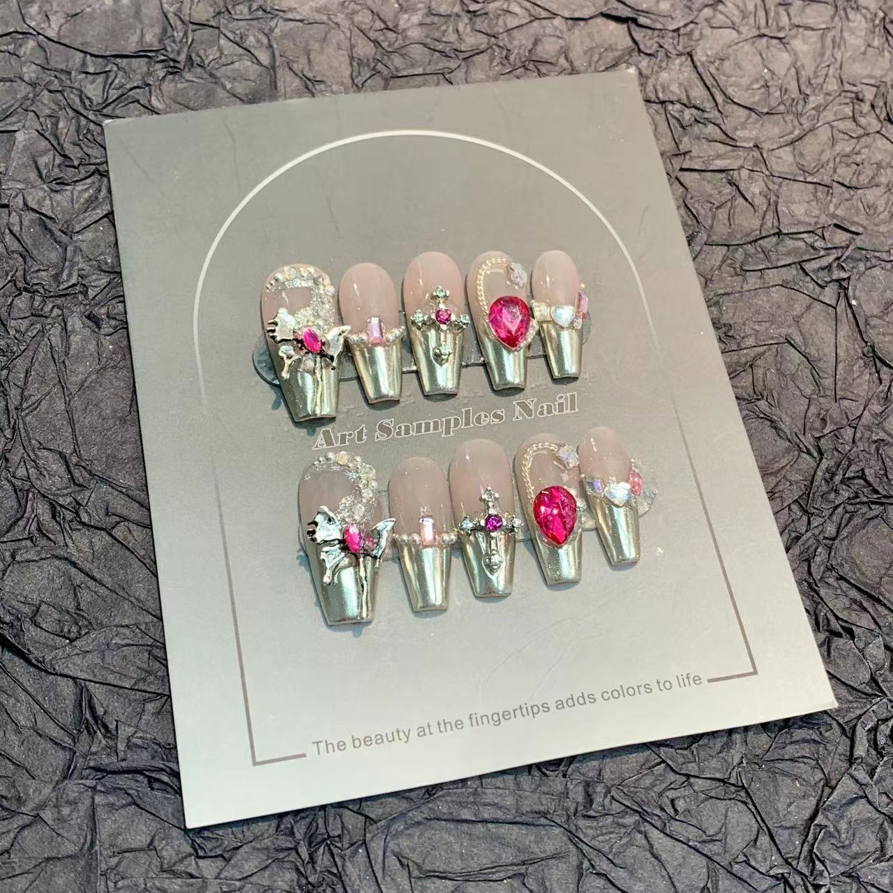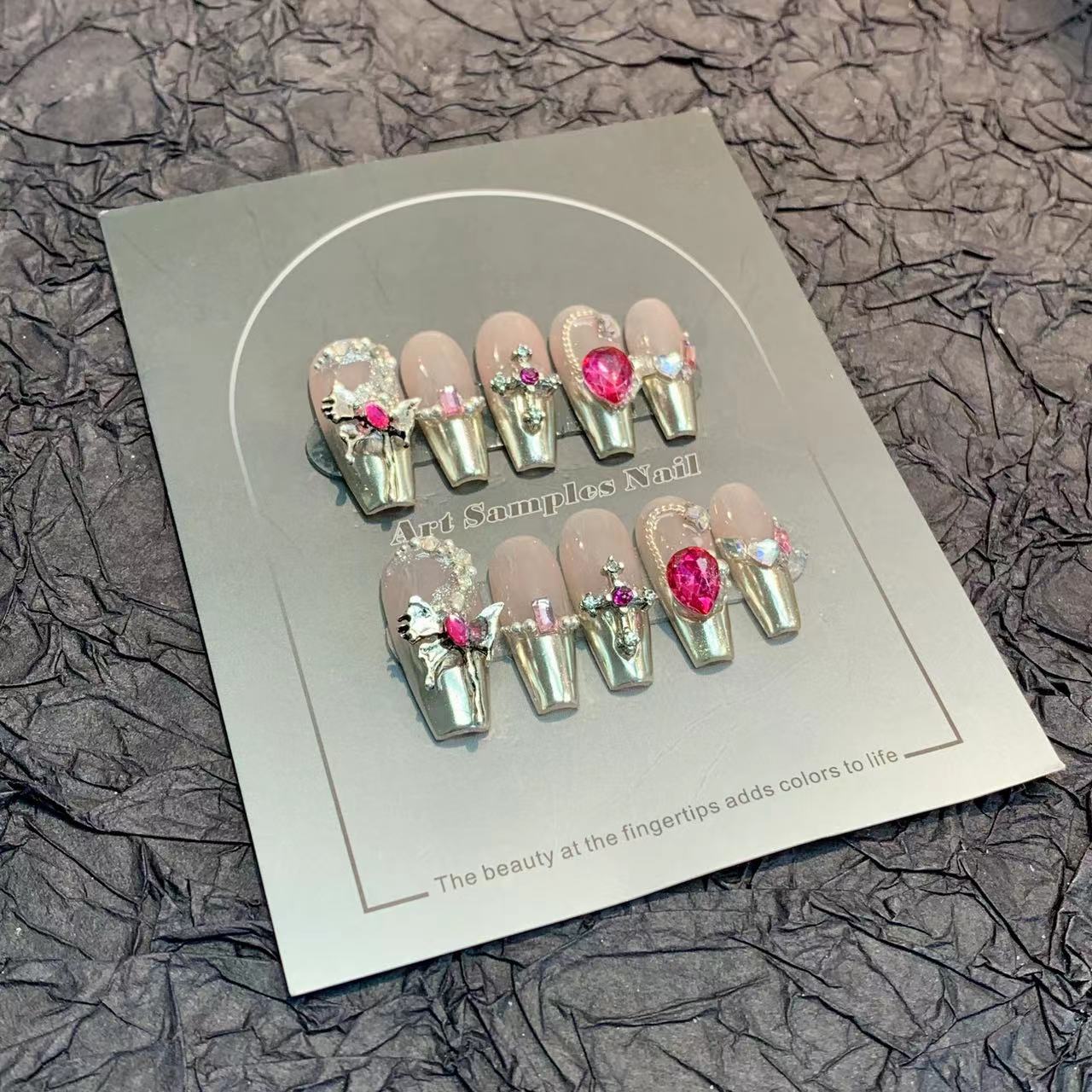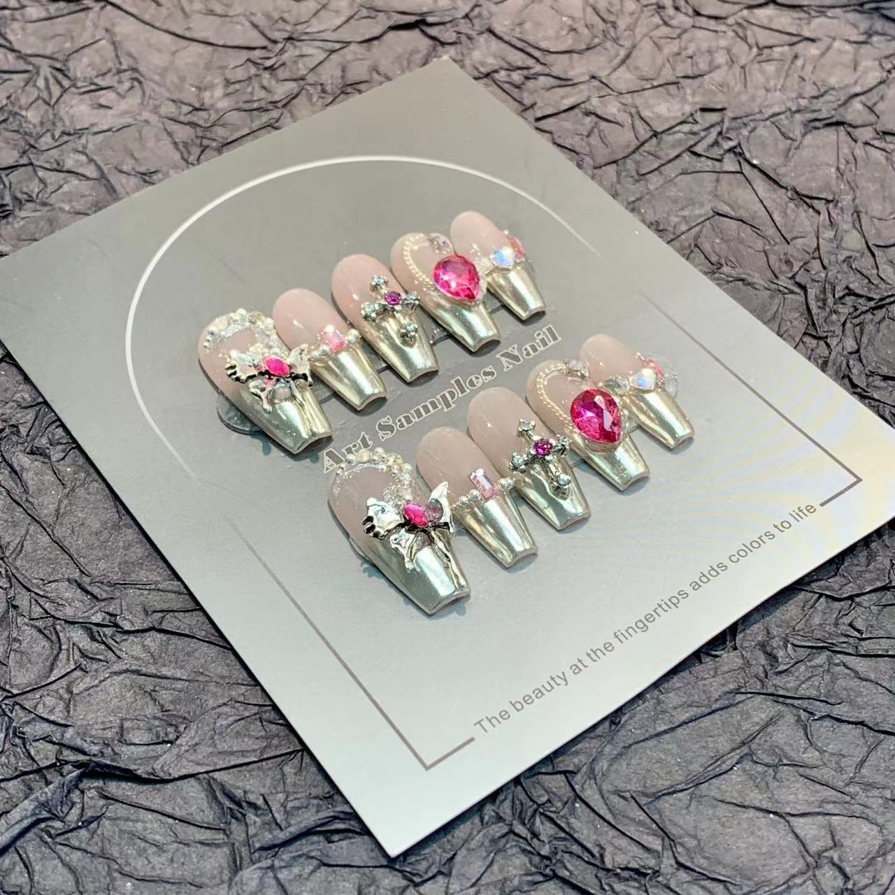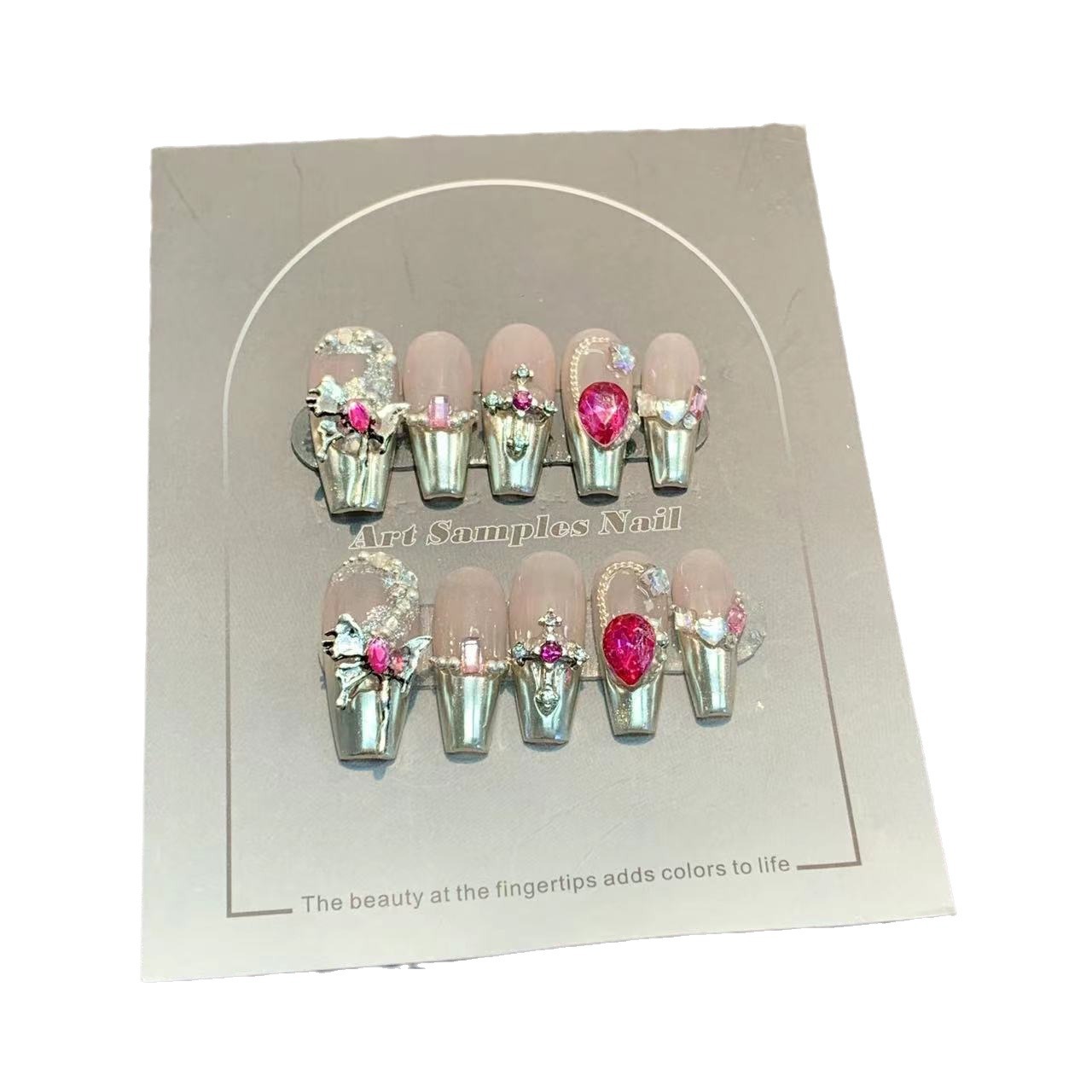 穿戴甲手工ins跳色魔镜粉小众甜酷辣妹显白可拆卸穿戴甲成品甲贴