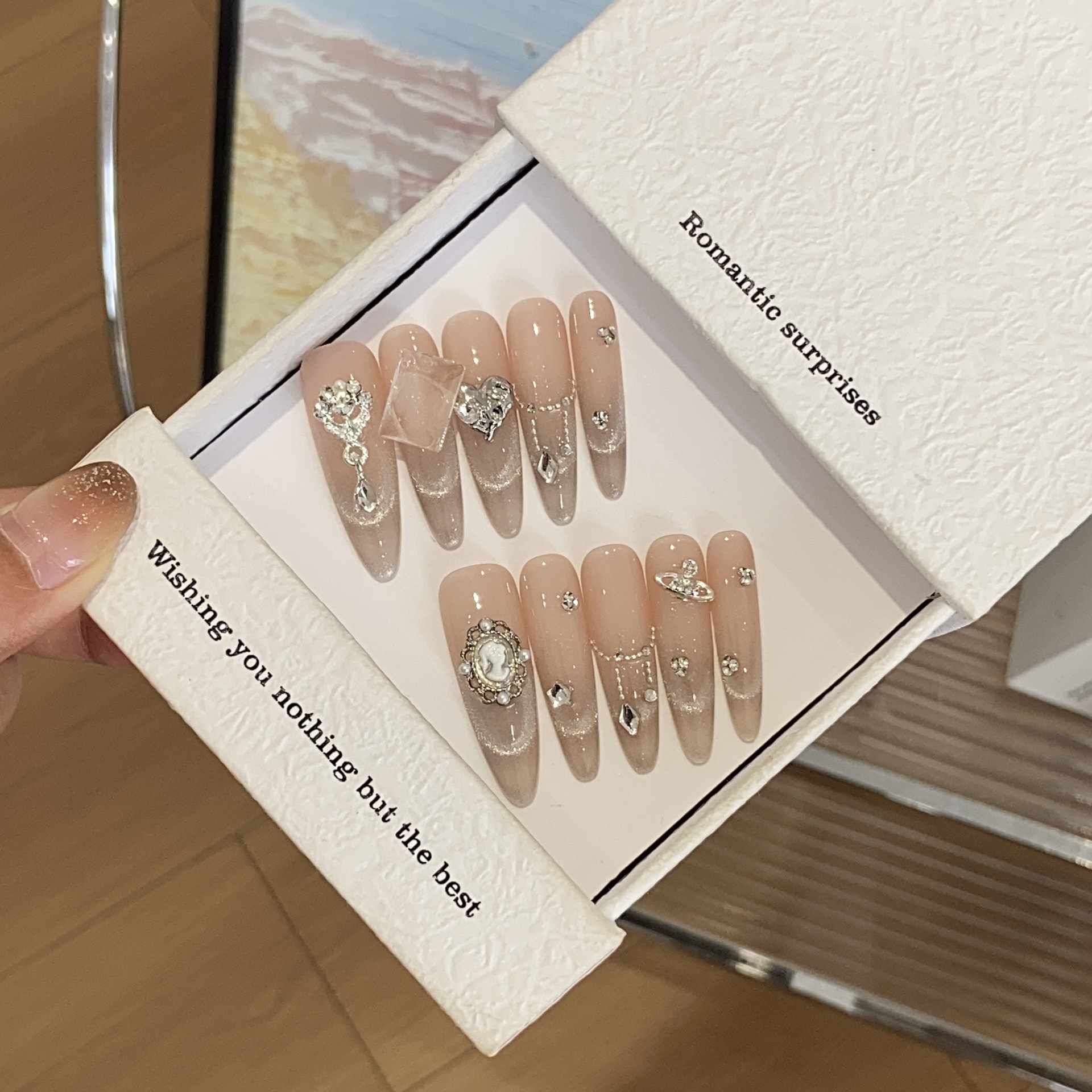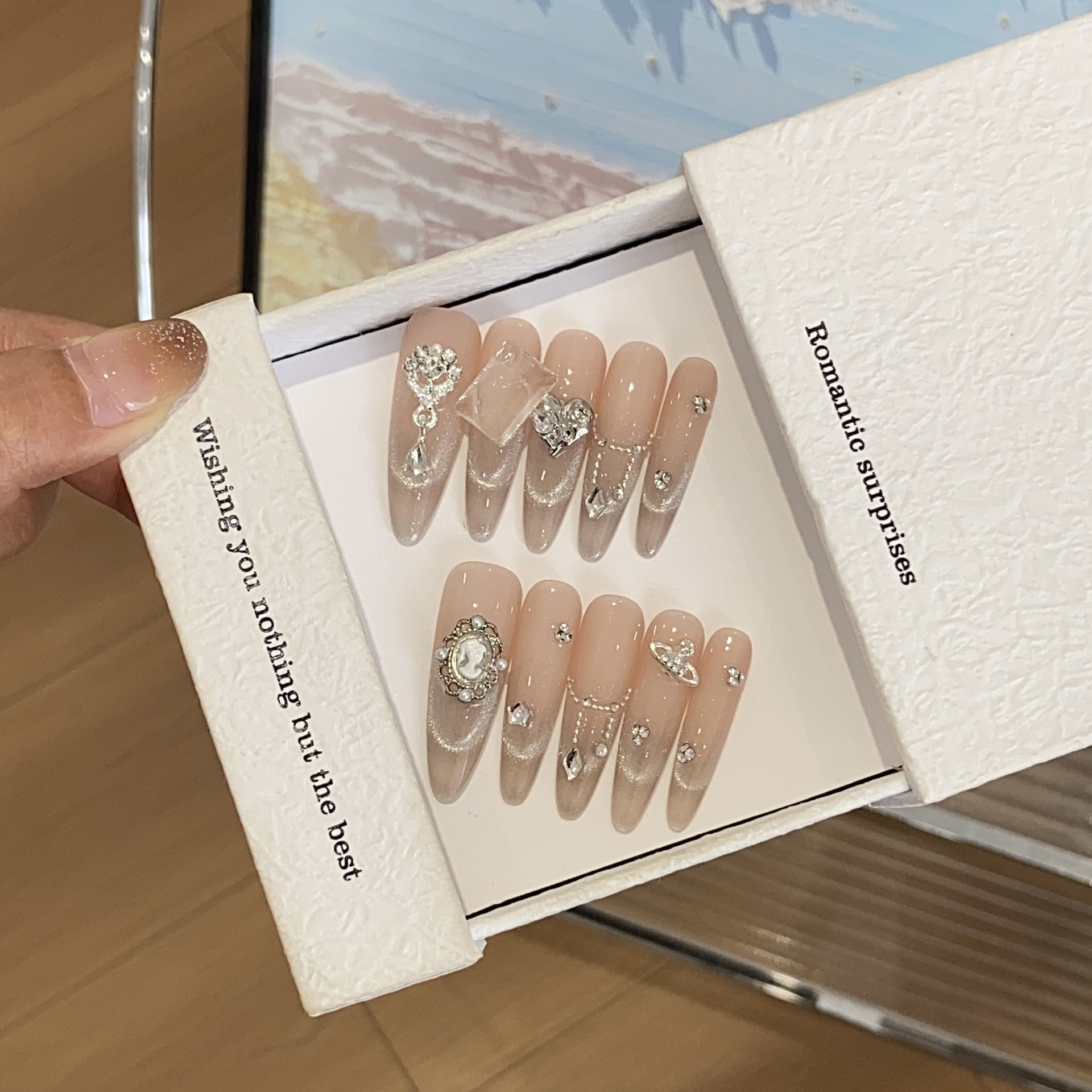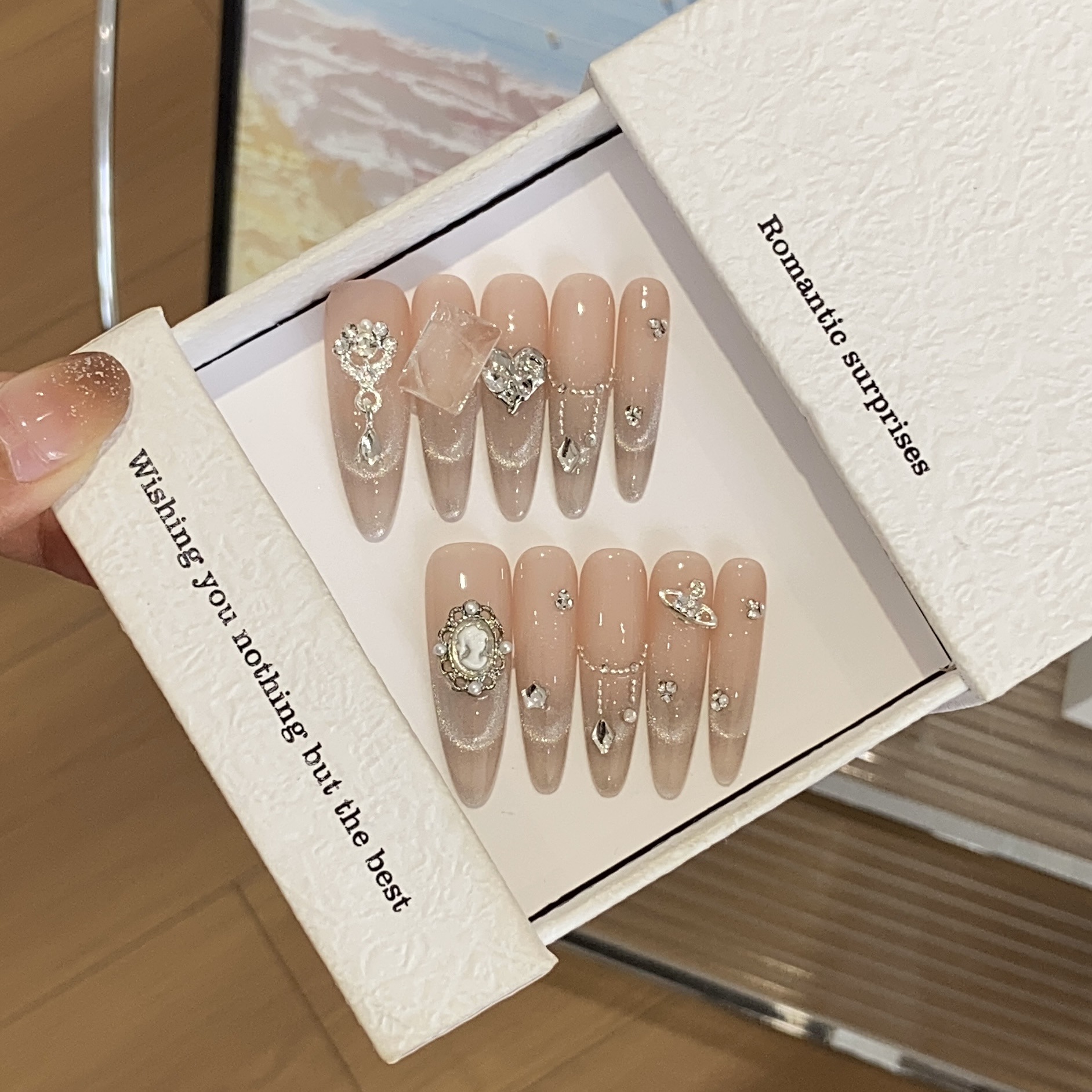 一只顾美甲 【Y】纯手工微笑法式猫眼合金链条小碎钻月光缪斯